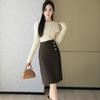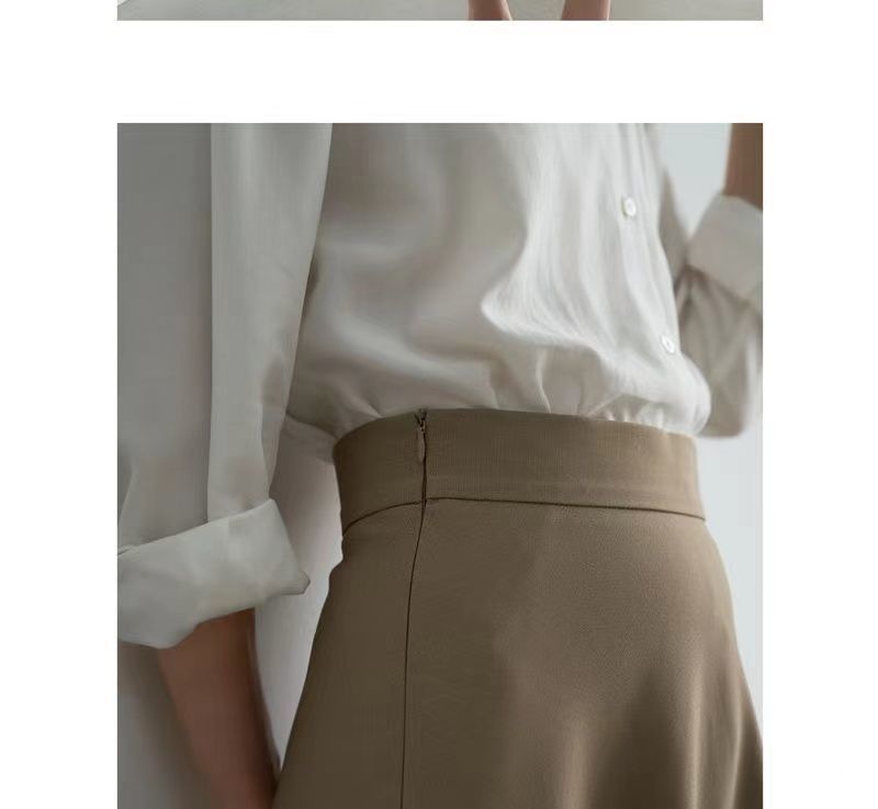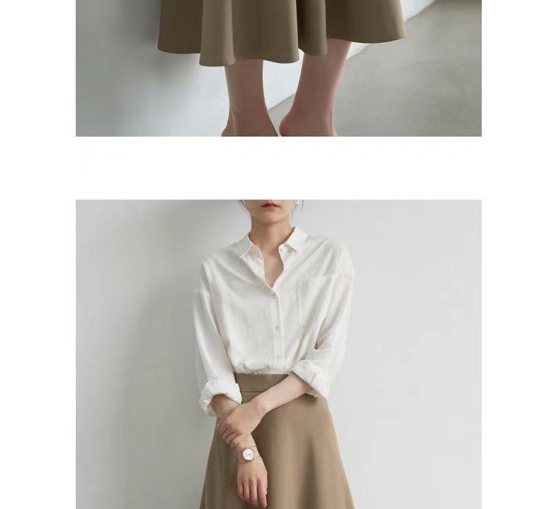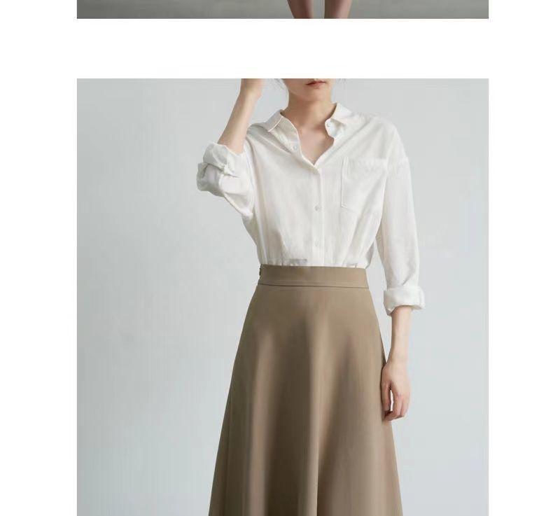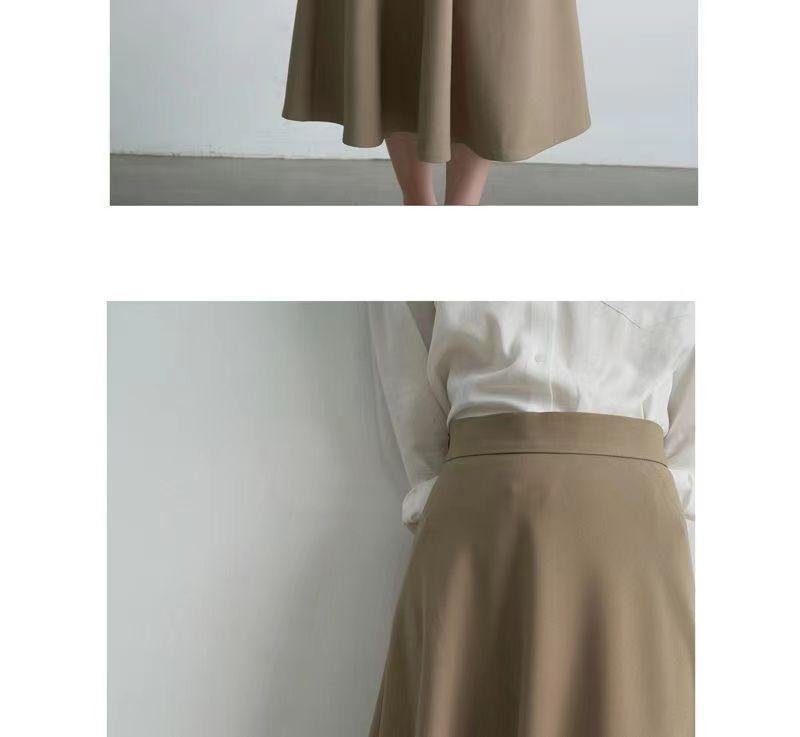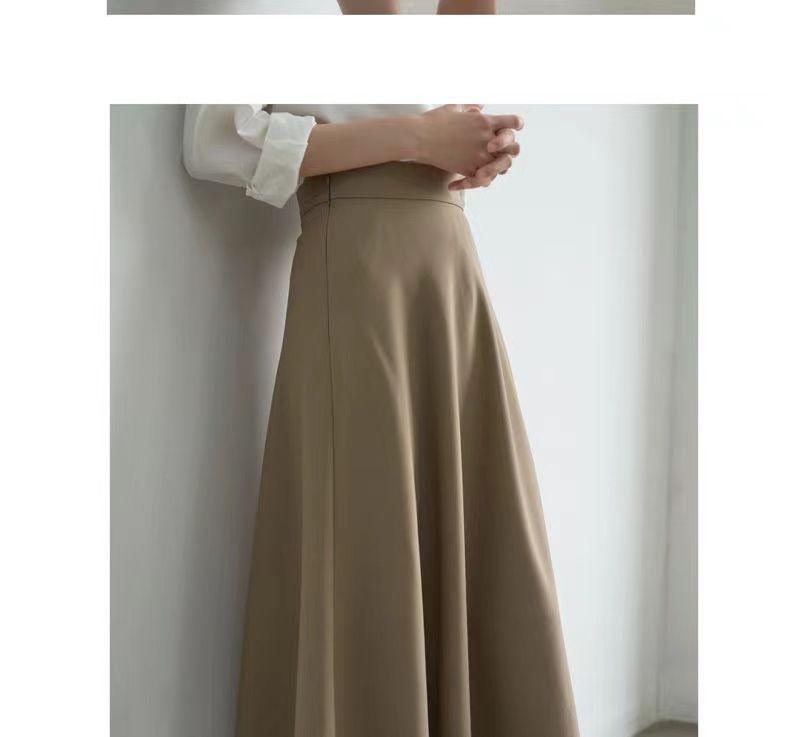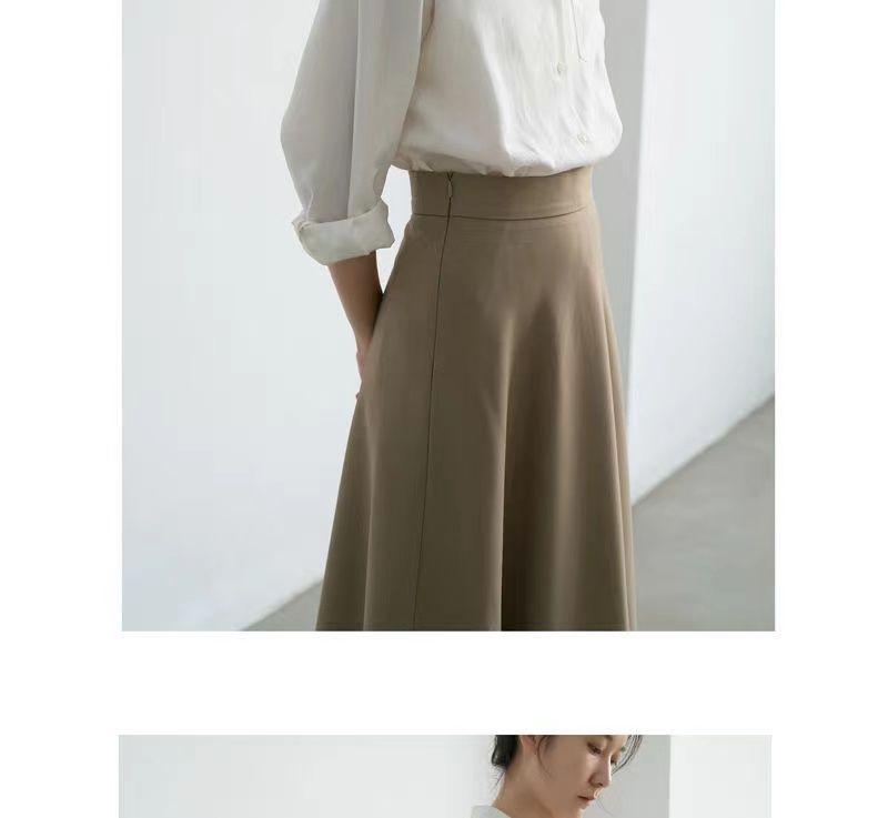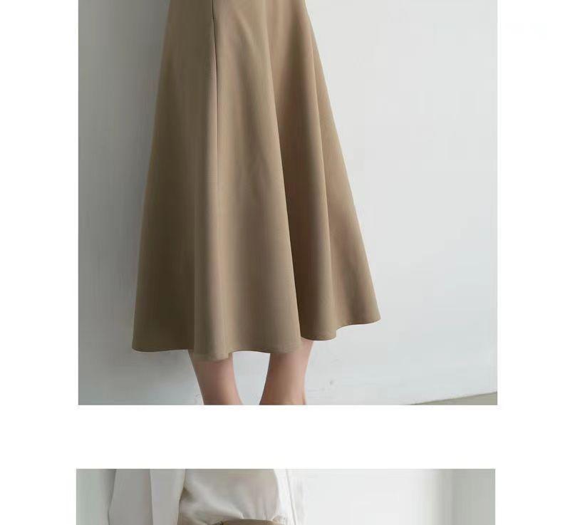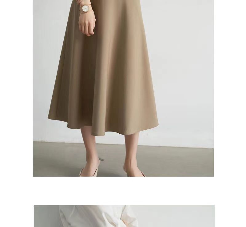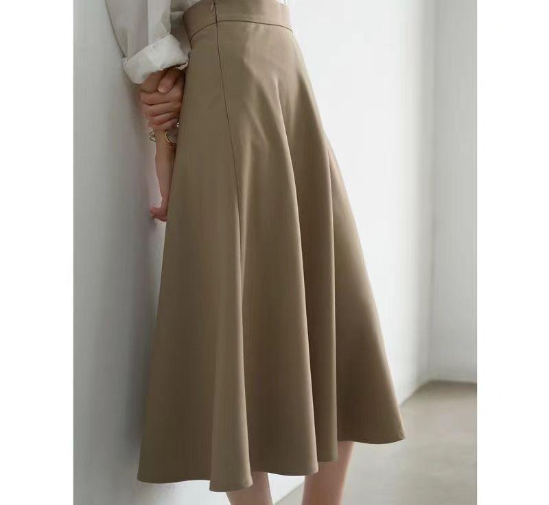 Falda sencilla de color sólido de largo medio nueva de primavera 2024 para mujer falda línea A cintura alta adelgazante falda larga