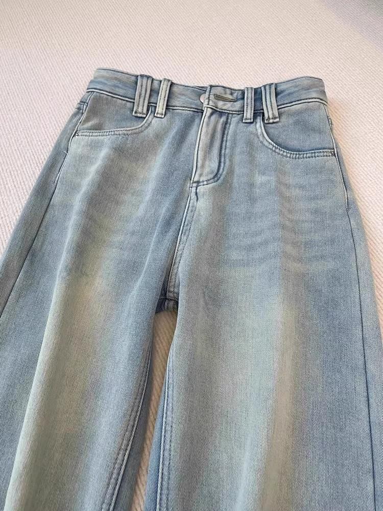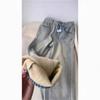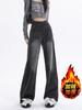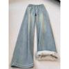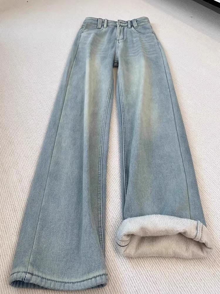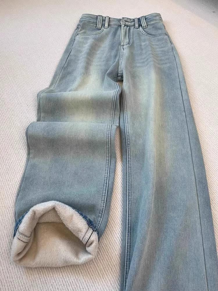 Pantalones vaqueros gruesos de talla grande vintage rectos con forro polar para mujer invierno 2024 nuevos pantalones anchos adelgazantes de cintura alta para chica gordita