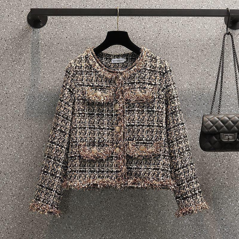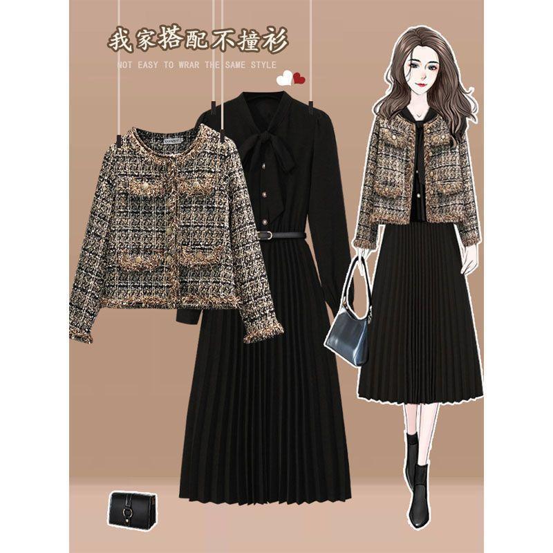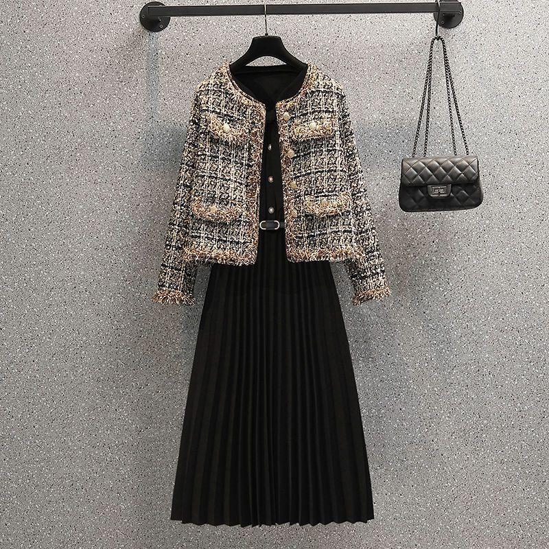 Traje de otoño e invierno para mujer de talla grande 2024 nuevo estilo abrigo cárdigan moda slim Joker vestido traje de dos piezas