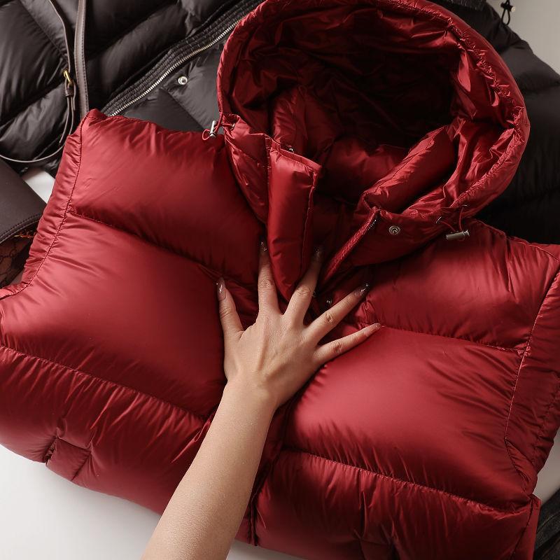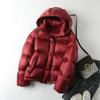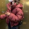 Ankesela Abrigo Exterior de Algodón Rojo para Mujer Otoño e Invierno 2025 Silueta Elegante con Capucha Pequeño Corto Grueso Cálido Tipo Pan