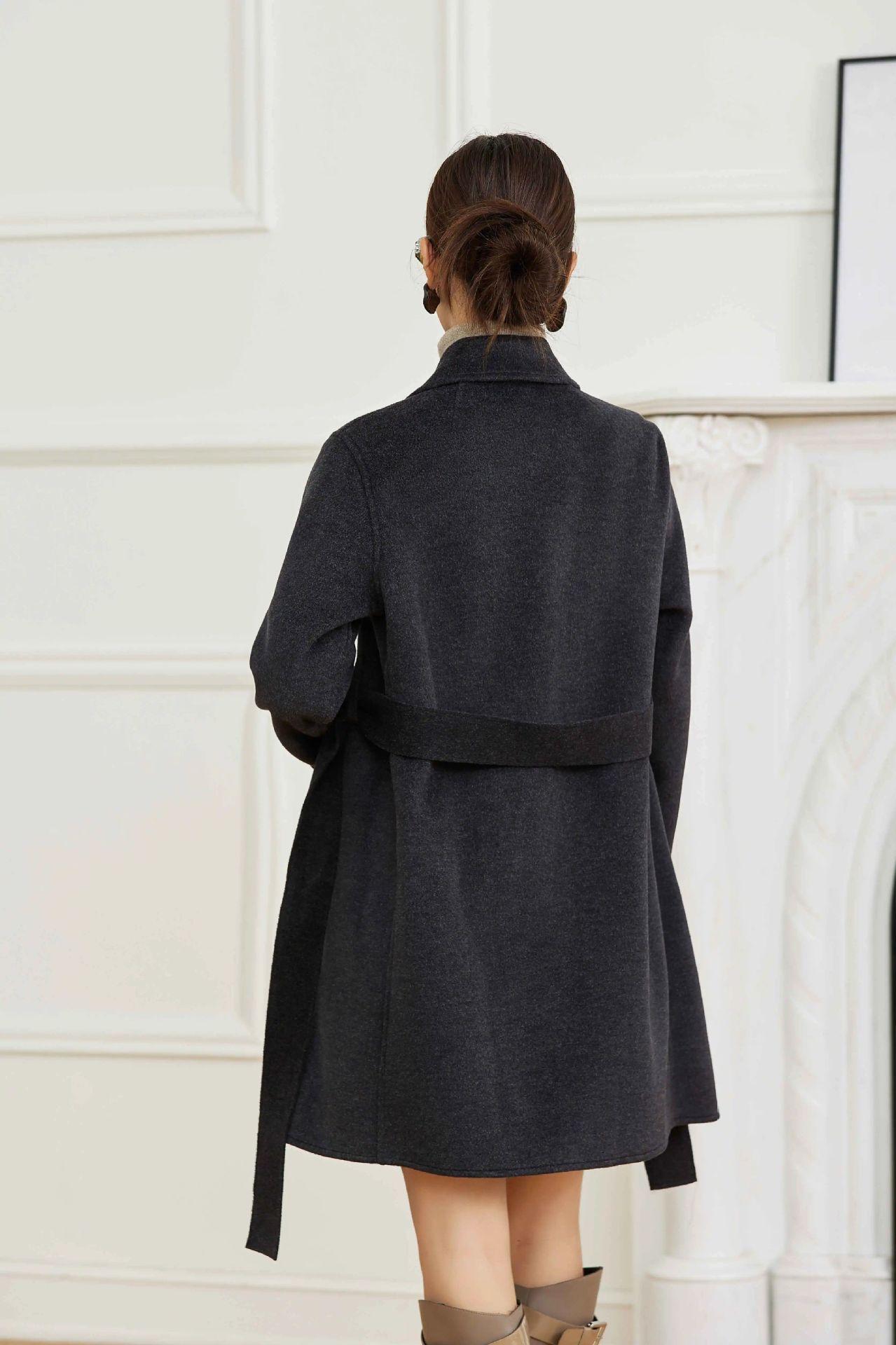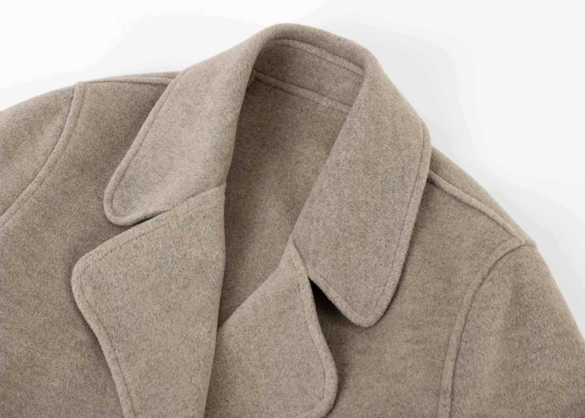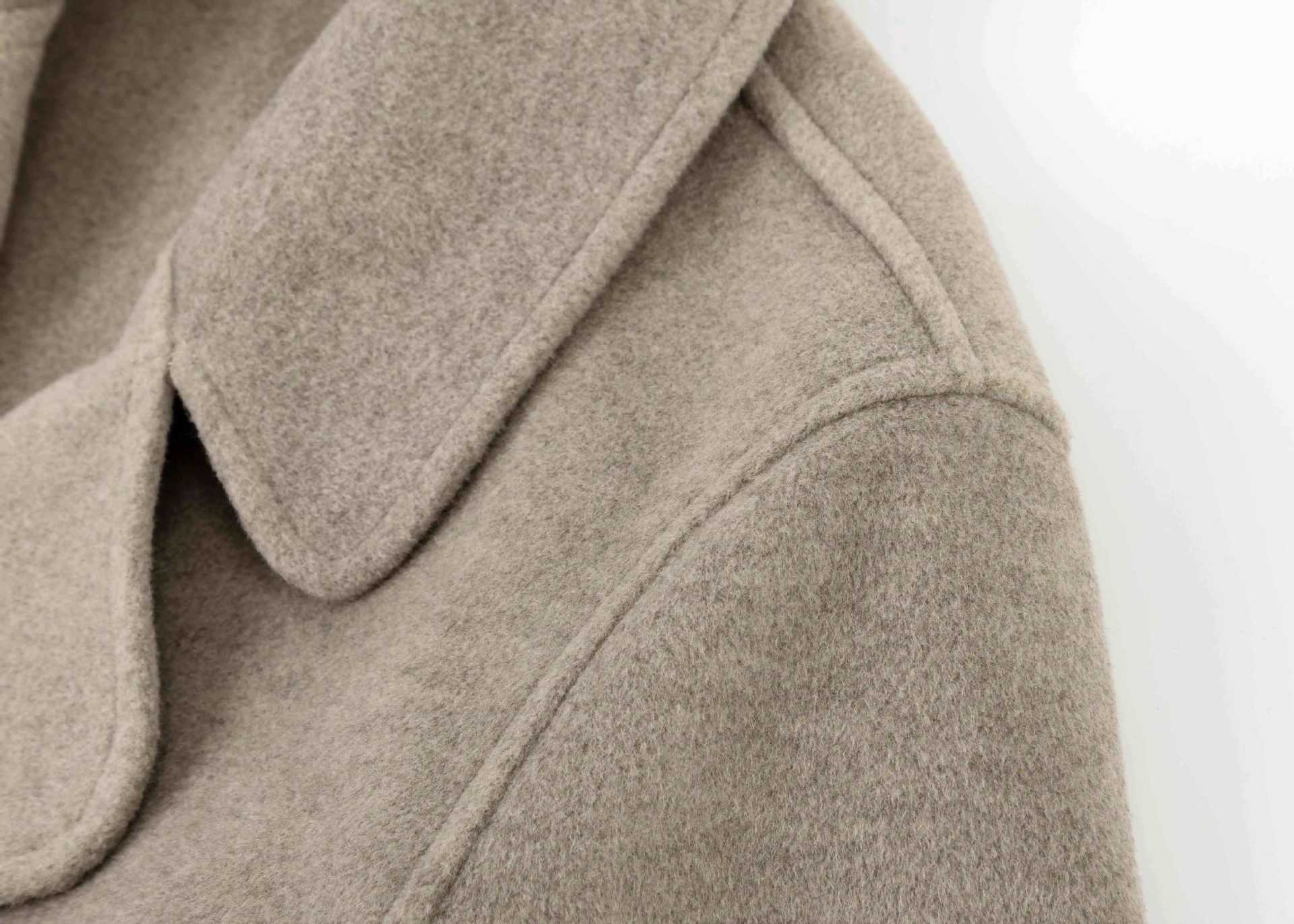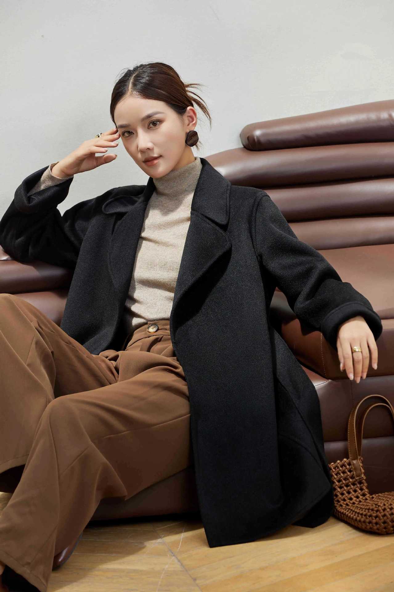 Abrigo Otoño e Invierno Vintage Lana de Oveja Hecho a Mano Largo Medio Estilo Coreano Suelto Abrigo de Cachemira Doble Faz Abrigo de Mujer A2404
