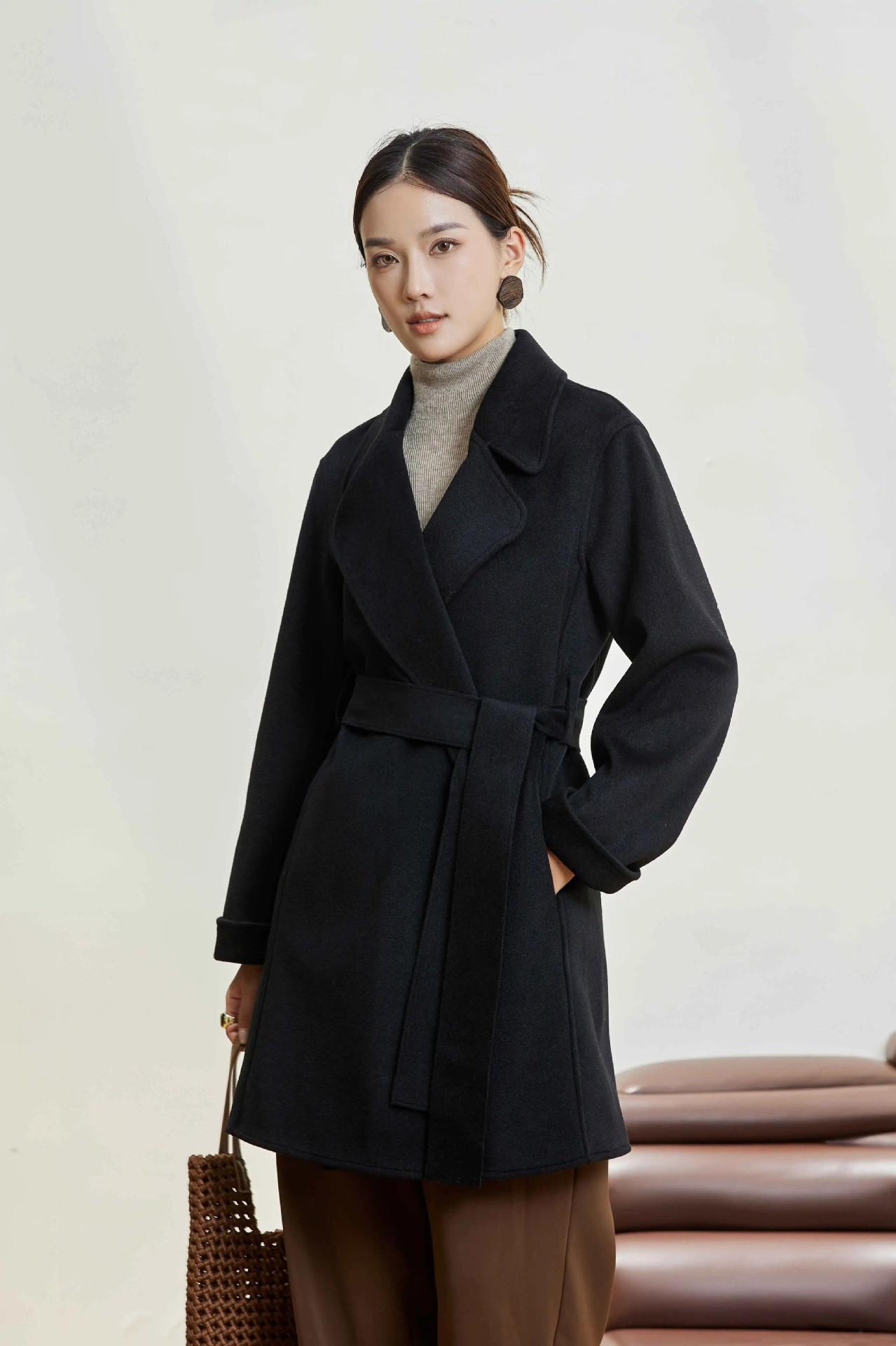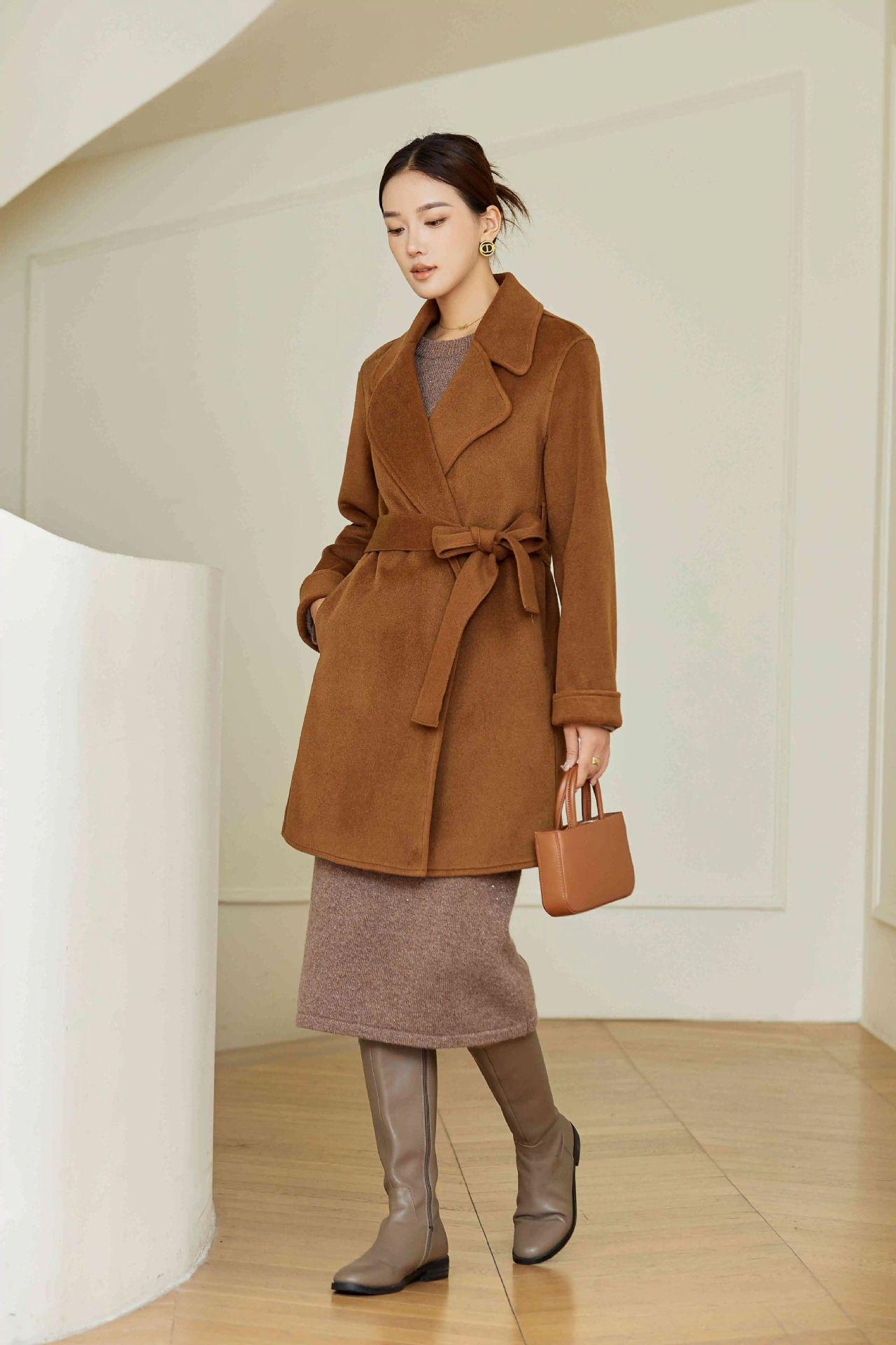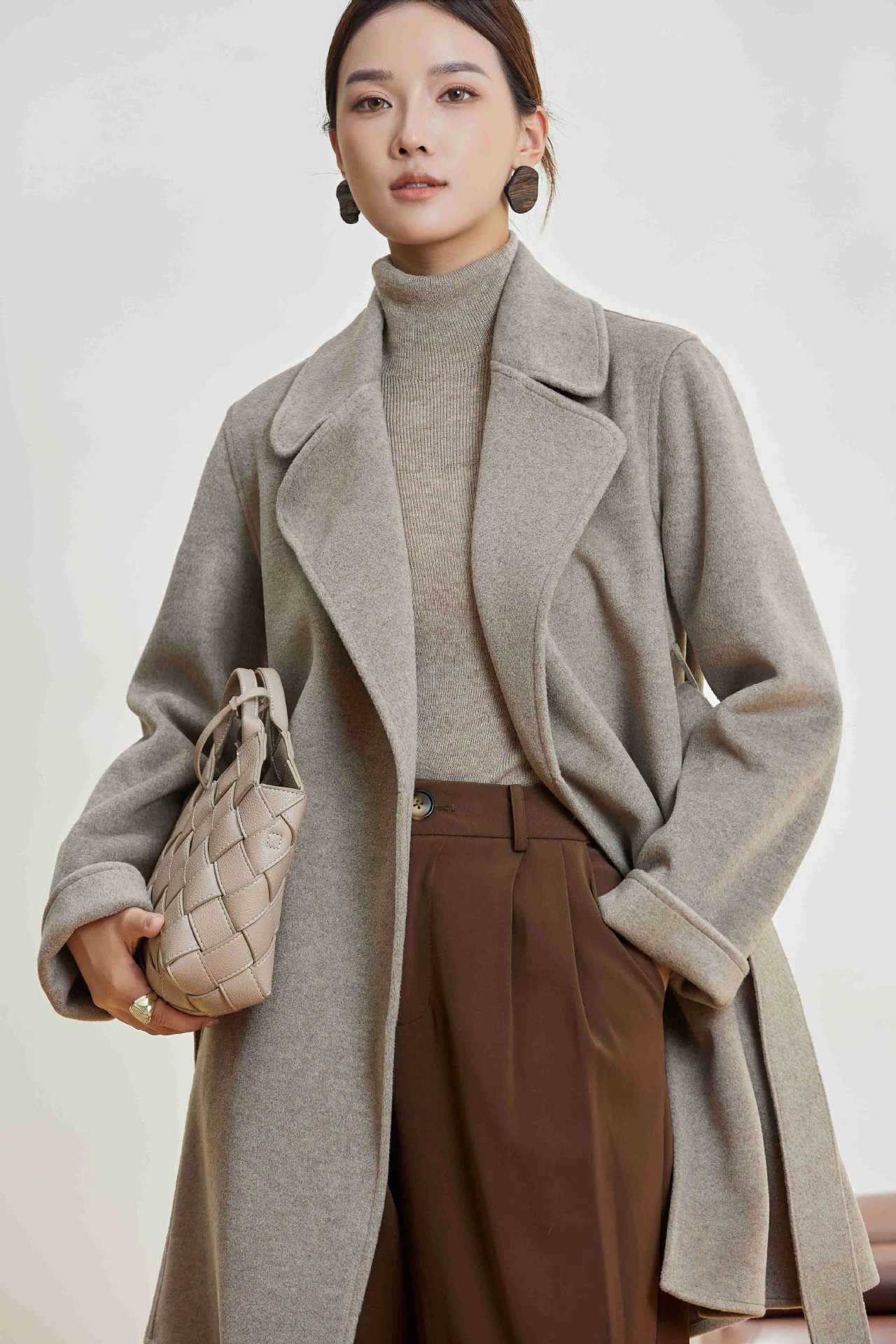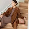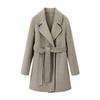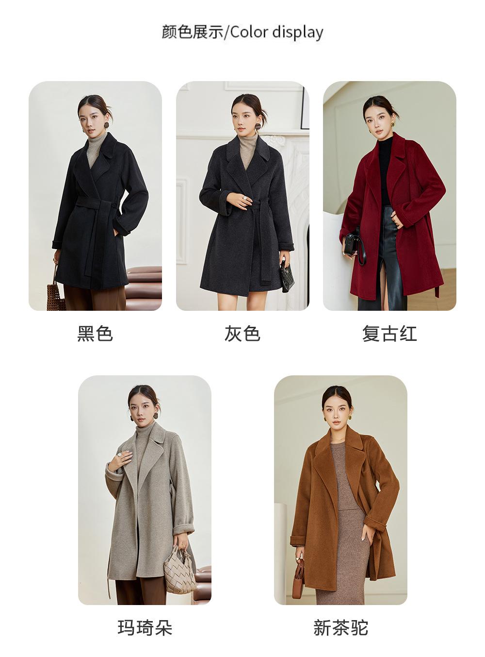 Abrigo Otoño e Invierno Vintage Lana de Oveja Hecho a Mano Largo Medio Estilo Coreano Suelto Abrigo de Cachemira Doble Faz Abrigo de Mujer A2404