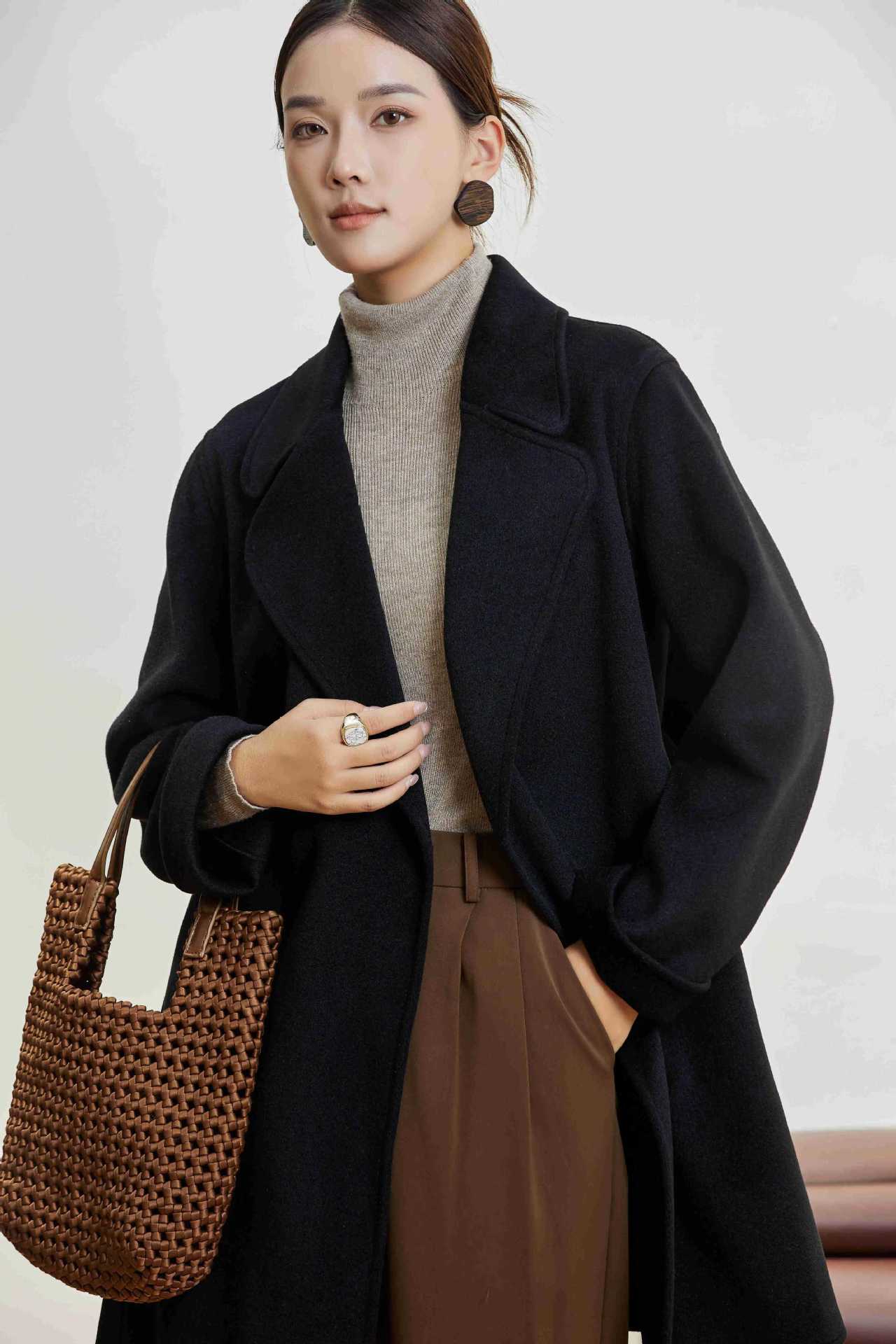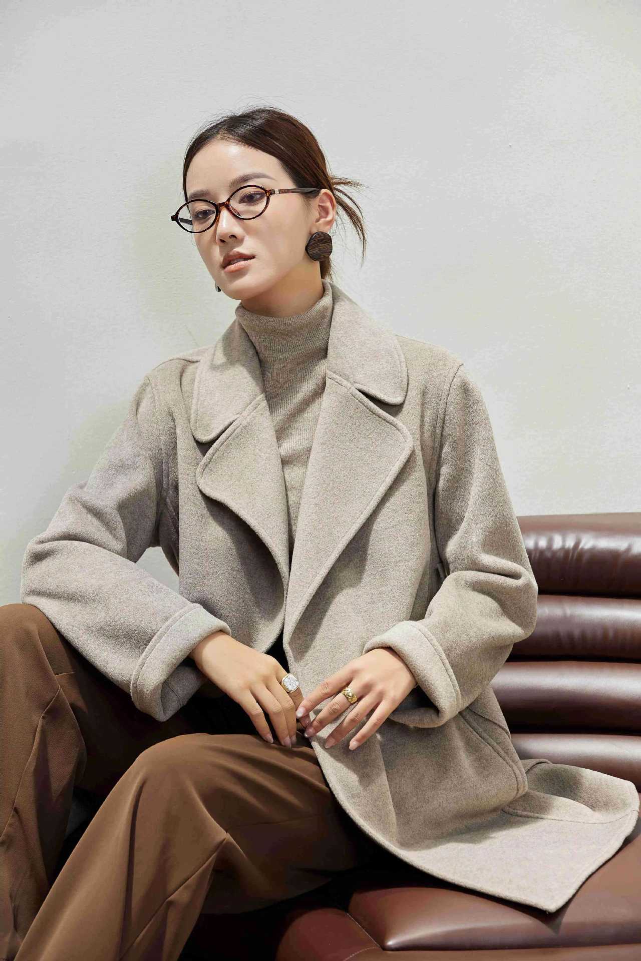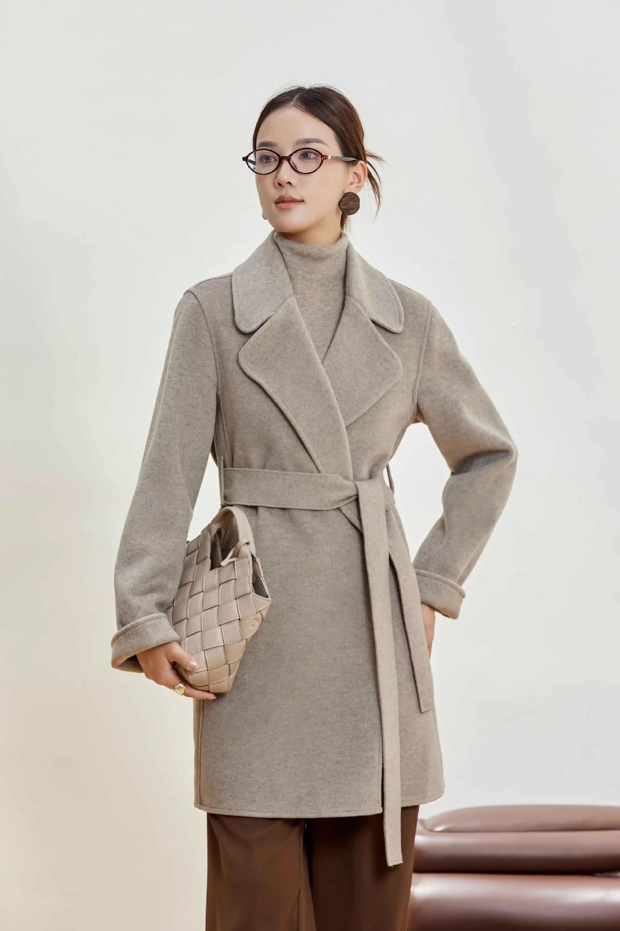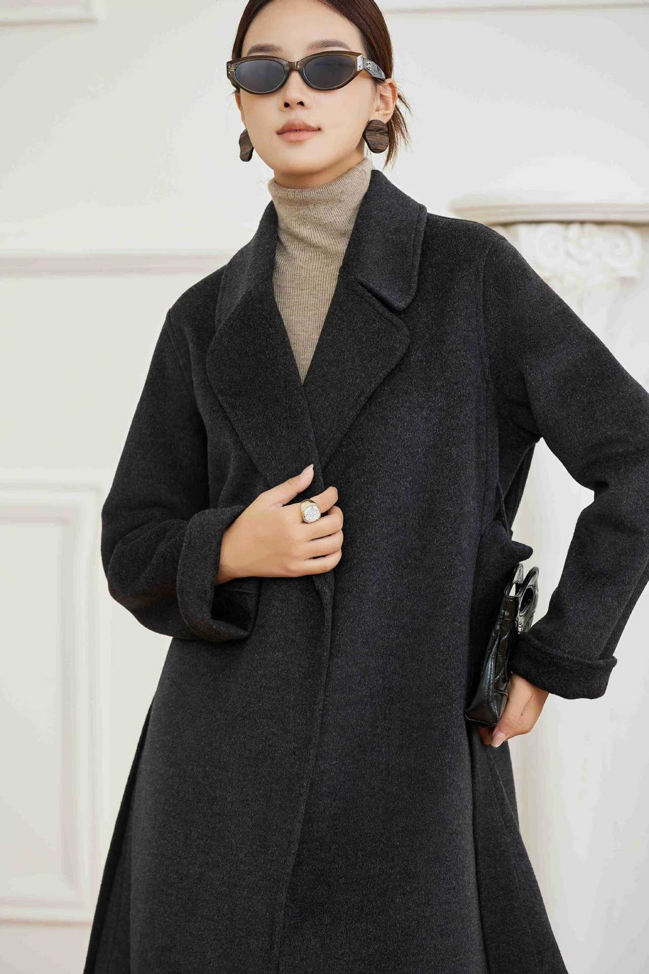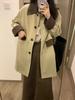 Abrigo Otoño e Invierno Vintage Lana de Oveja Hecho a Mano Largo Medio Estilo Coreano Suelto Abrigo de Cachemira Doble Faz Abrigo de Mujer A2404