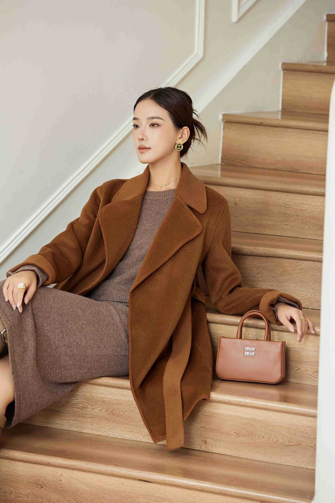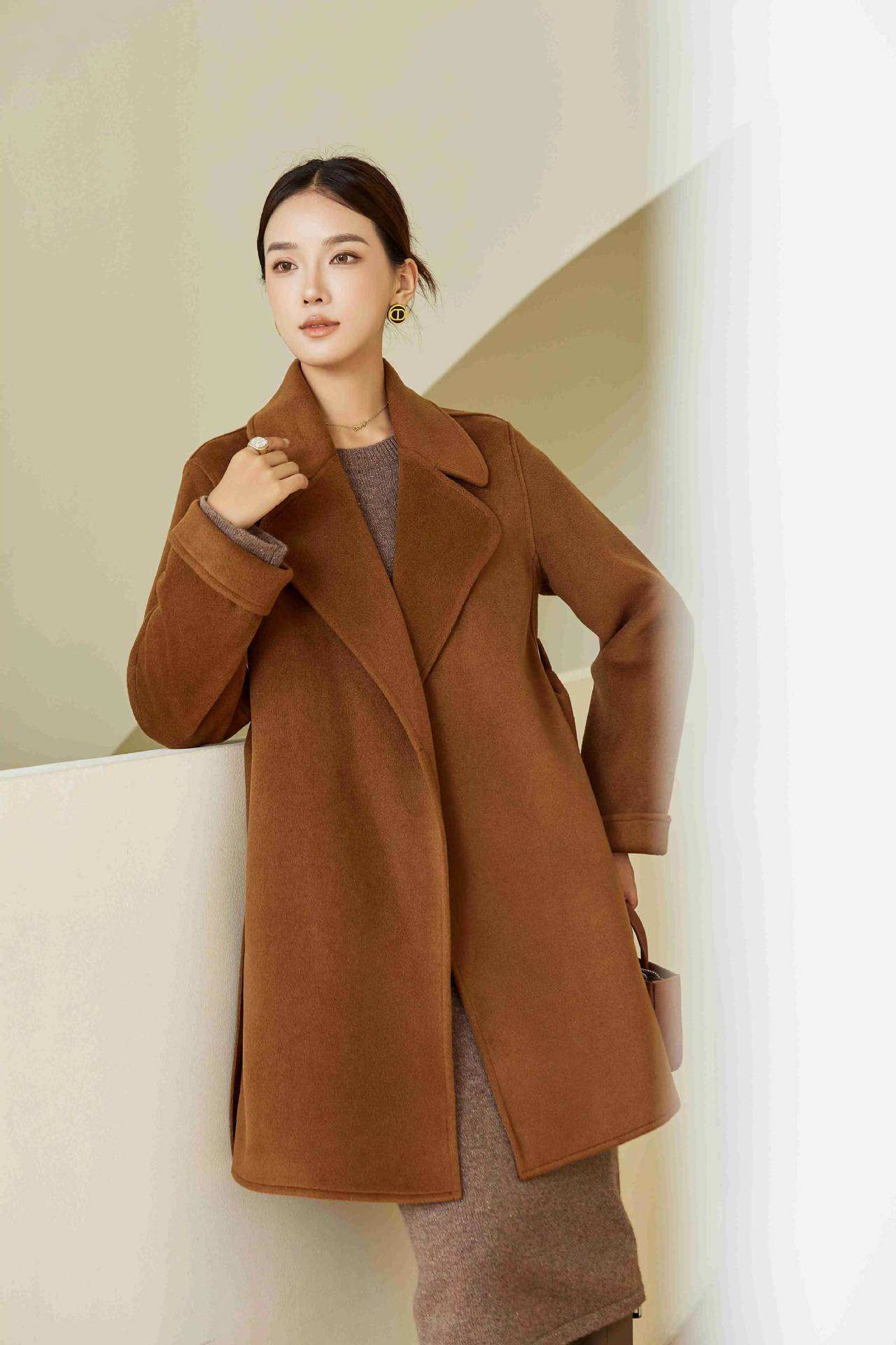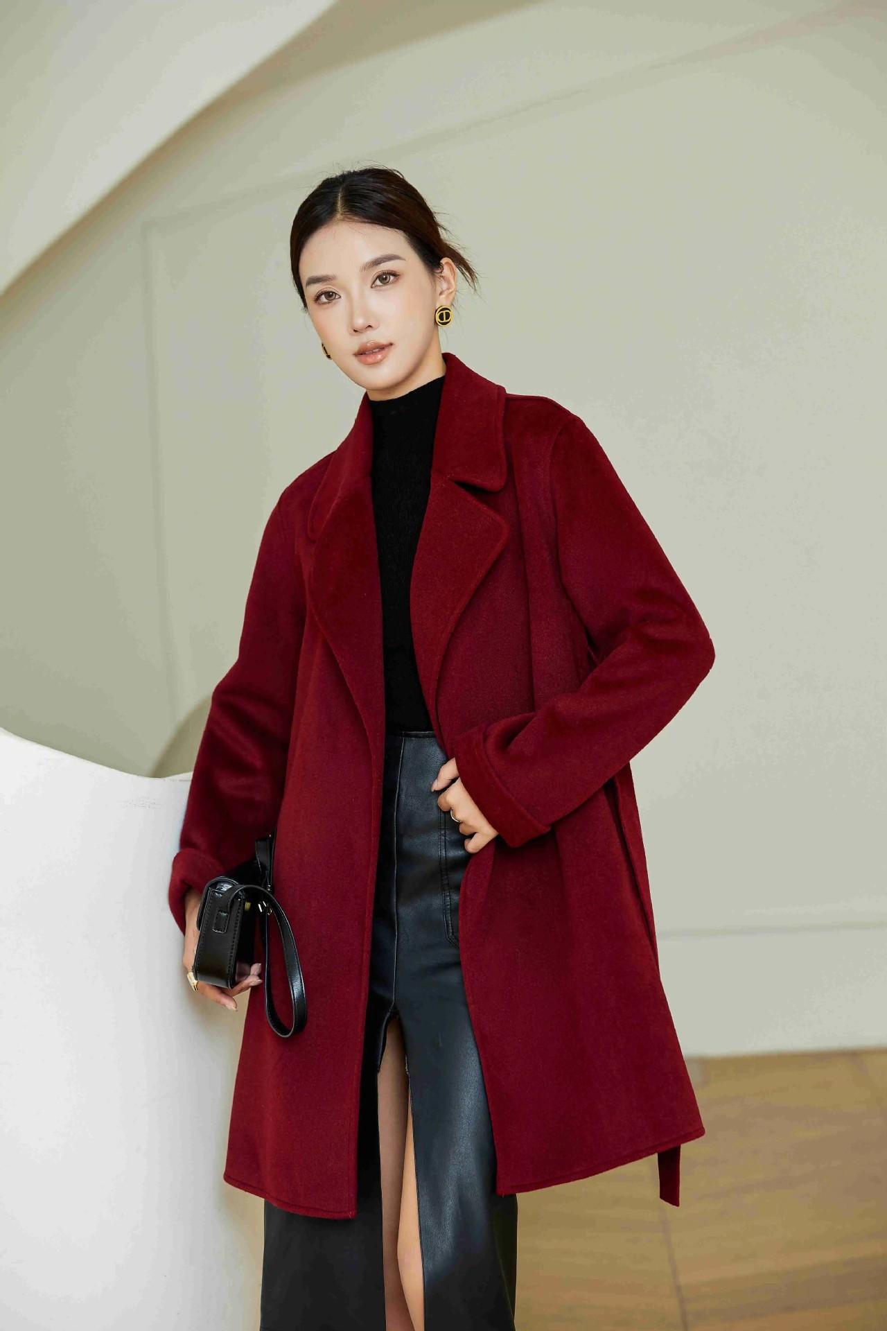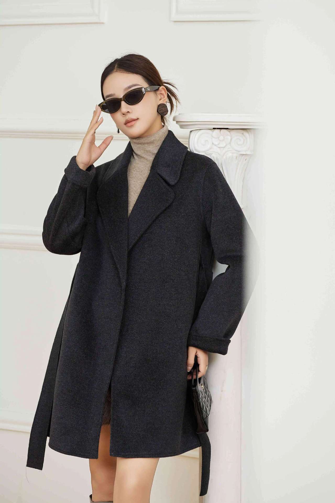 Abrigo Otoño e Invierno Vintage Lana de Oveja Hecho a Mano Largo Medio Estilo Coreano Suelto Abrigo de Cachemira Doble Faz Abrigo de Mujer A2404