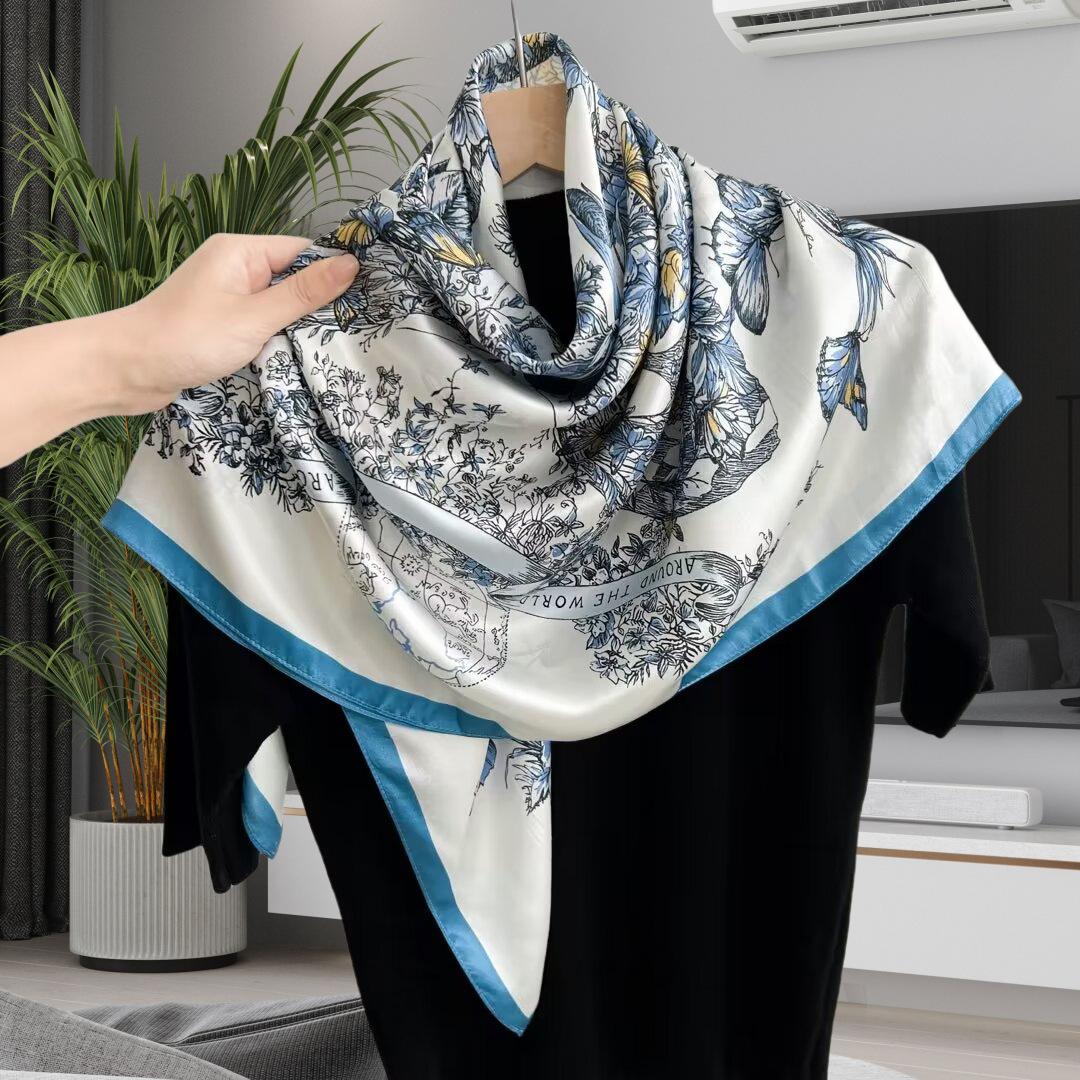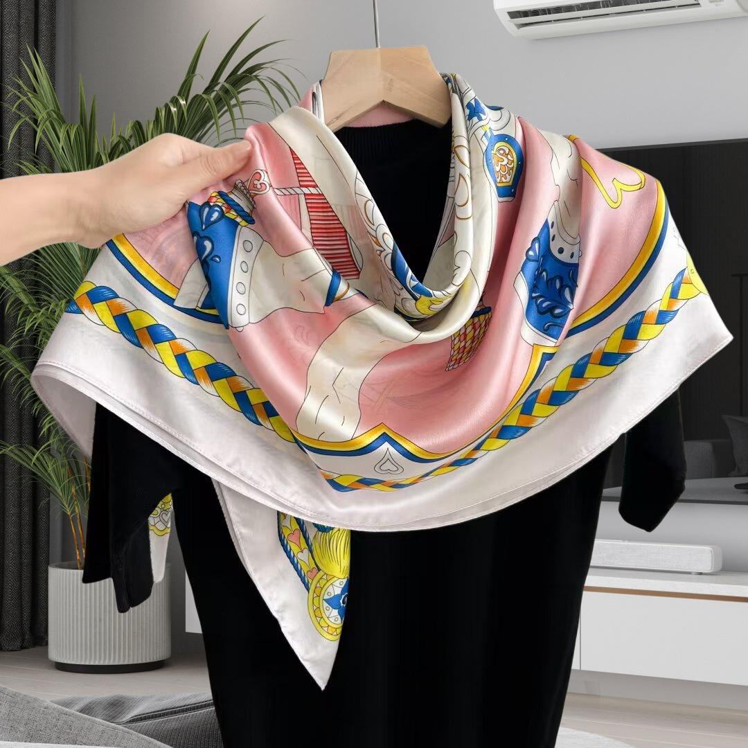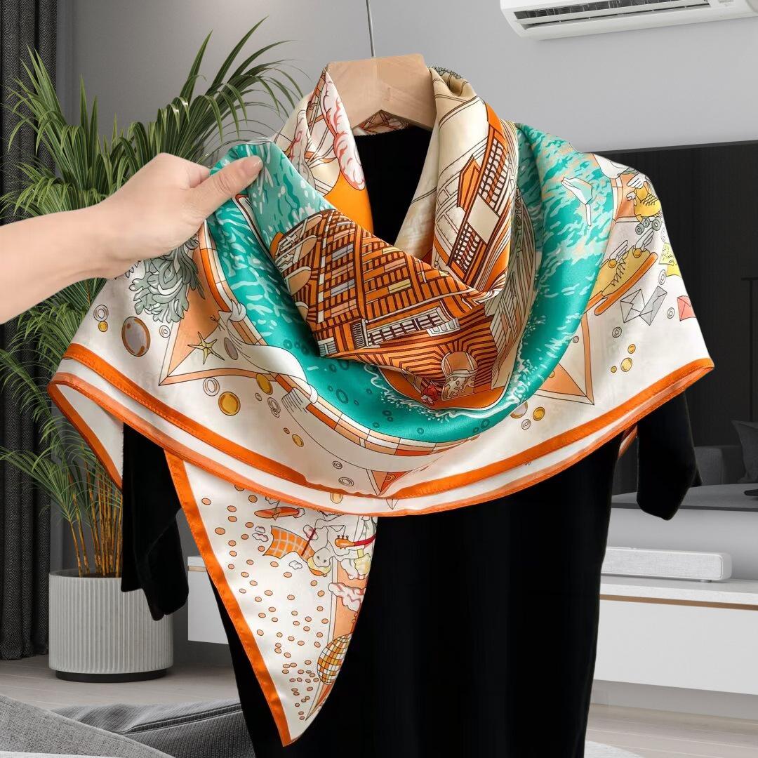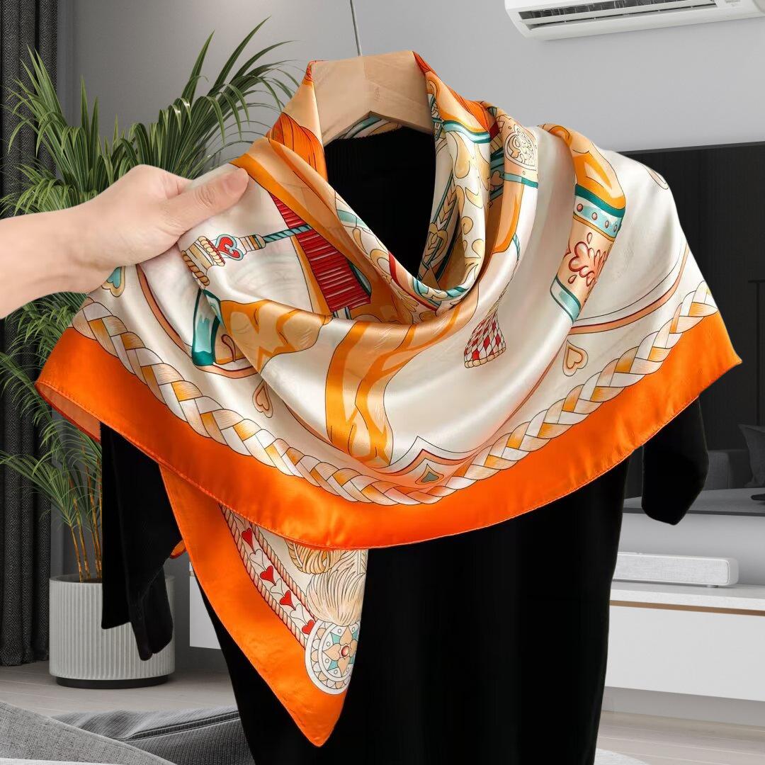 Nueva bufanda pequeña de seda con bisel de imitación de seda, cinta de impresión digital, banda para el cabello de sarga de seda para mujer, bufanda de recuerdo, tendencia versátil