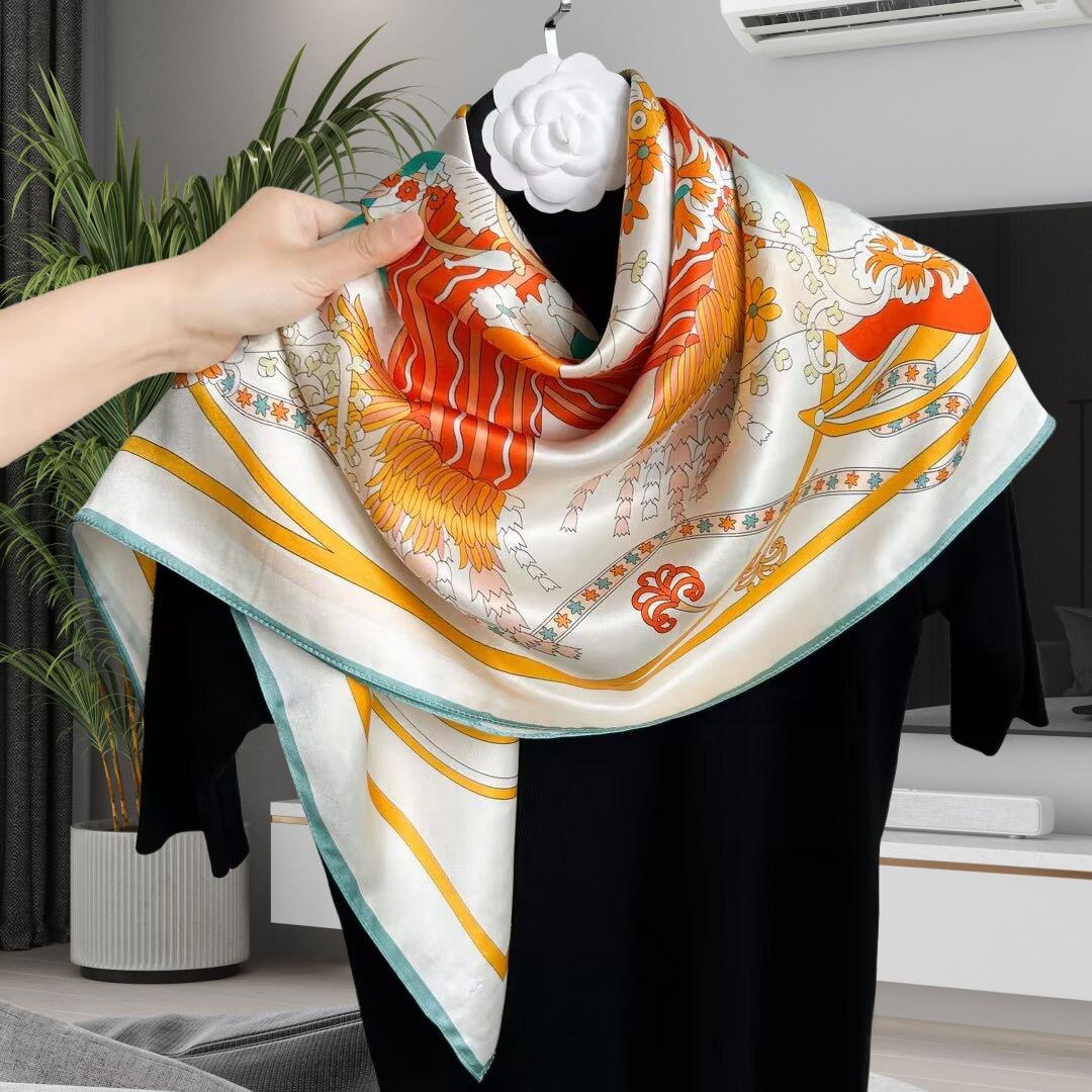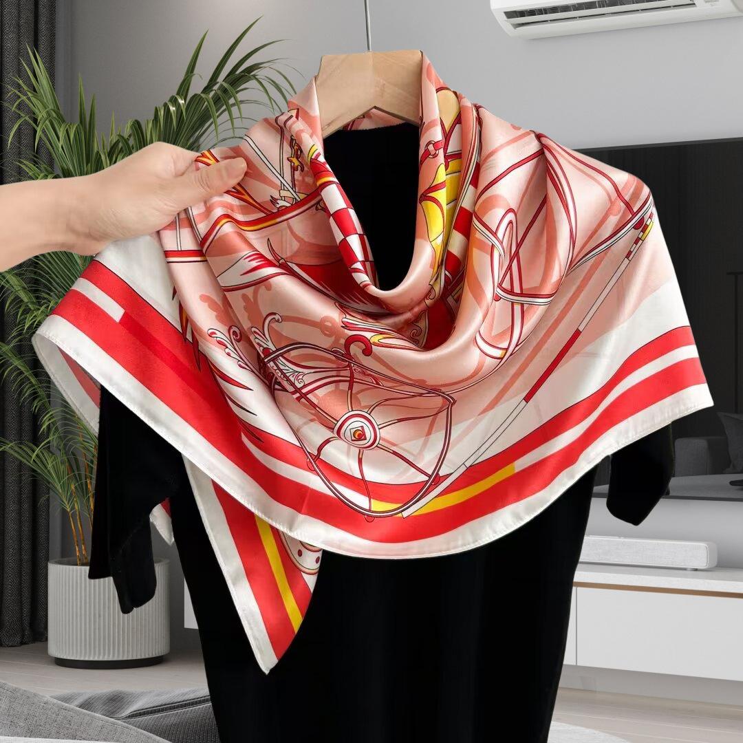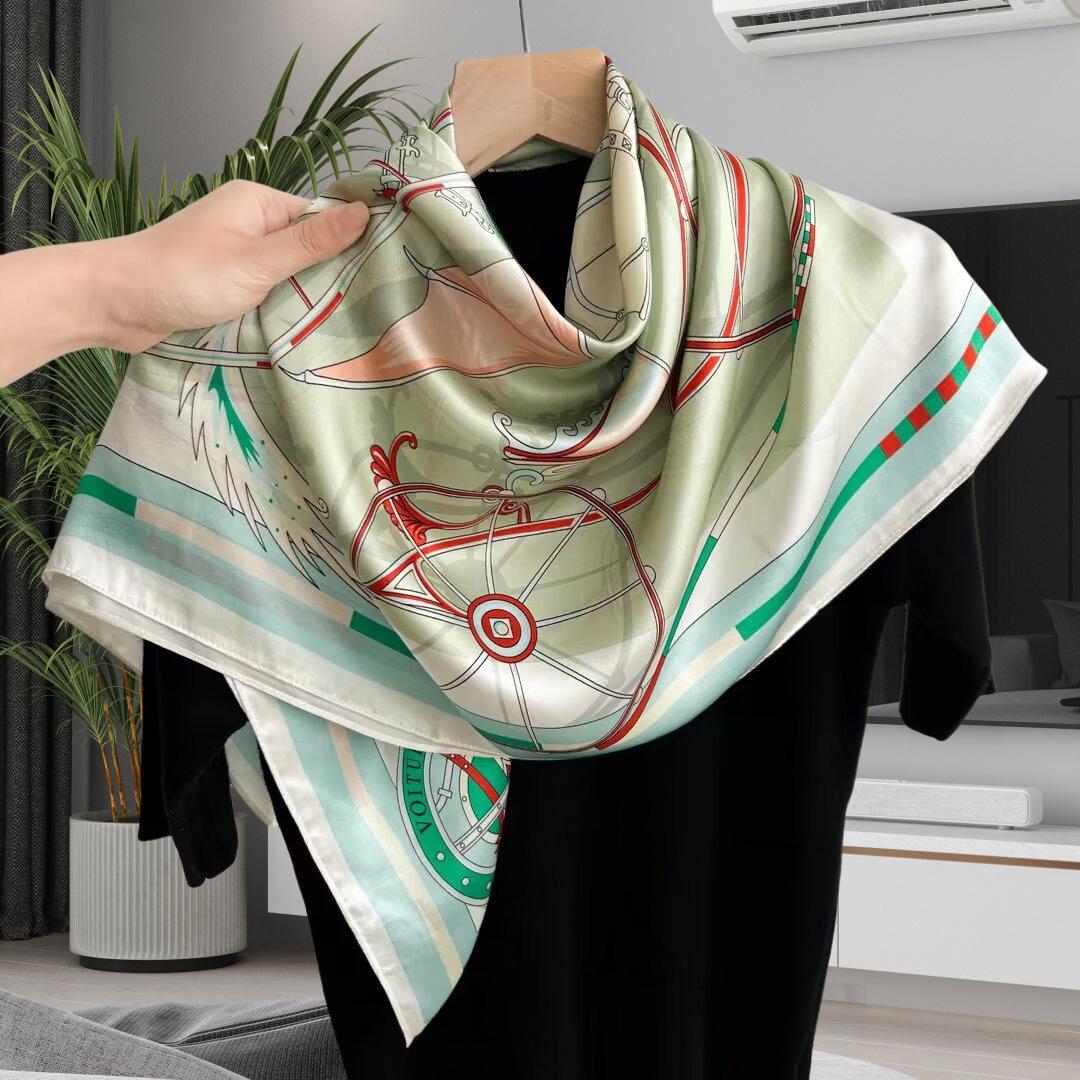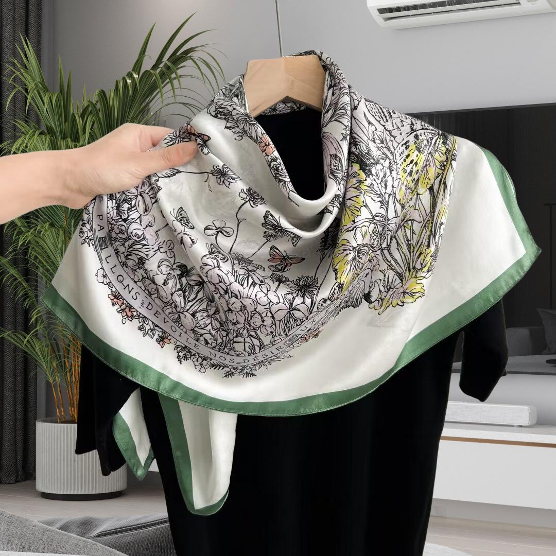 Nueva bufanda pequeña de seda con bisel de imitación de seda, cinta de impresión digital, banda para el cabello de sarga de seda para mujer, bufanda de recuerdo, tendencia versátil