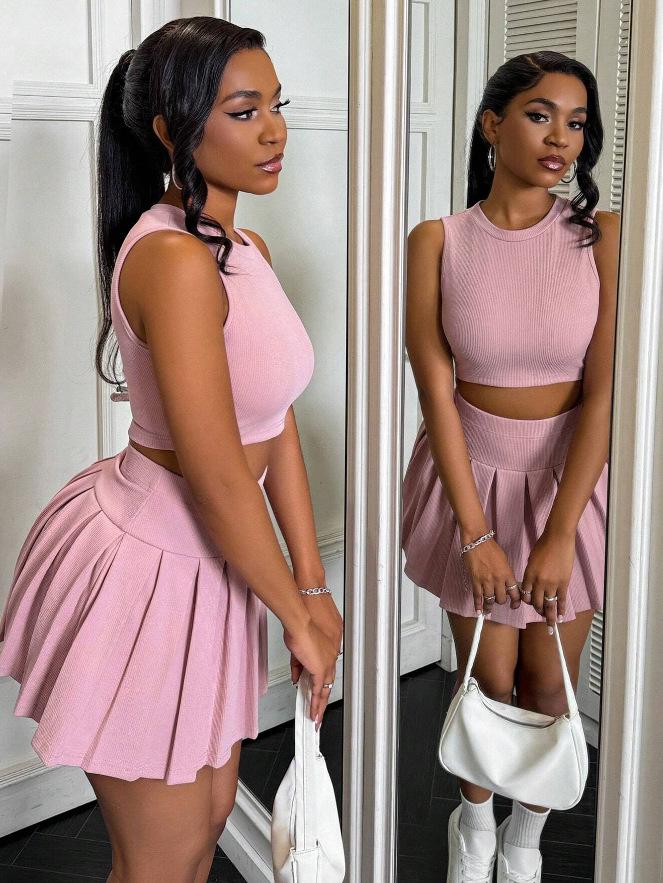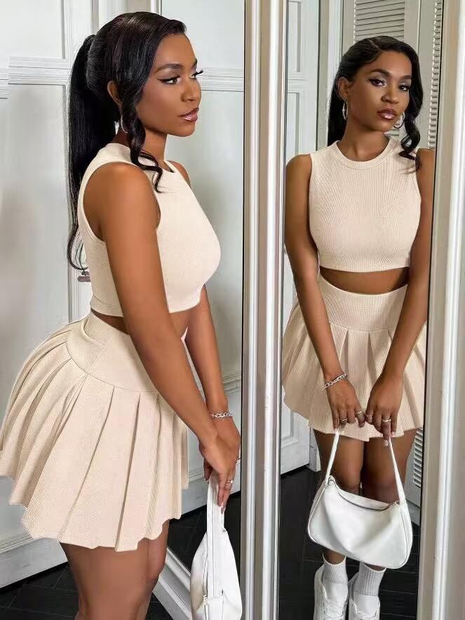 Falda plisada de dos piezas, sexy, sin mangas, ajustada, de moda, estilo europeo y americano, Amazon Explosions 2025, disponible.