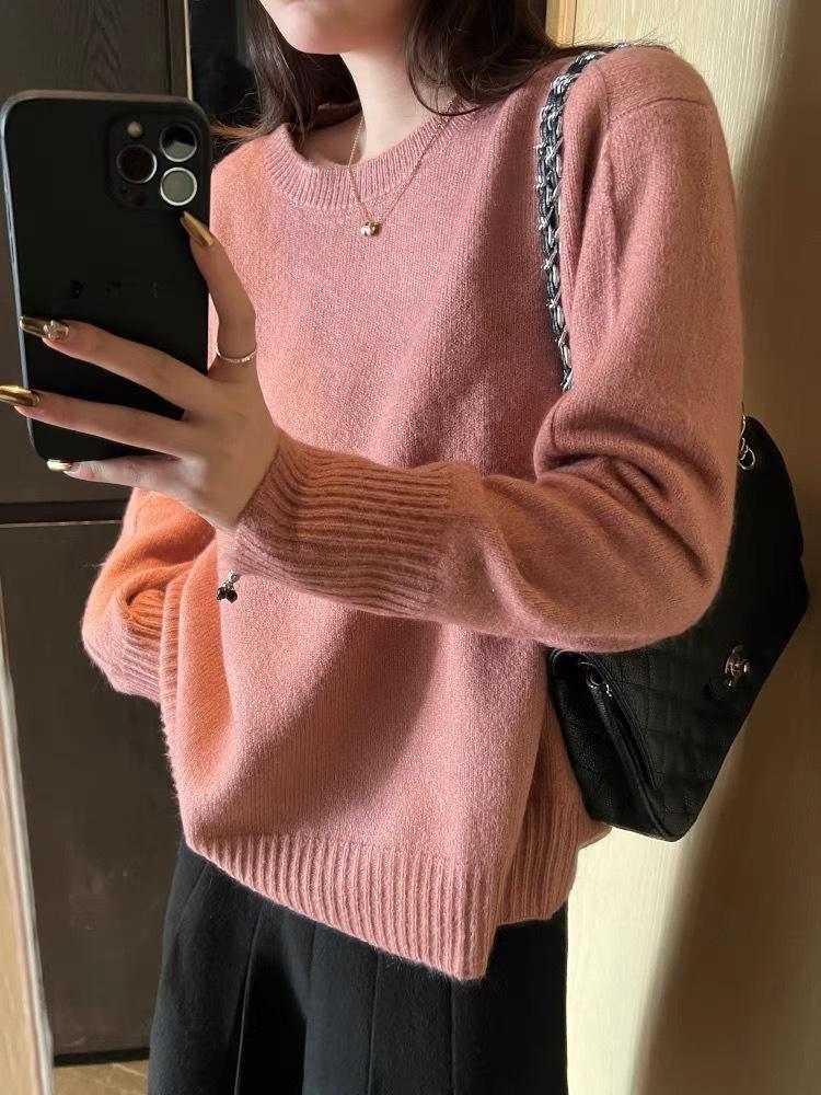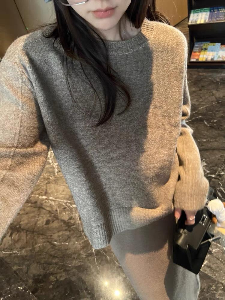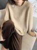 Suéter de Punto de Lana Pura Estilo Coreano para Mujer Cuello Redondo Jersey Suelto Casual Cachemira Suave Cerosa Combinable Grueso Base