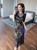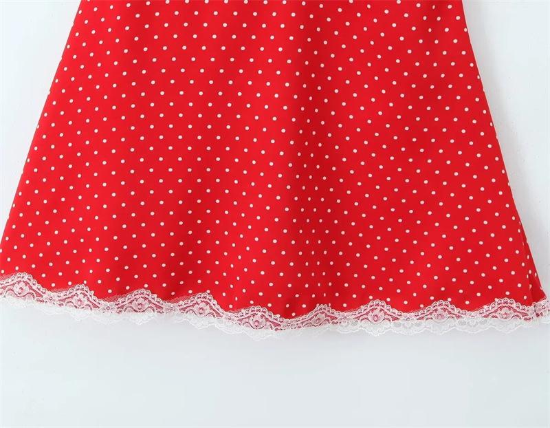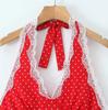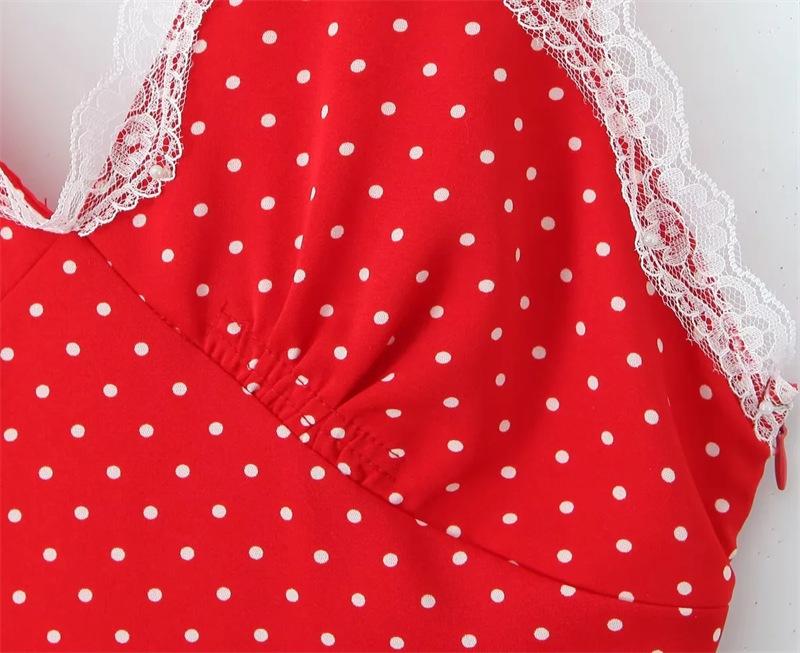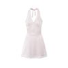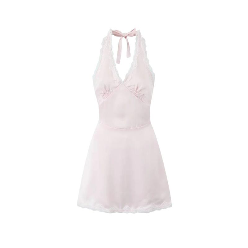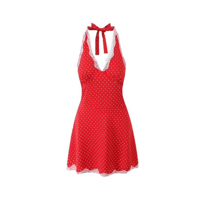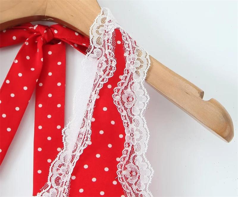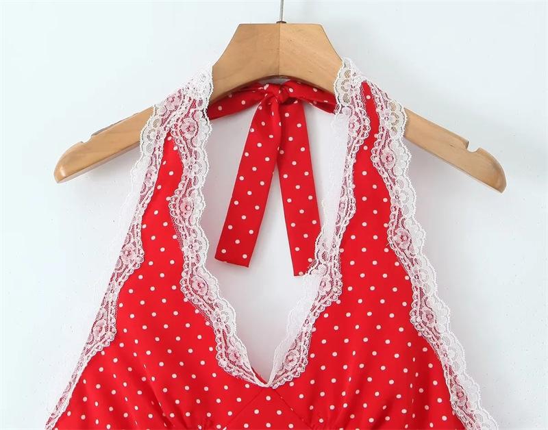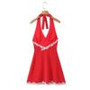 Vestido de falda halter con escote en V profundo y costura de encaje retro francés para mujer, falda sexy de corte A sin espalda