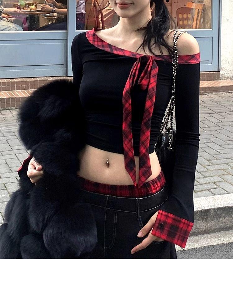 Top corto interior con hombros descubiertos y mangas largas rojas de Spice Girls Pure Desire para mujer, otoño e invierno 2024