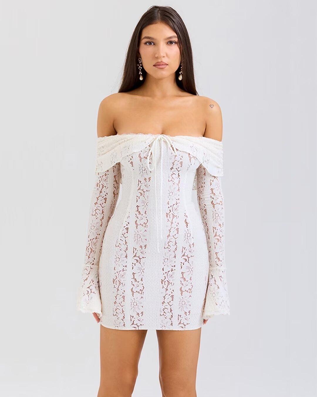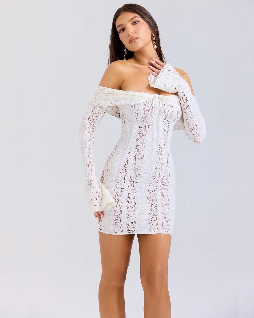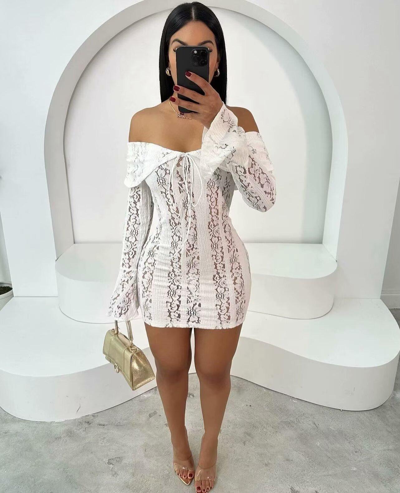 Vestido de manga larga con cordones y hombros descubiertos para mujer, sexy, de Pure Desire, elegante, de otoño, para chica sexy, ajustado, ajustado, con falda a la cadera.