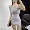 Vestido sexy de un hombro con lazo de manga larga estilo puro deseo, temperamento de otoño para mujer, chica caliente adelgazante y adelgazante de cadera, falda corta