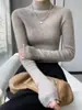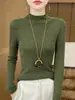 Camisa de punto de lana nueva para mujer, corte entallado, moda de otoño e invierno, suéter de cuello alto medio, diseño de nicho, combina con todo.