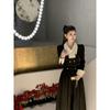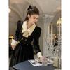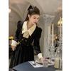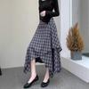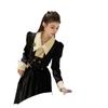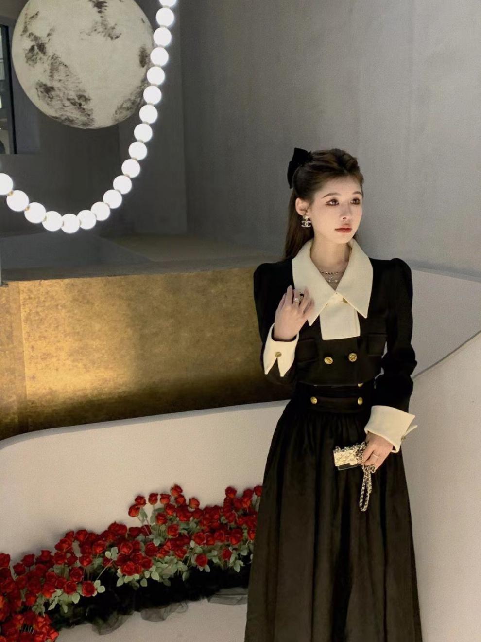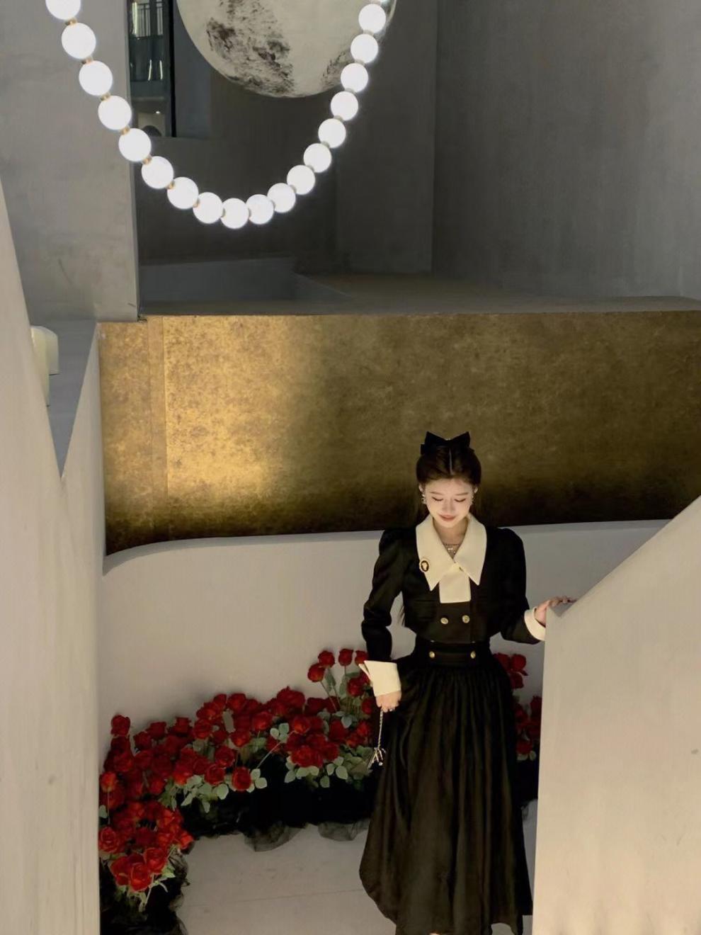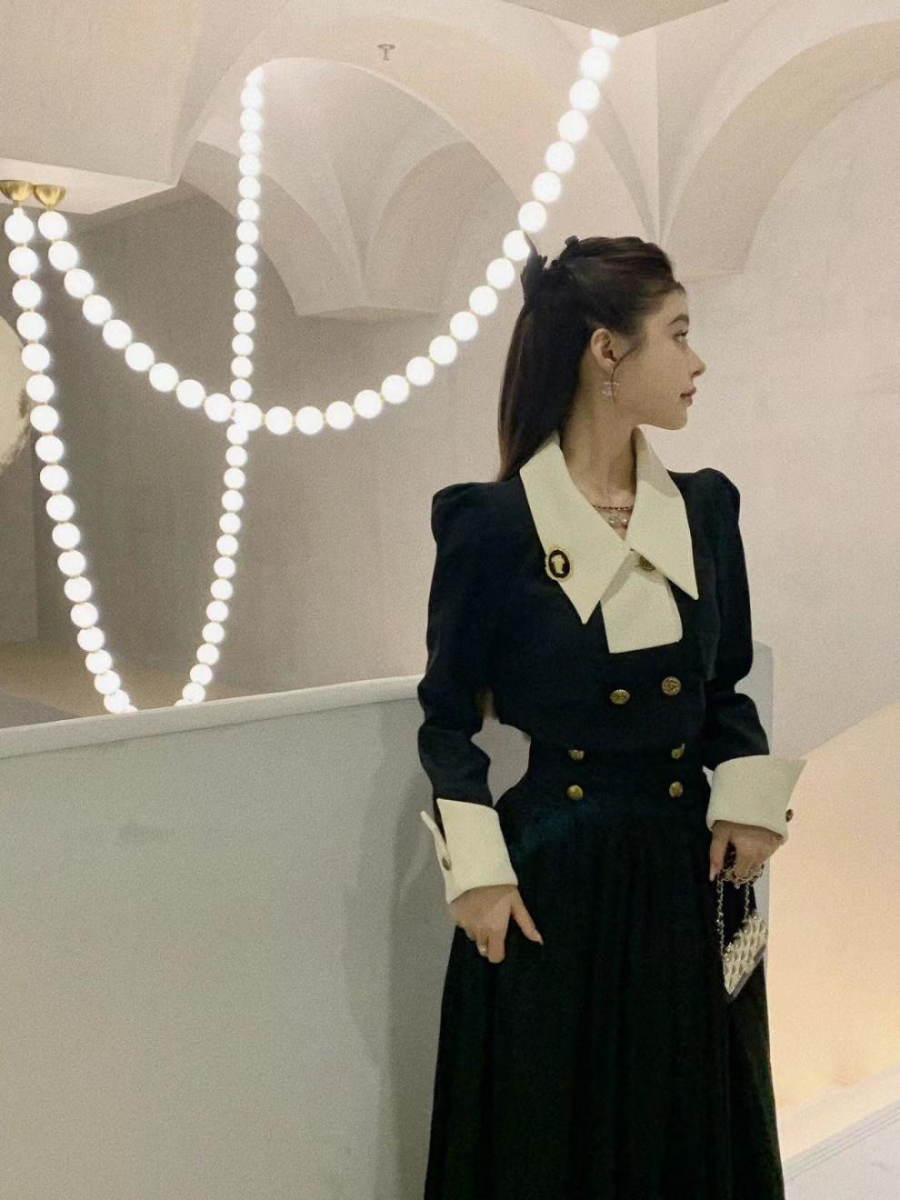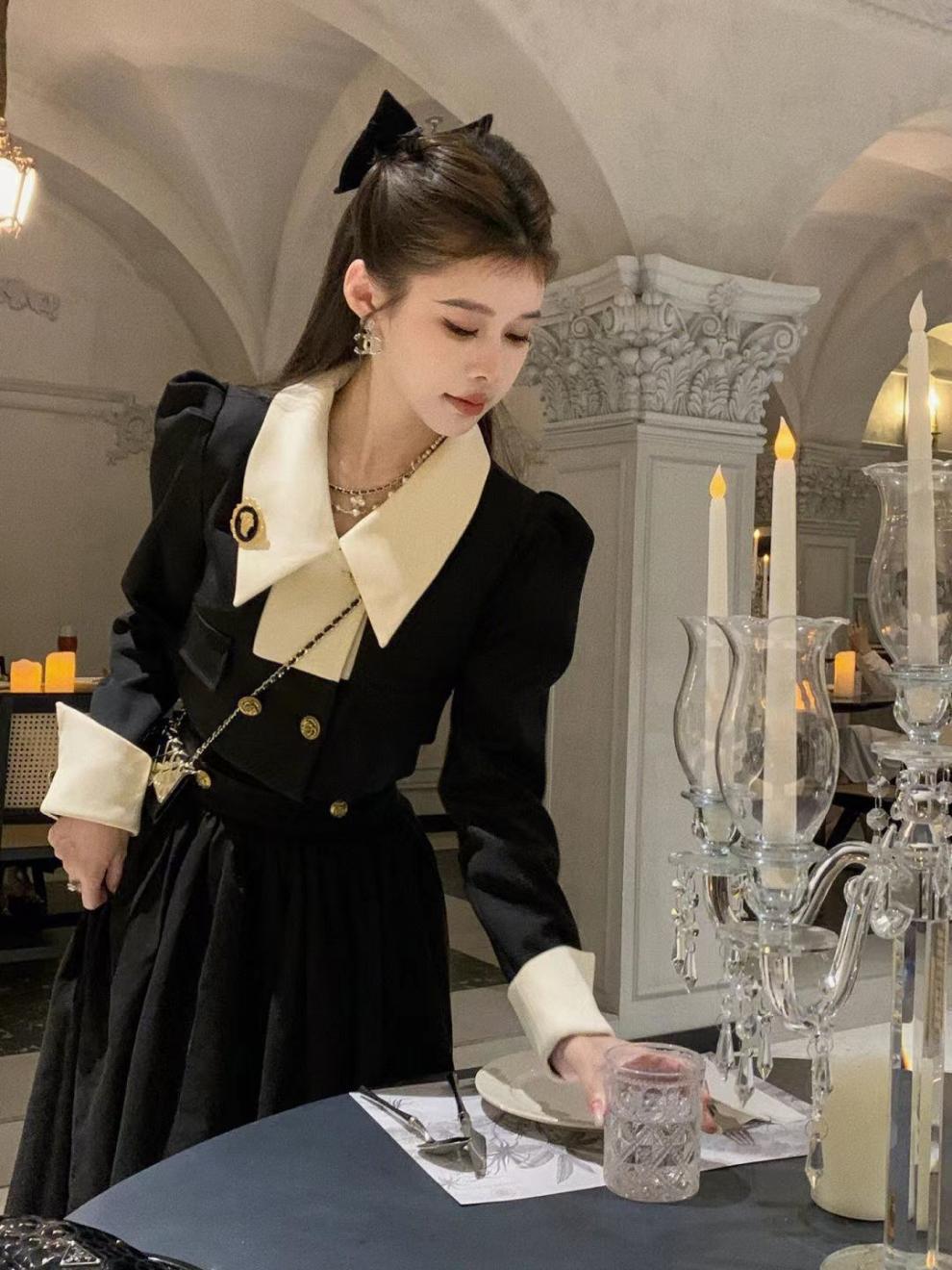Traje elegante francés de alta gama con costuras de color en contraste, chaqueta pequeña, falda de cintura alta y falda de longitud media, traje de dos piezas.