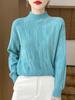 Suéter de Lana Pura para Mujer Nuevo Cuello Alto Suelto Grueso Suéter de Flor de Cáñamo Jersey Tejido Base Camiseta Top