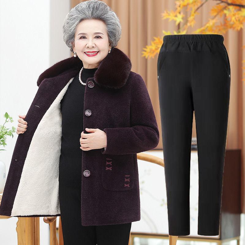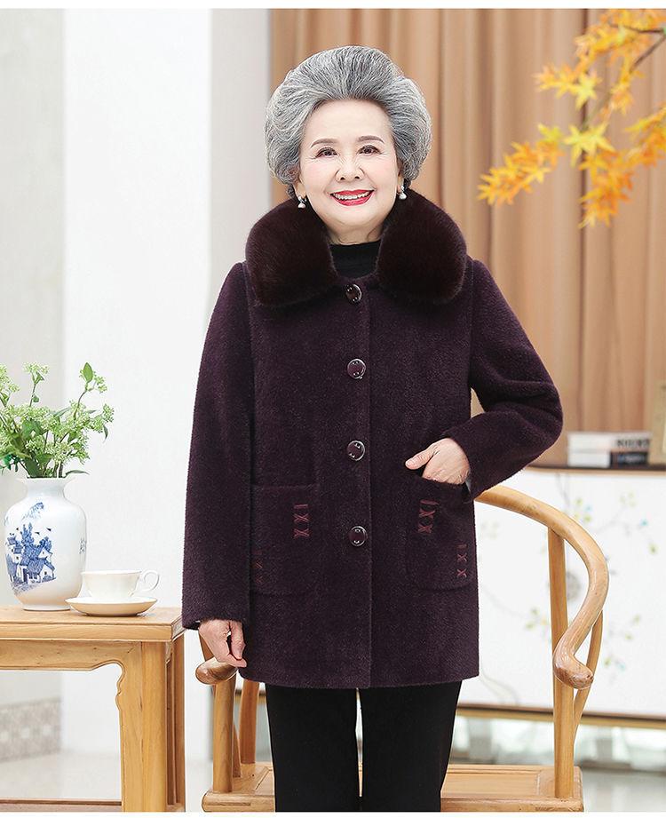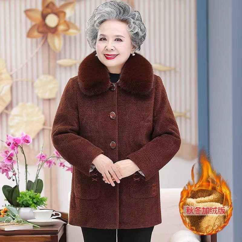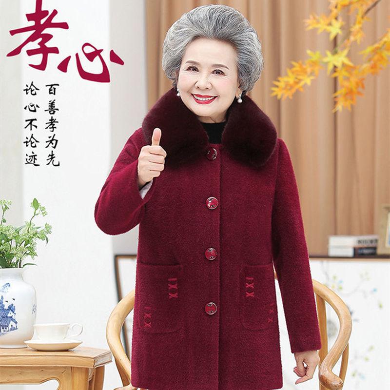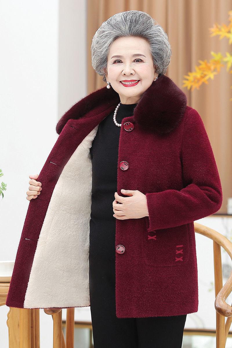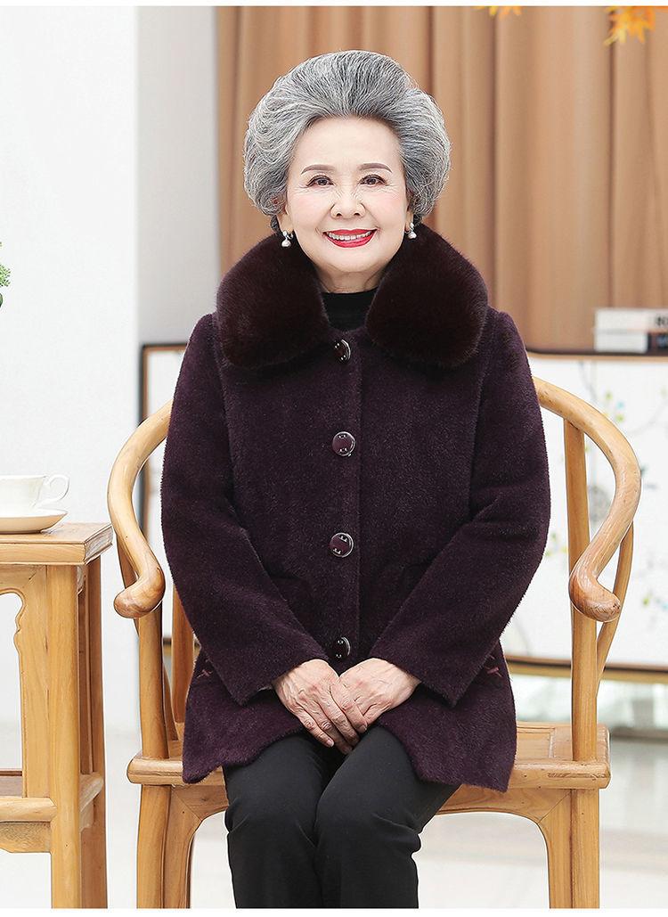 Ropa de mujer mayor blanca, abrigo grueso y cálido con forro polar de terciopelo de visón dorado de invierno, top de abuela de un año largo