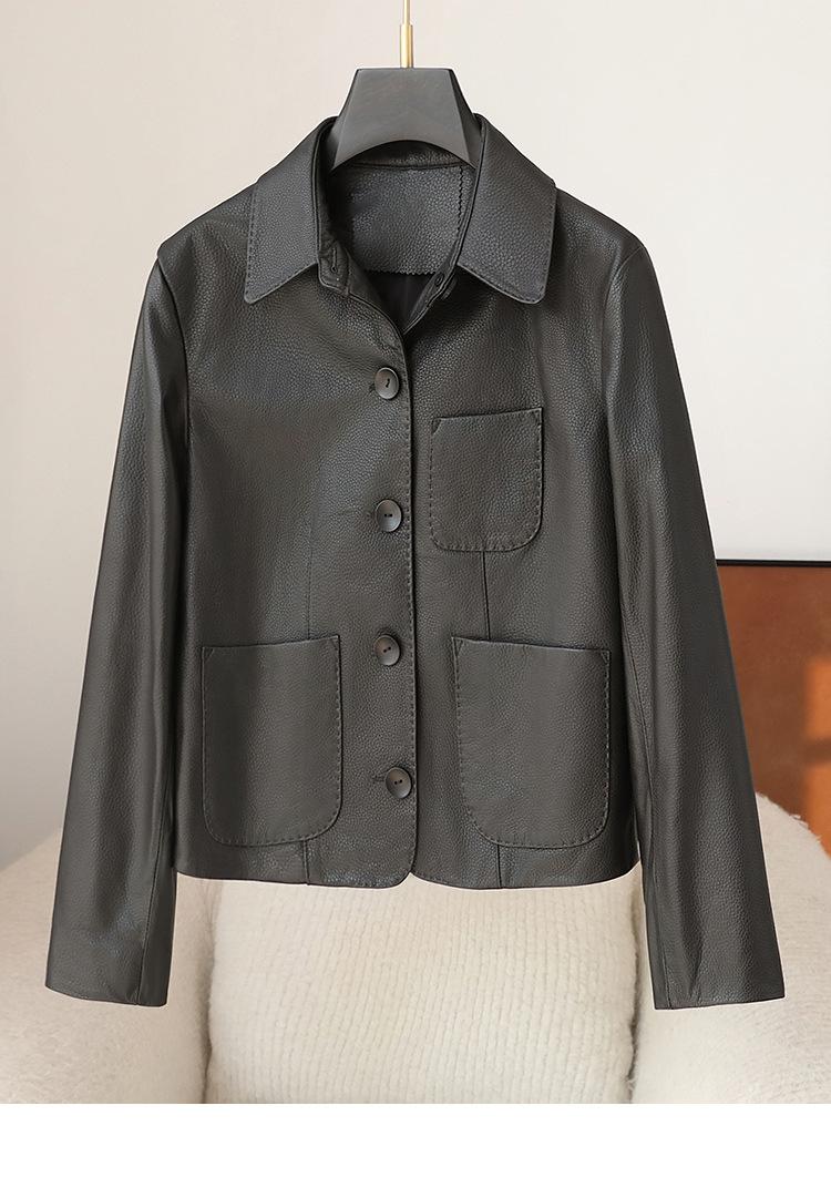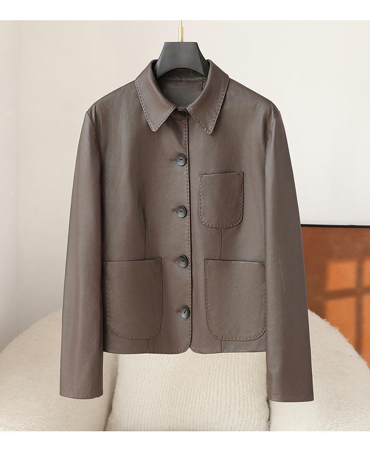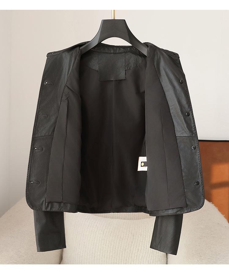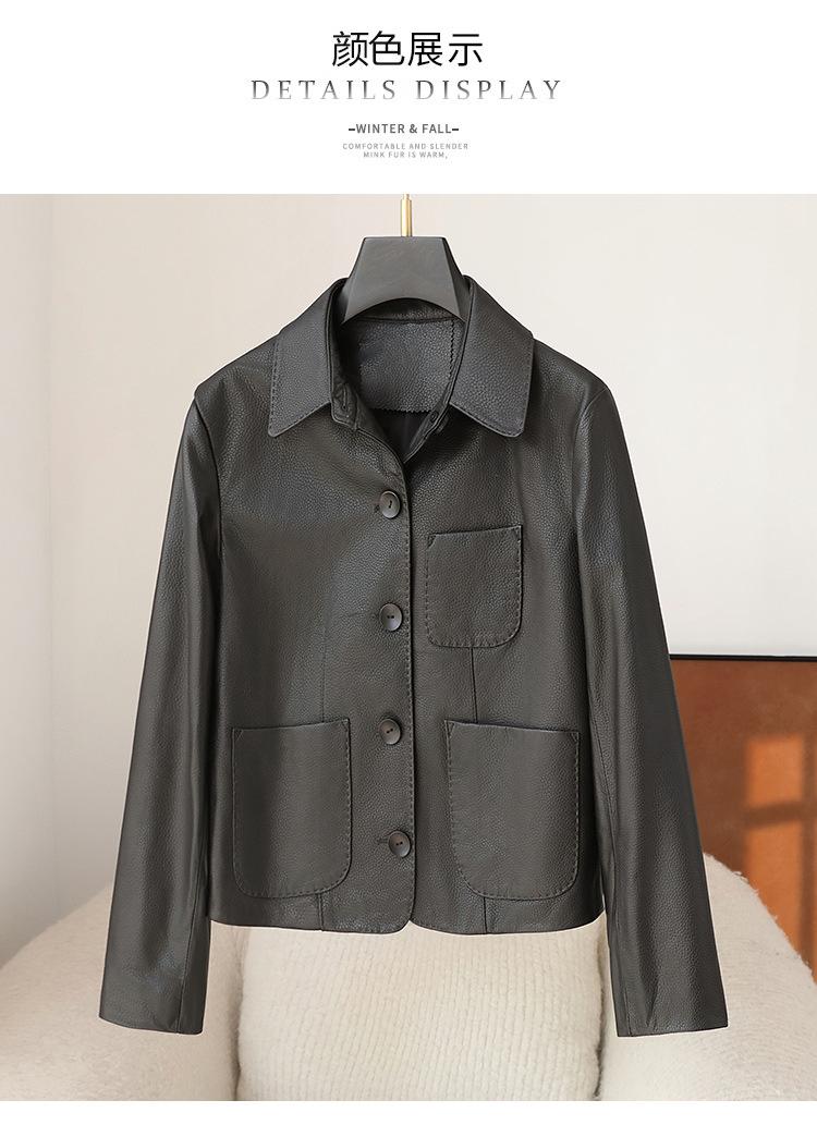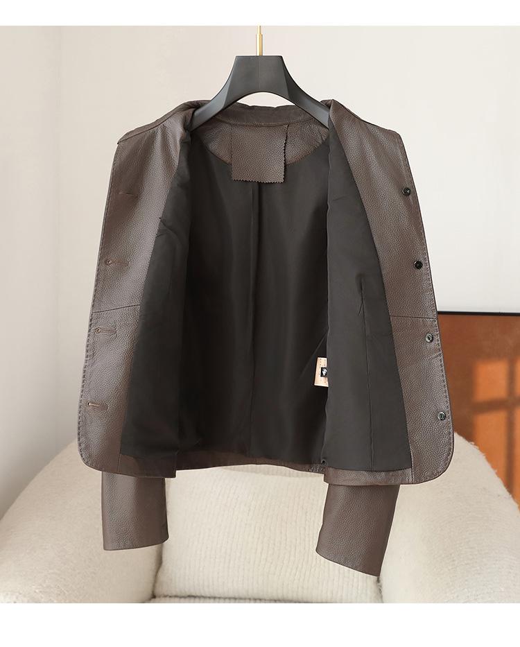 Chaqueta de Piel Genuina de Cabra para Mujer 2025 Otoño e Invierno Nueva Cuello de Traje Piel de Cordero Chaqueta de Cuero para Mujer Chaqueta Corta