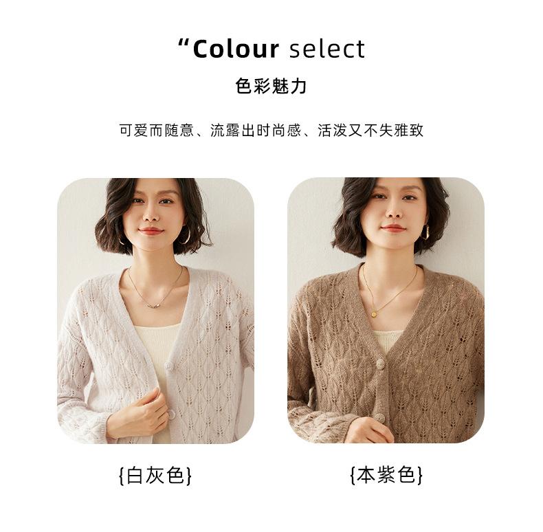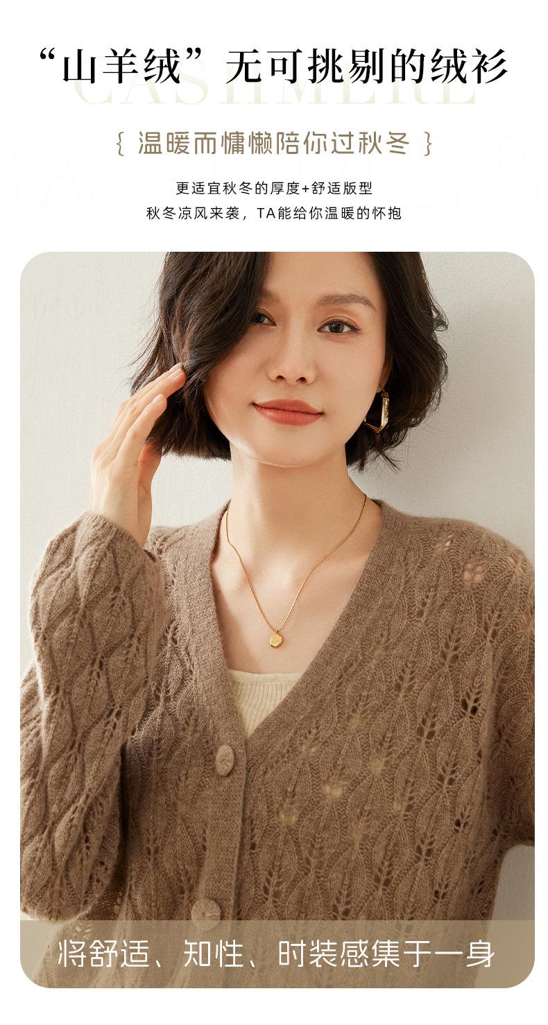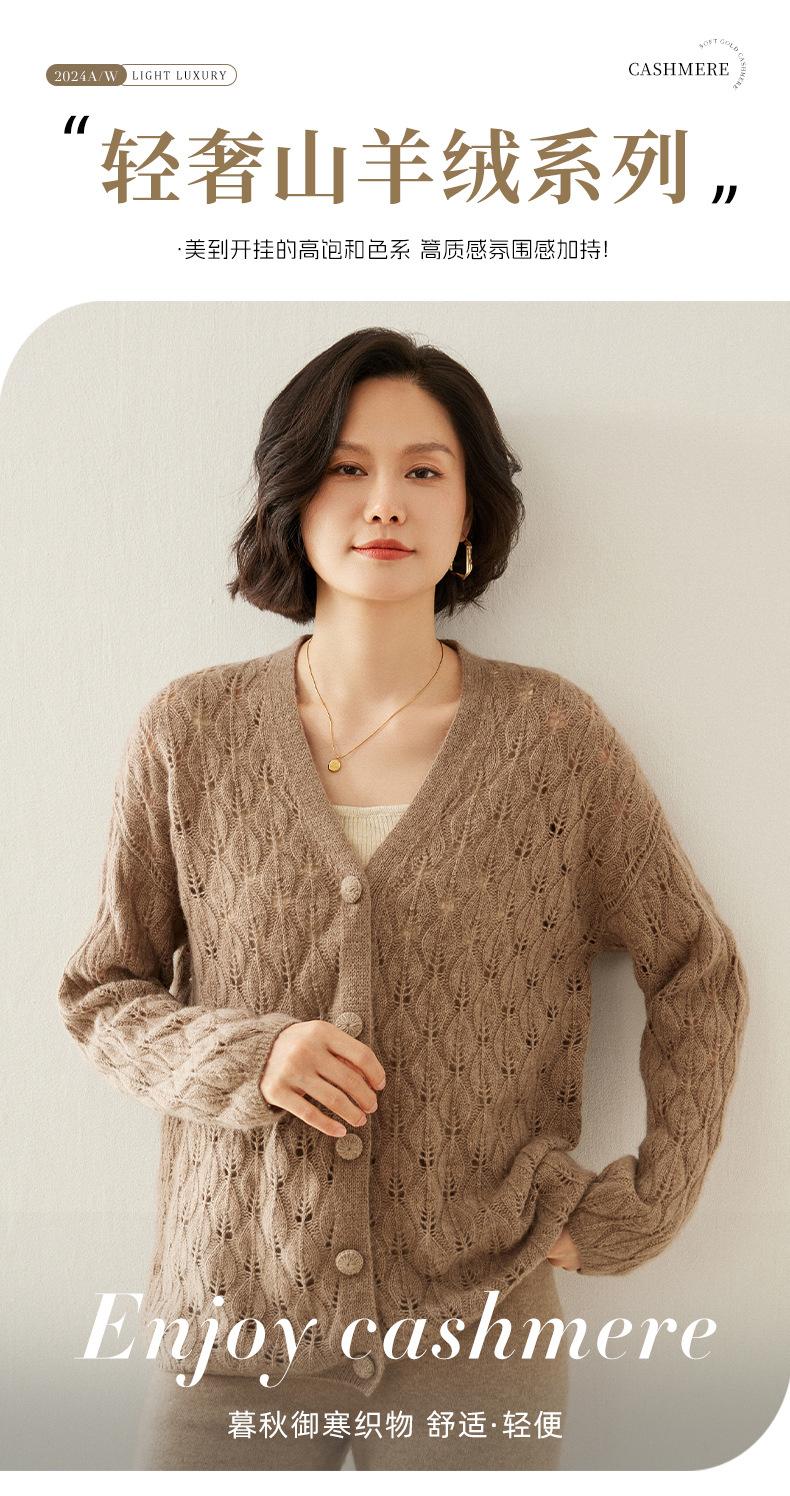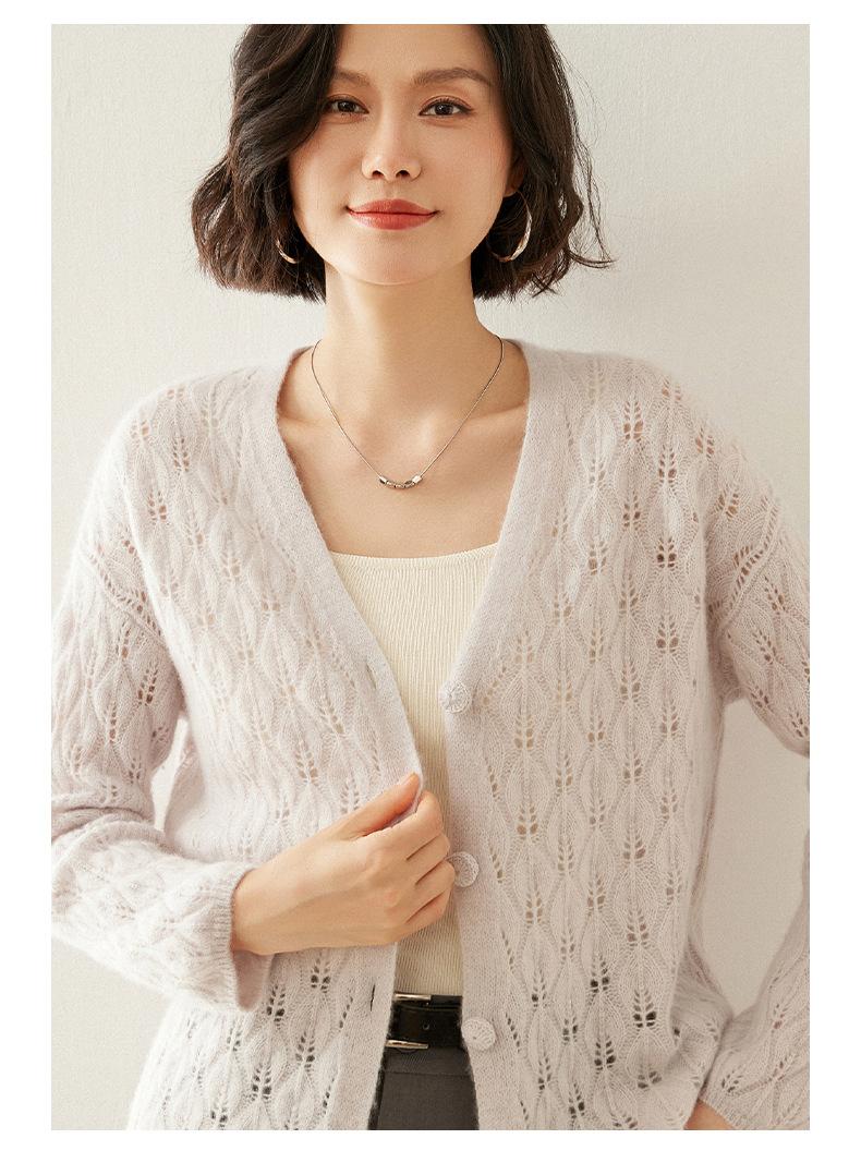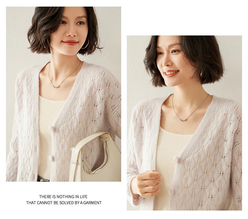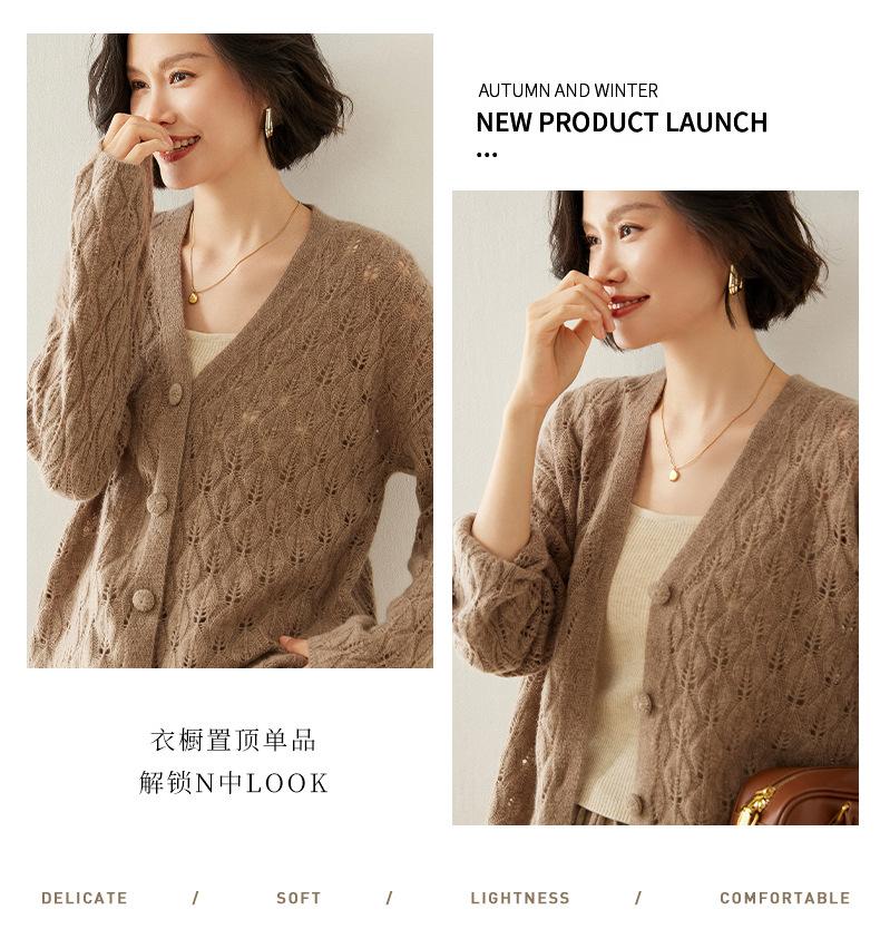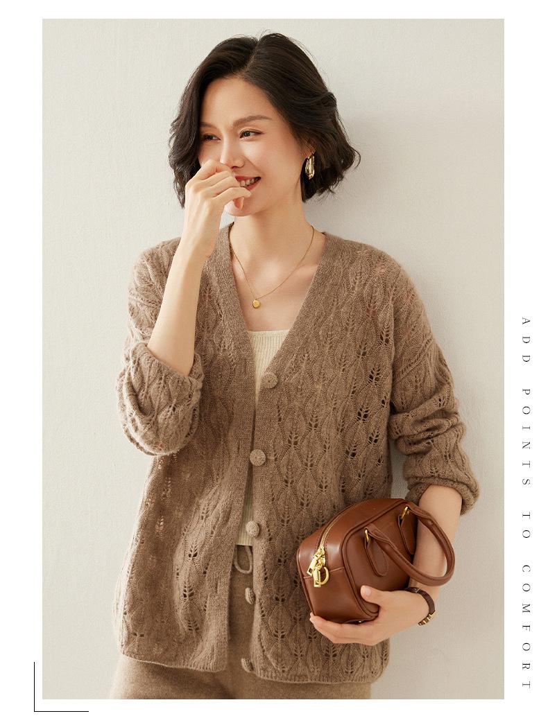 Suéter nuevo de otoño e invierno, cárdigan de cachemira con cuello en V, bolso con hebilla, abrigo hueco de hoja, suéter holgado de estilo extranjero que combina con todo