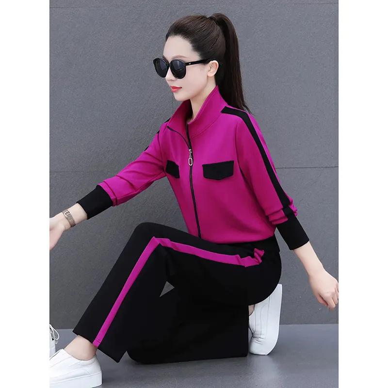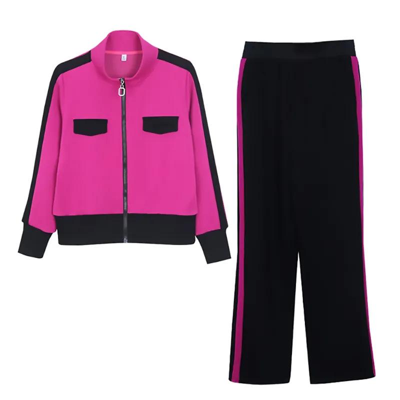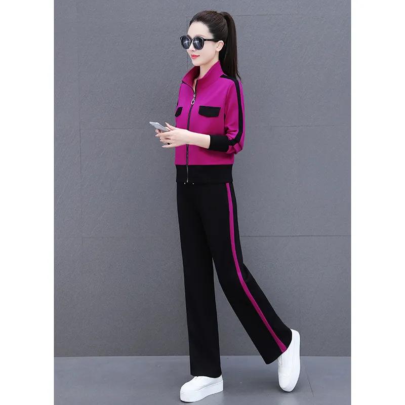 Traje informal de nueva moda europea para mujer, conjunto de dos piezas con suéter y pantalones de cuello a juego de colores deportivos de otoño de principios de 2024