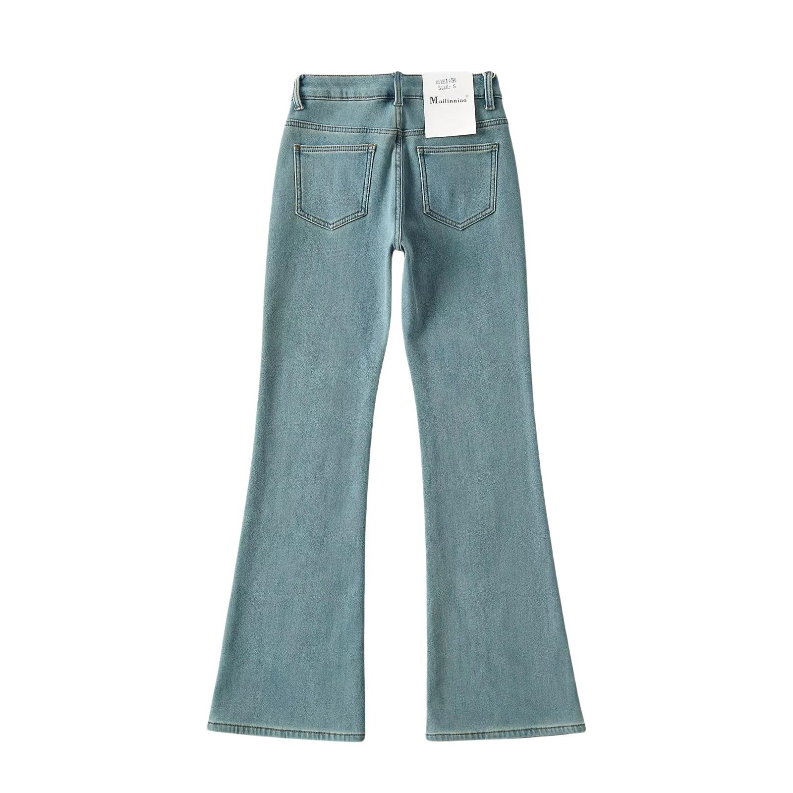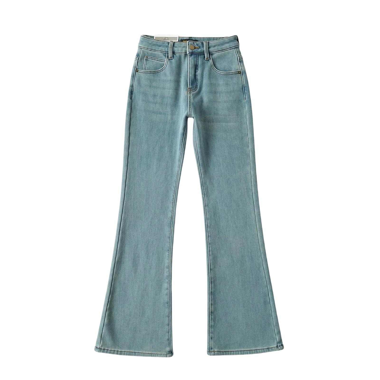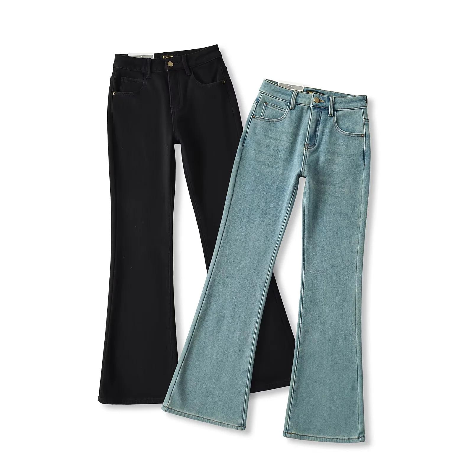 Pantalones vaqueros Micro La Vintage con forro polar estilo americano para otoño e invierno de 2024, pantalones rectos adelgazantes de cintura baja para mujer Spice Girls