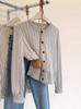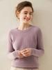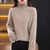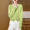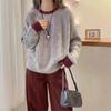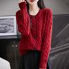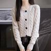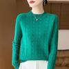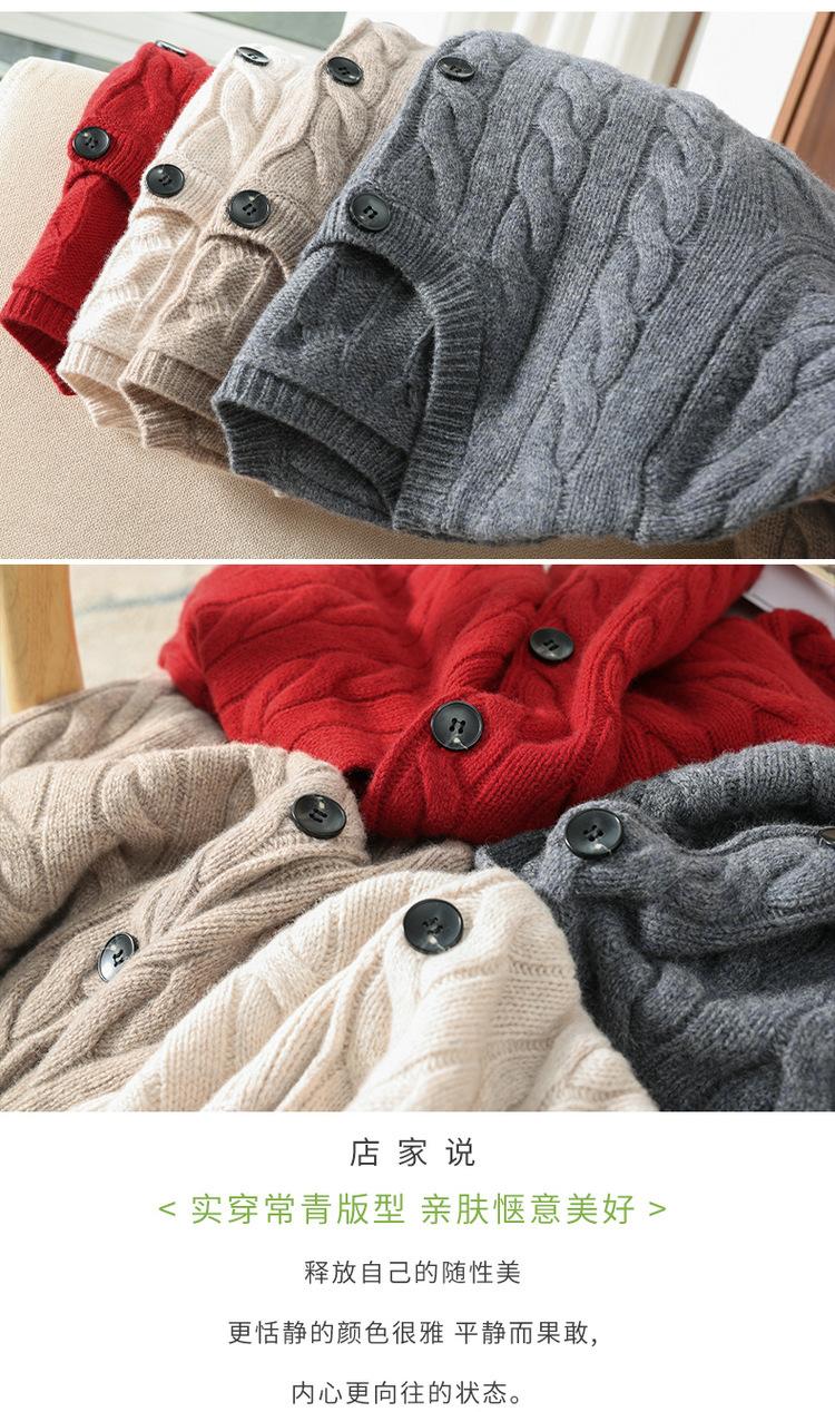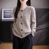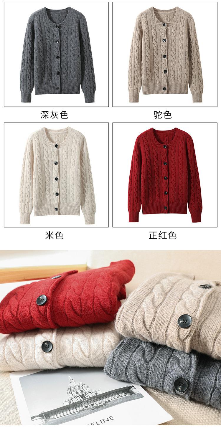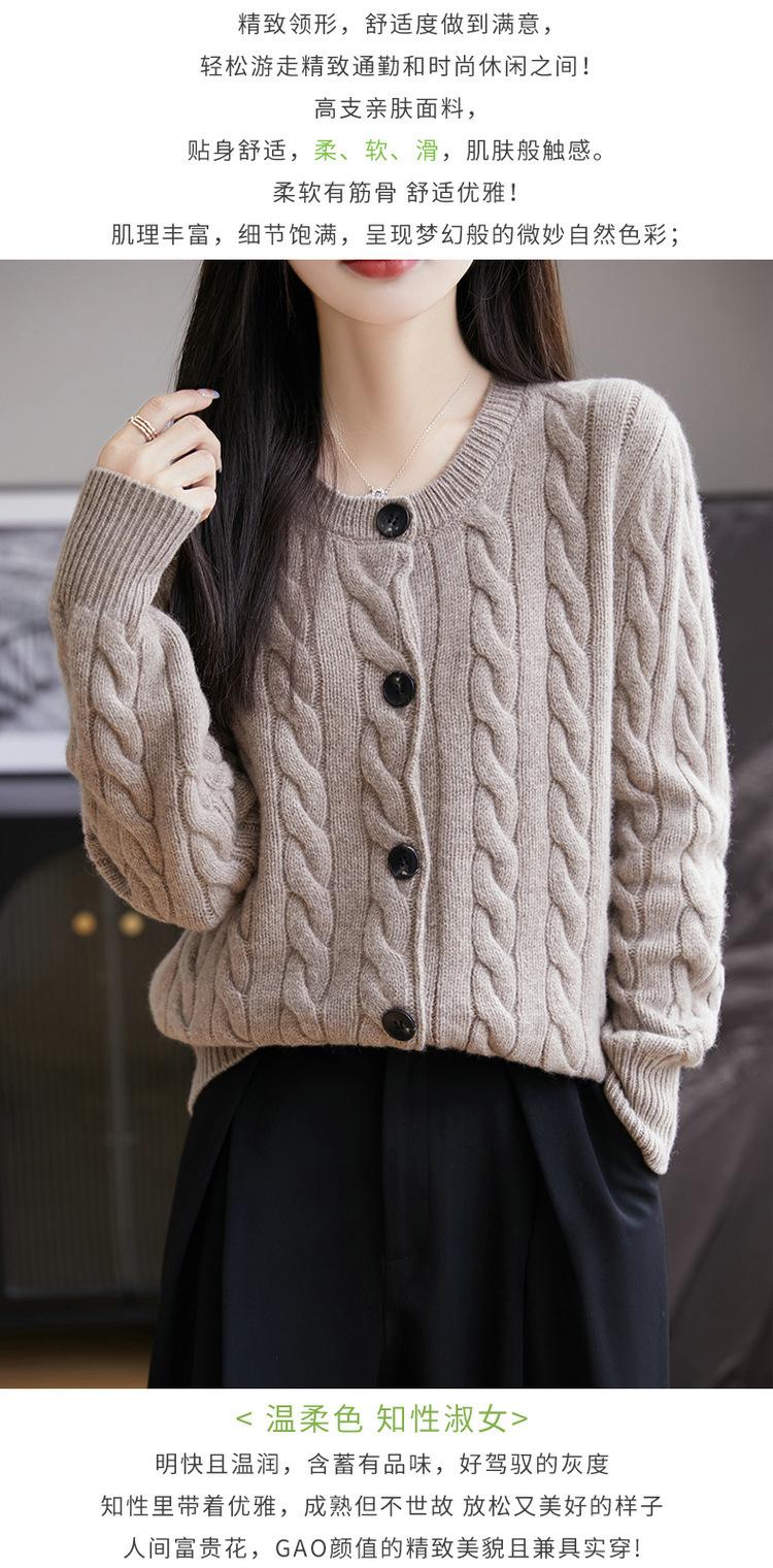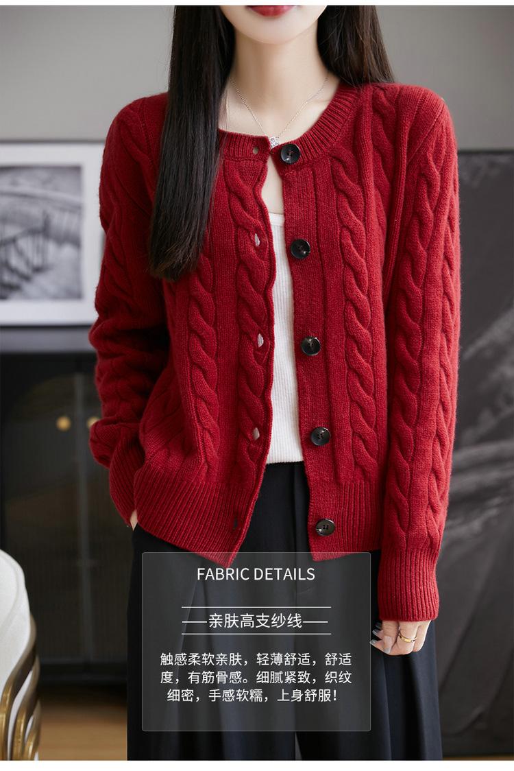 Suéter de lana pura con cuello redondo y giro para mujer, abrigo de otoño e invierno, cárdigan de punto elegante de estilo holgado y grueso.