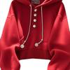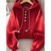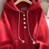 Sudadera con capucha roja retro americana para mujer, otoño e invierno, nueva chaqueta holgada de estilo relajado.