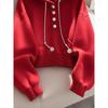 Sudadera roja retro americana con capucha para mujer 2024 otoño e invierno nueva estilo holgado perezoso top de chaqueta de alta gama