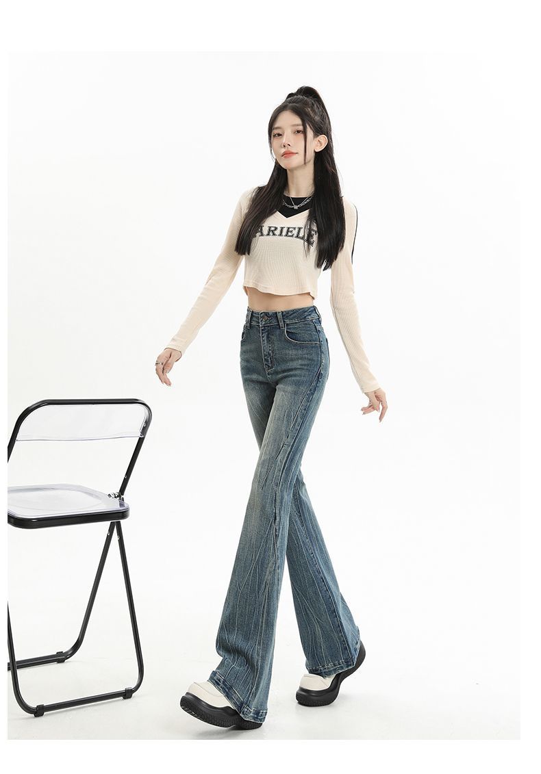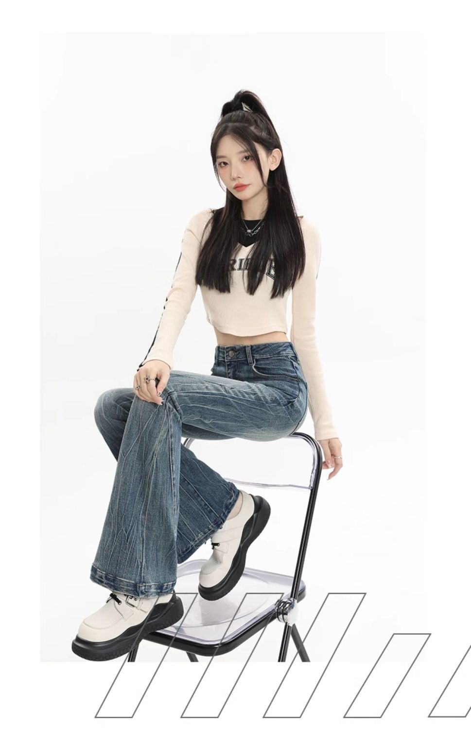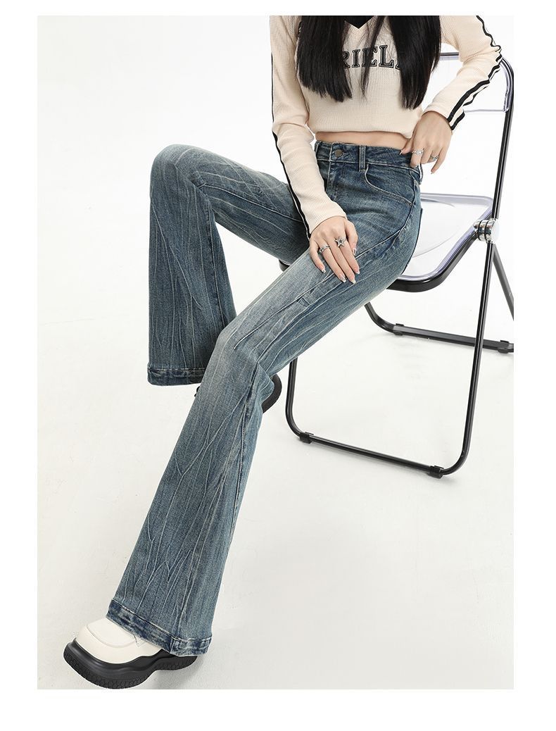 Jeans Micro-Lar sin Pierna para Mujer Otoño e Invierno Combinación Versátil 2024 Nuevo Estilo Americano Retro Suelto Ajustado Deslavado