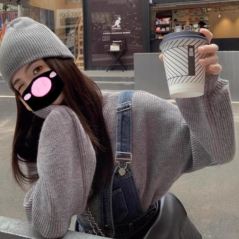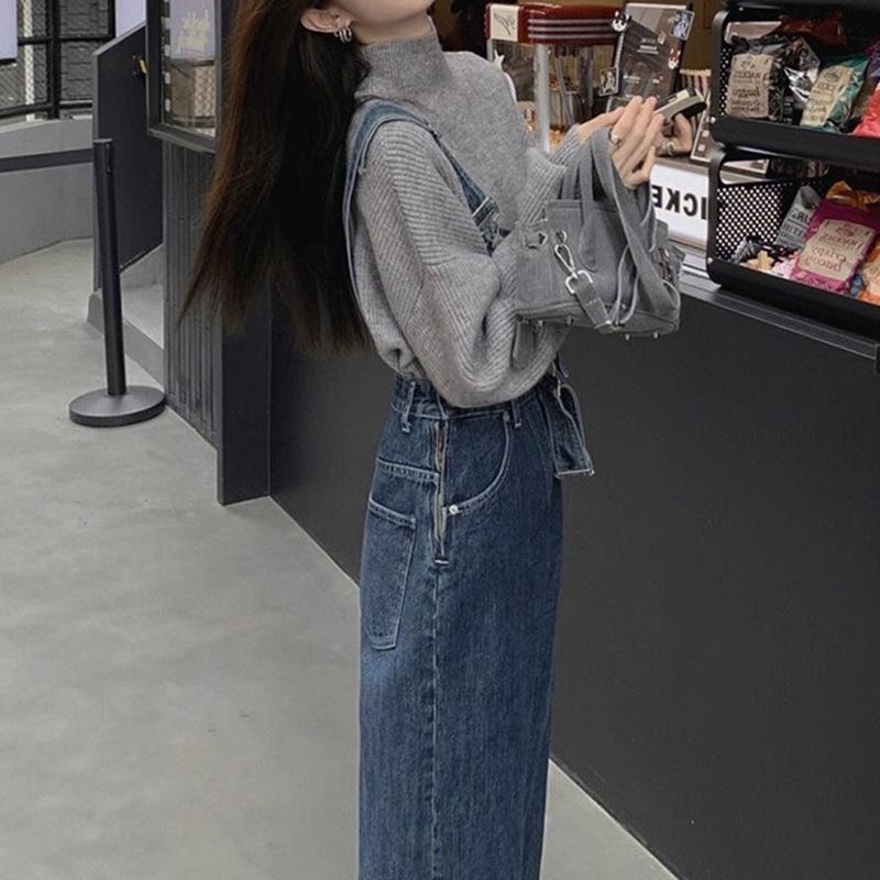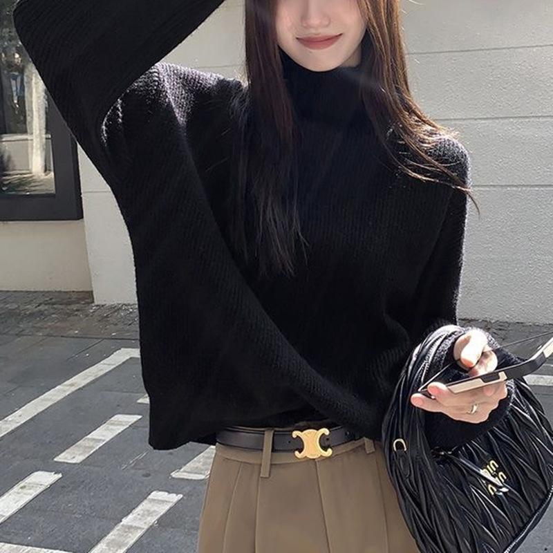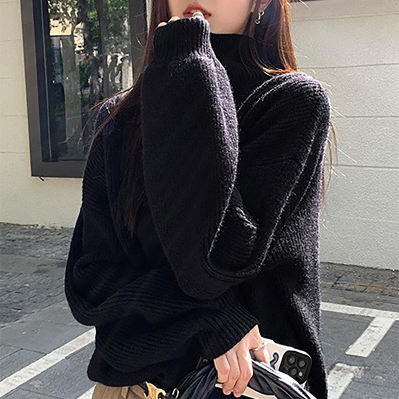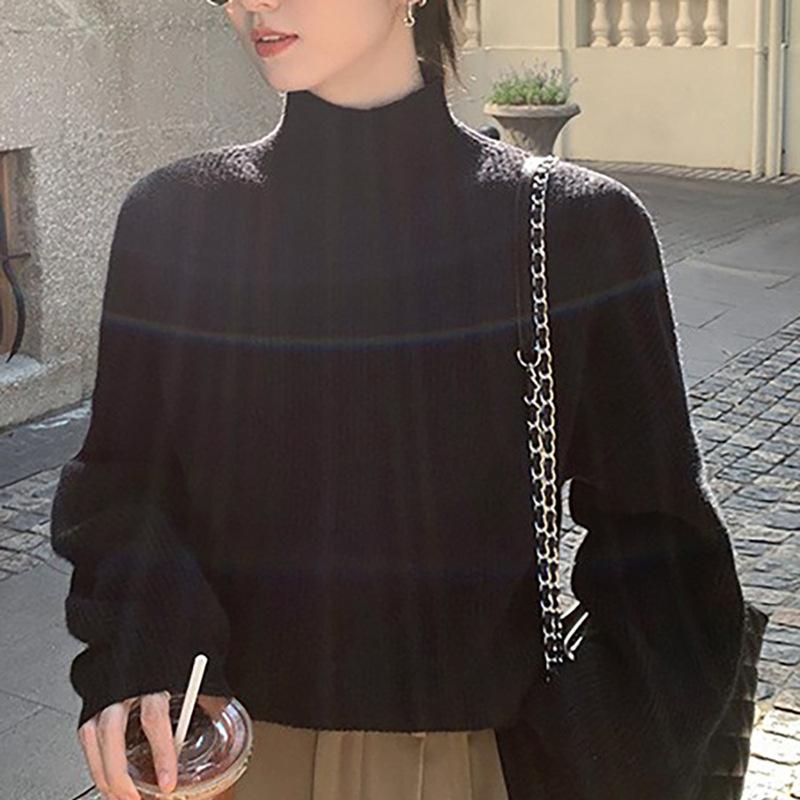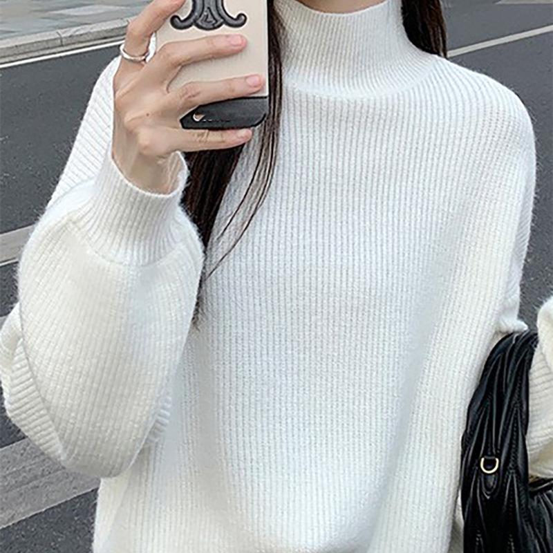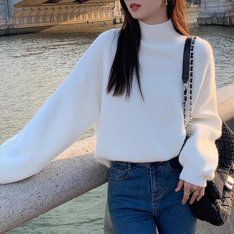 Suéter de punto de cuello alto medio de color liso, estilo coreano, combina con todo, para otoño e invierno, camisa interior informal holgada para mujer