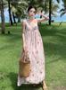 Vestido playero holgado con cuello de hada, nuevo estilo 2024, con estampado floral, para vacaciones en la playa y todo tipo de combinaciones.