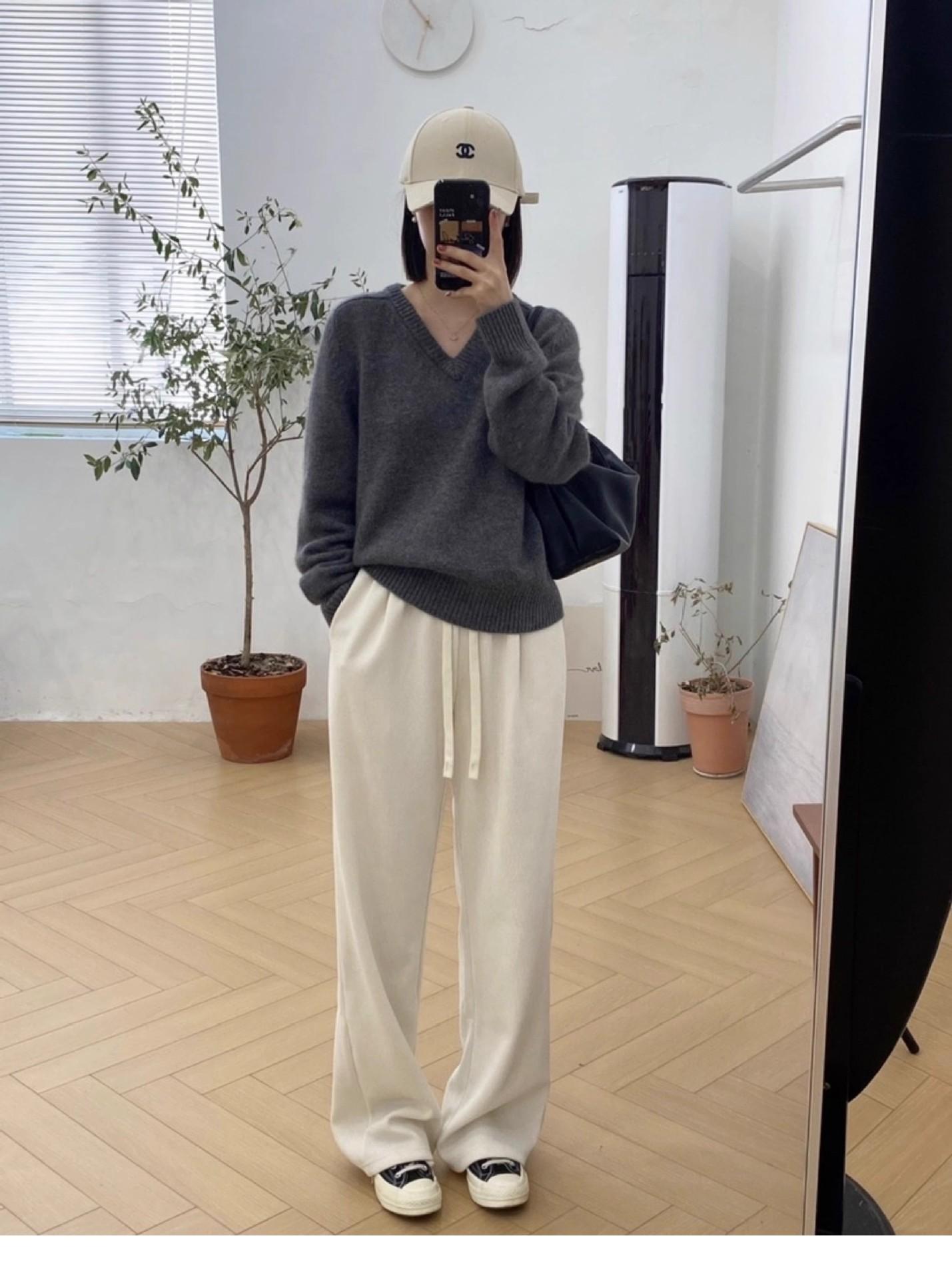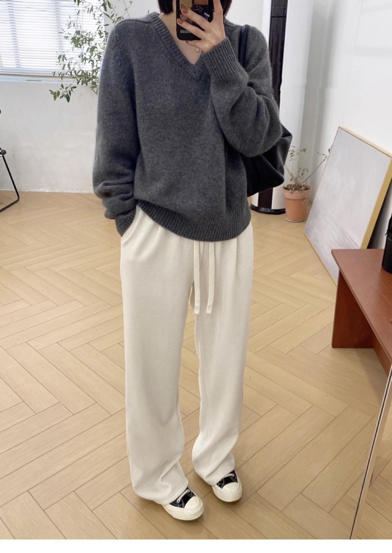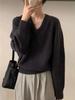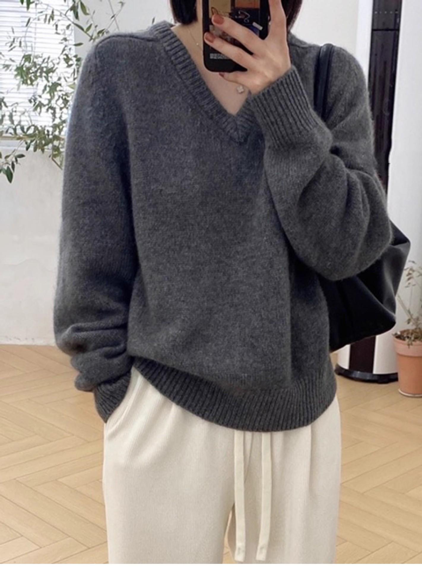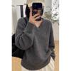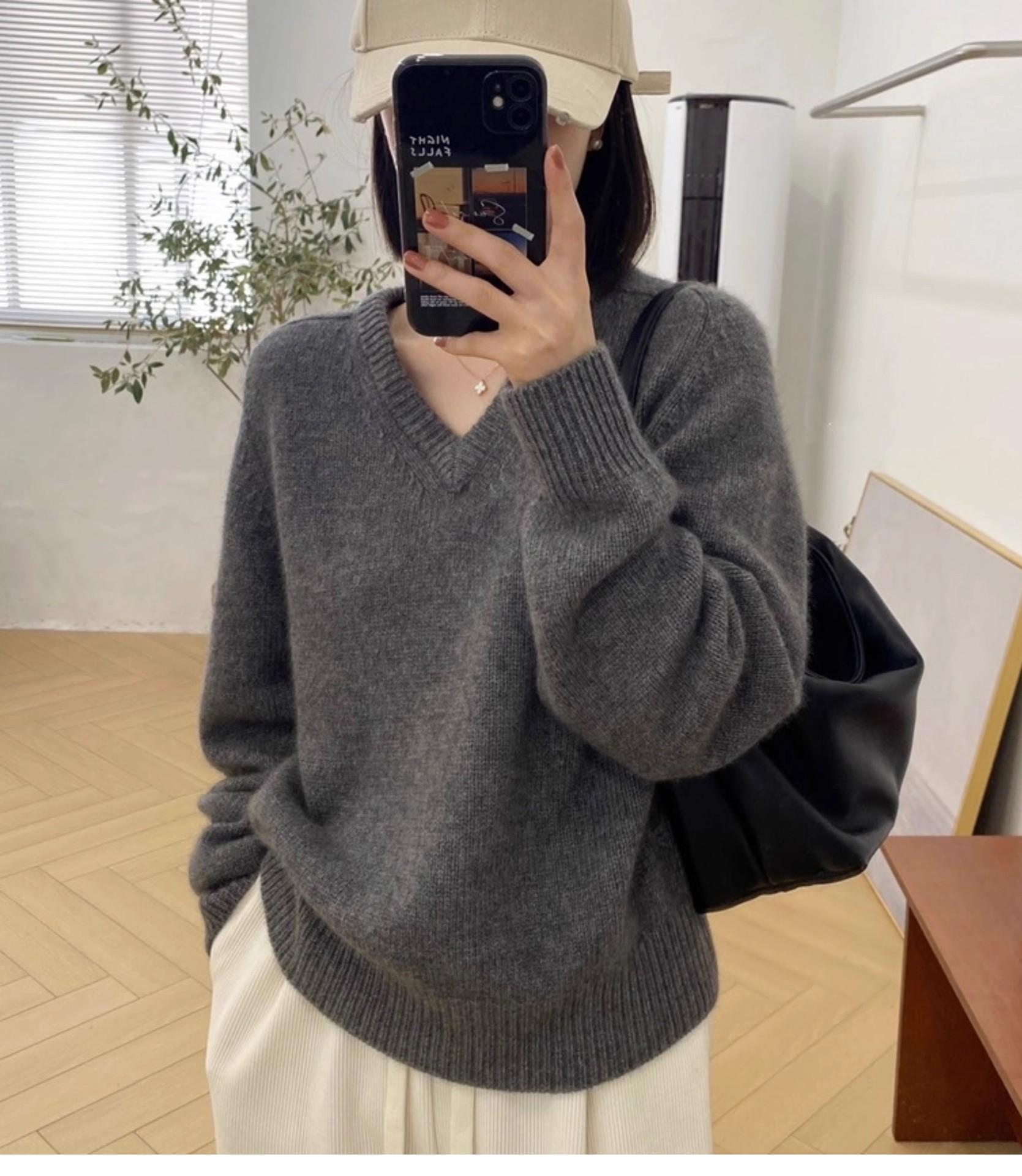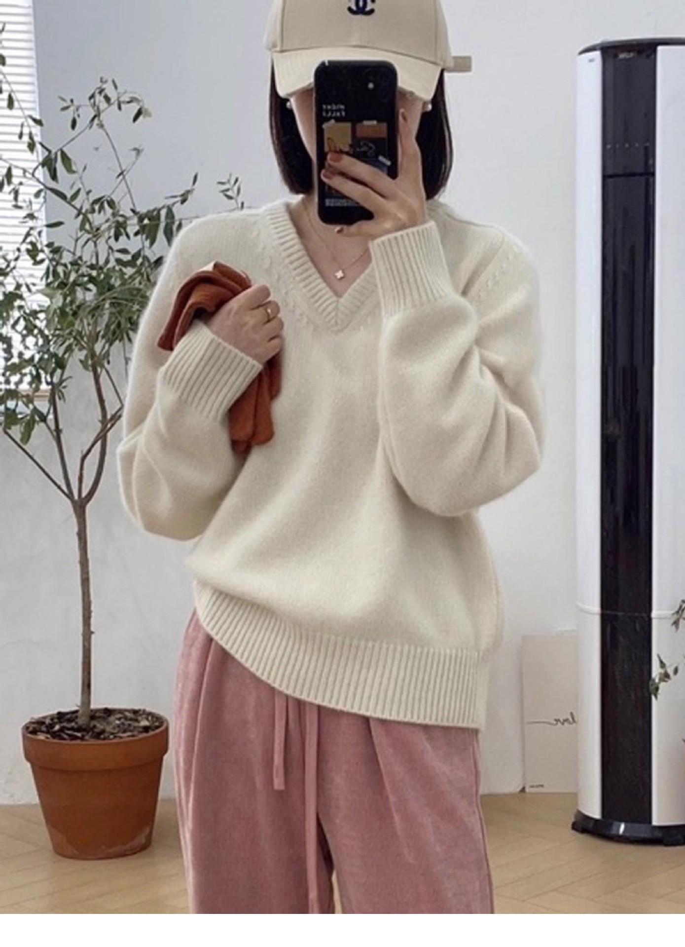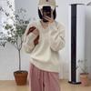 Suéter europeo de cuello en V para mujer, otoño e invierno, de alta gama, suelto, suave, ceroso, de cuello bajo, base gruesa, suéter de alta calidad