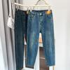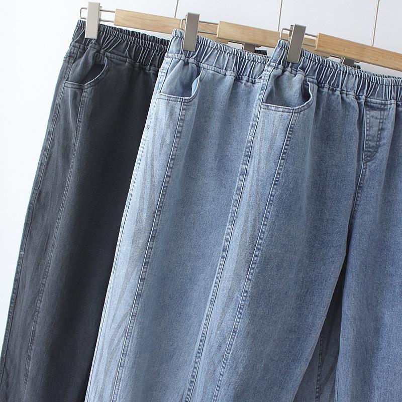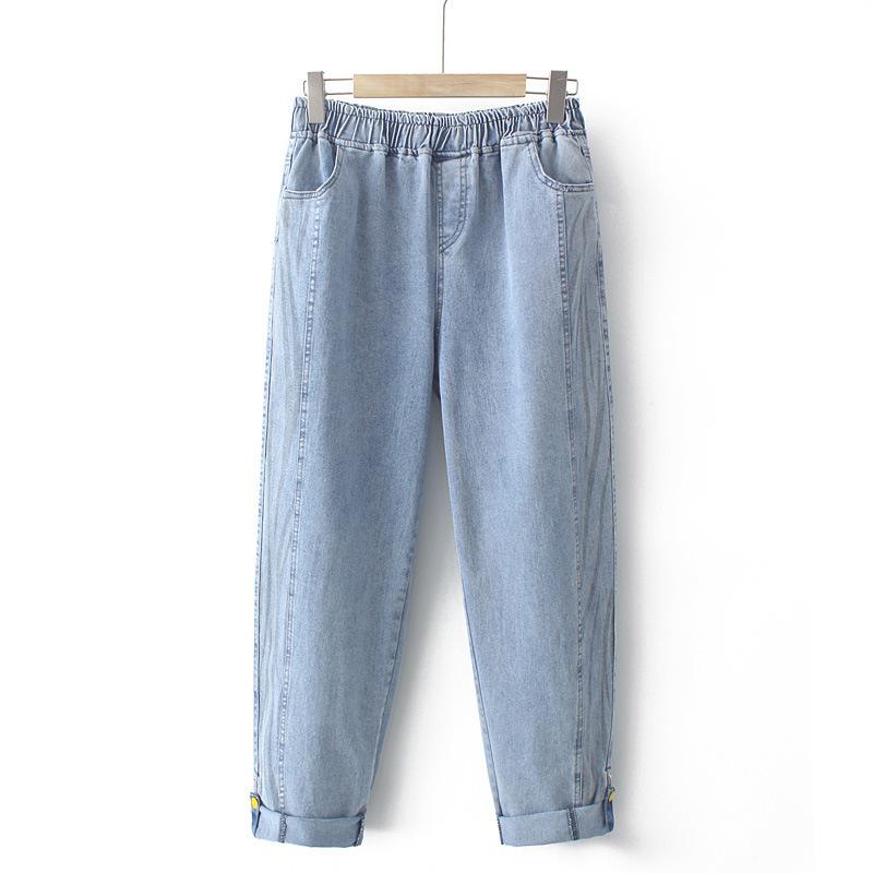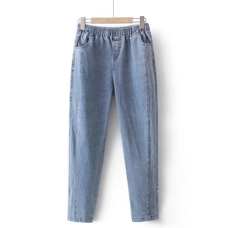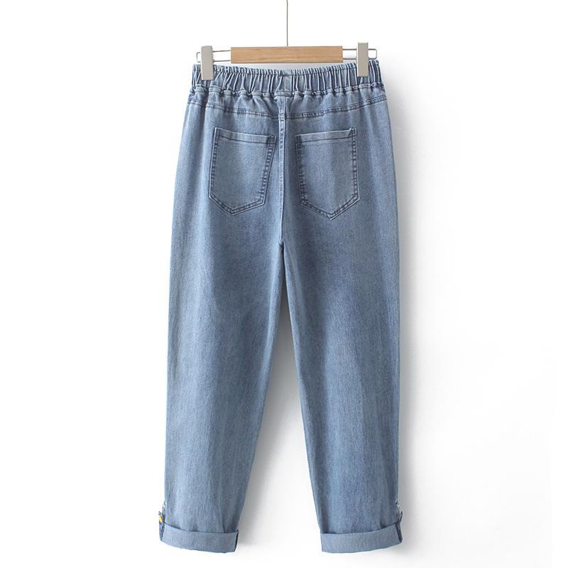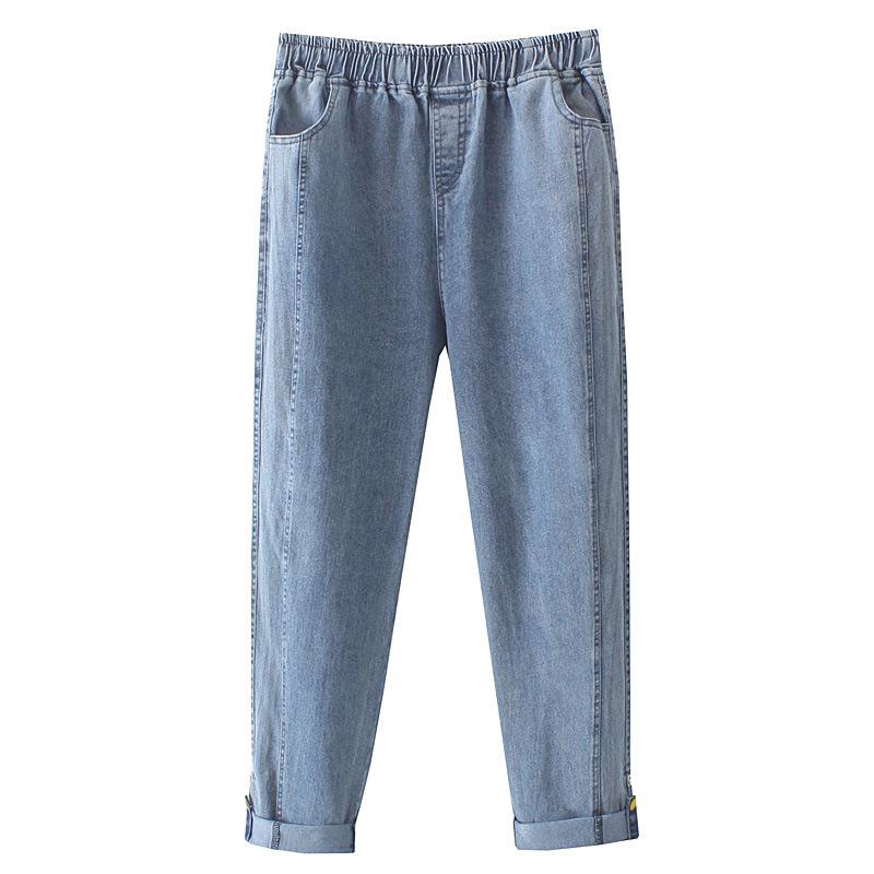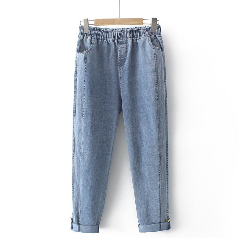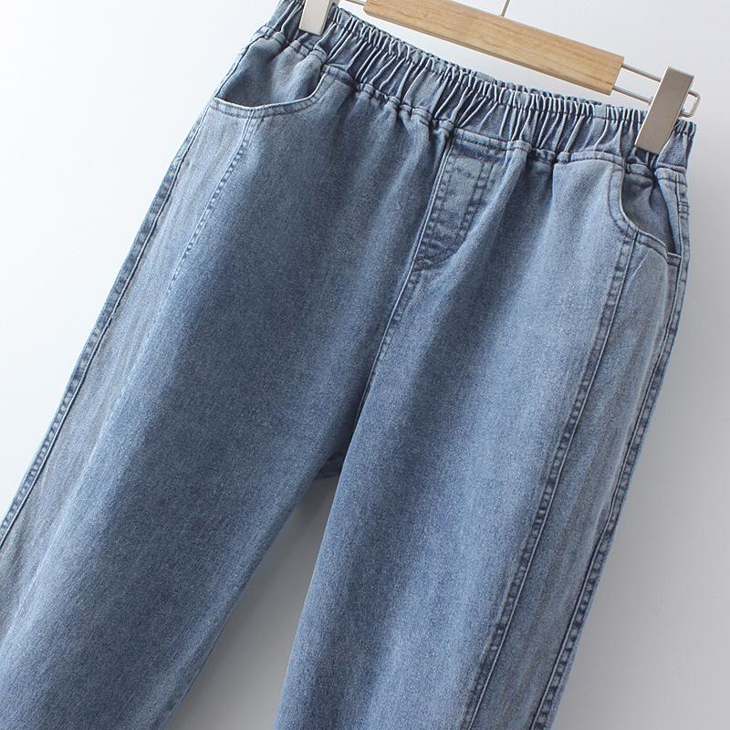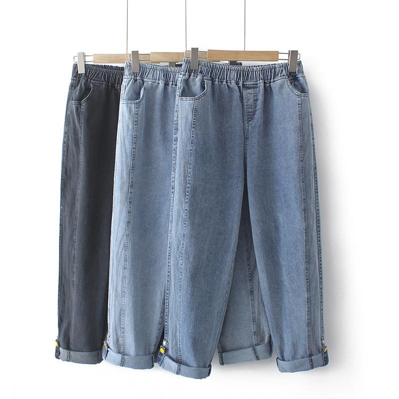 100kg Gordo mm Denim Elástico Delgado Pantalones Harem Talla Grande para Mujer K691