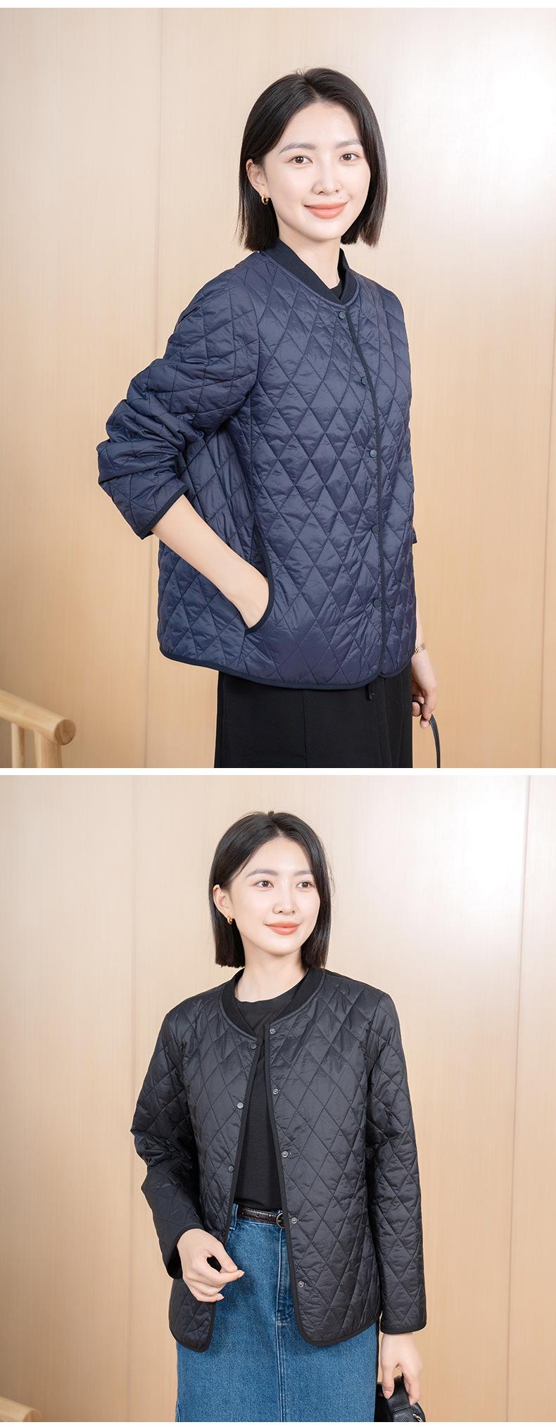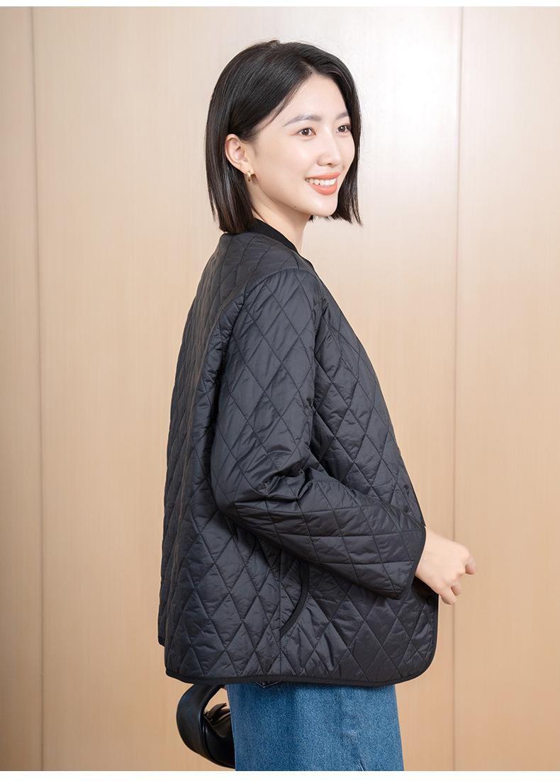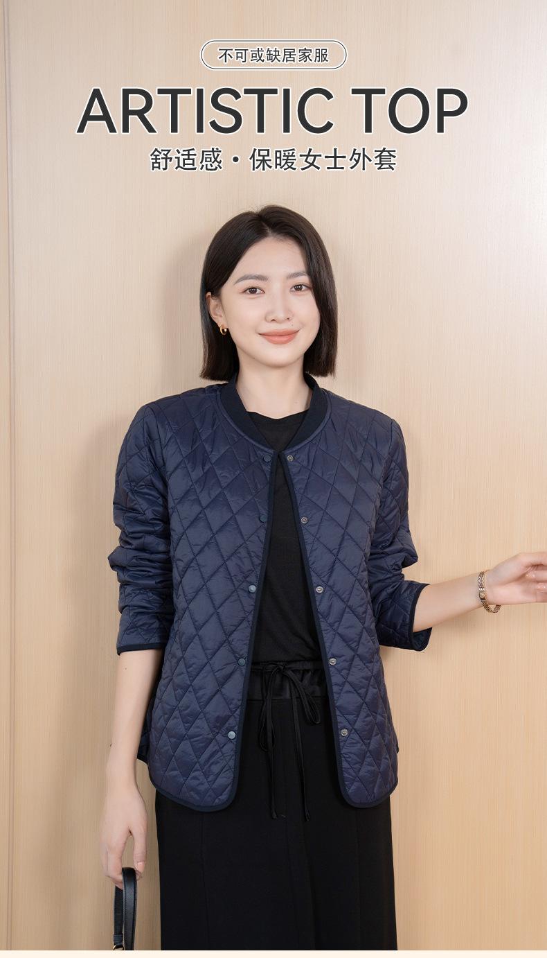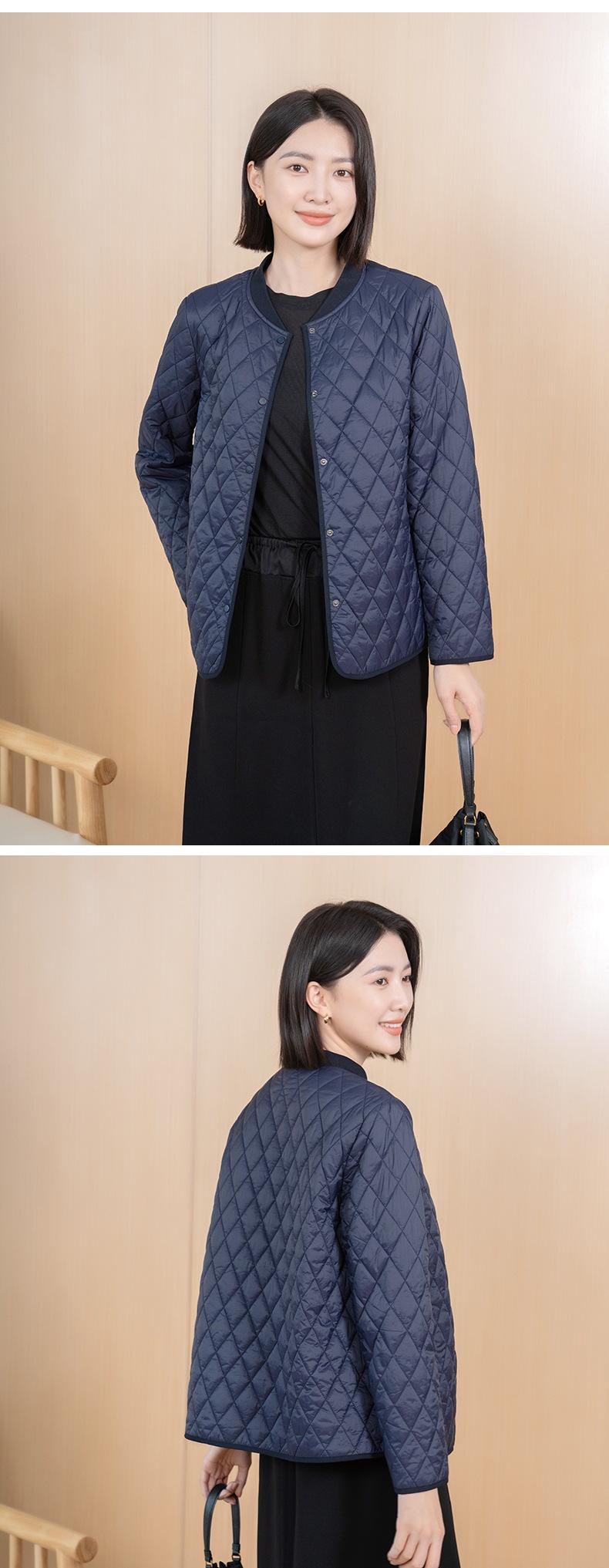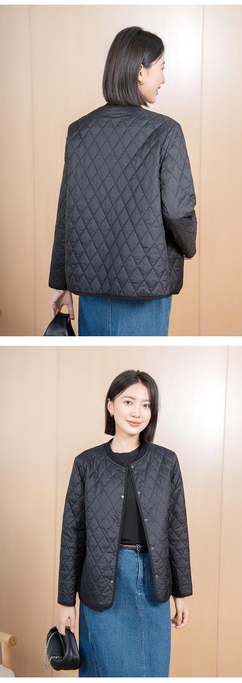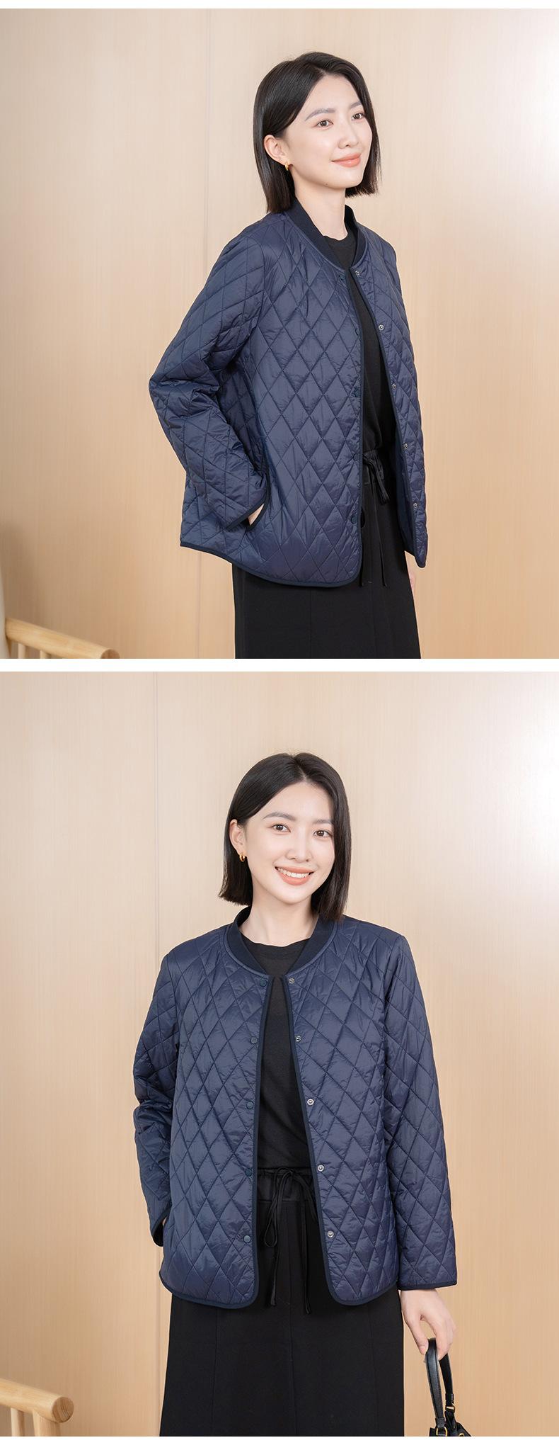 YUN Yun Abrigo Acolchado de Algodón de Cuello Redondo de Primavera y Otoño para Mujer, Ligero y Holgado, con Diseño Romboidal, sin Cuello, de Alta Gama, Holgado para Ir al Trabajo, Acolchado de Algodón