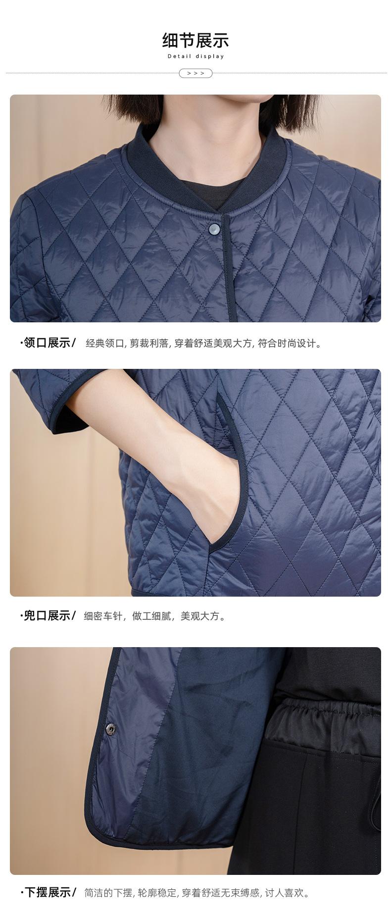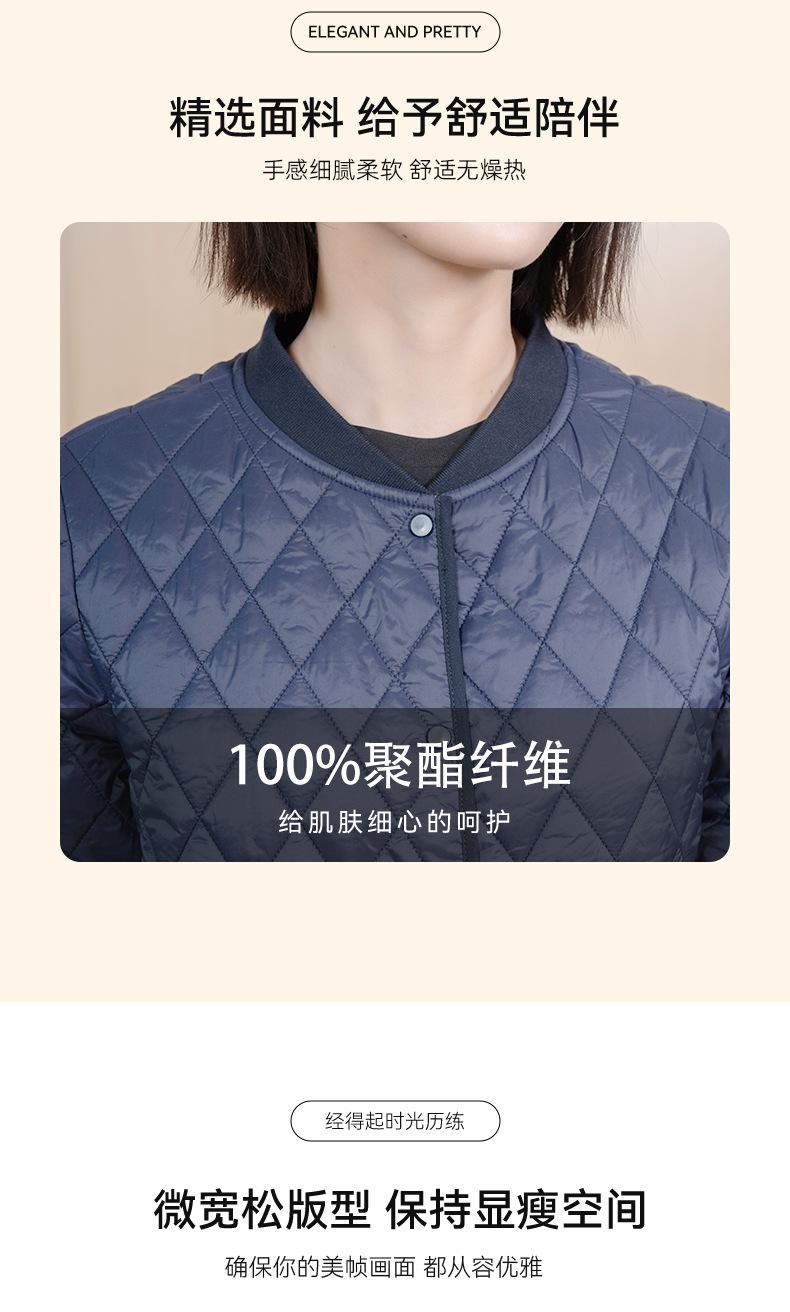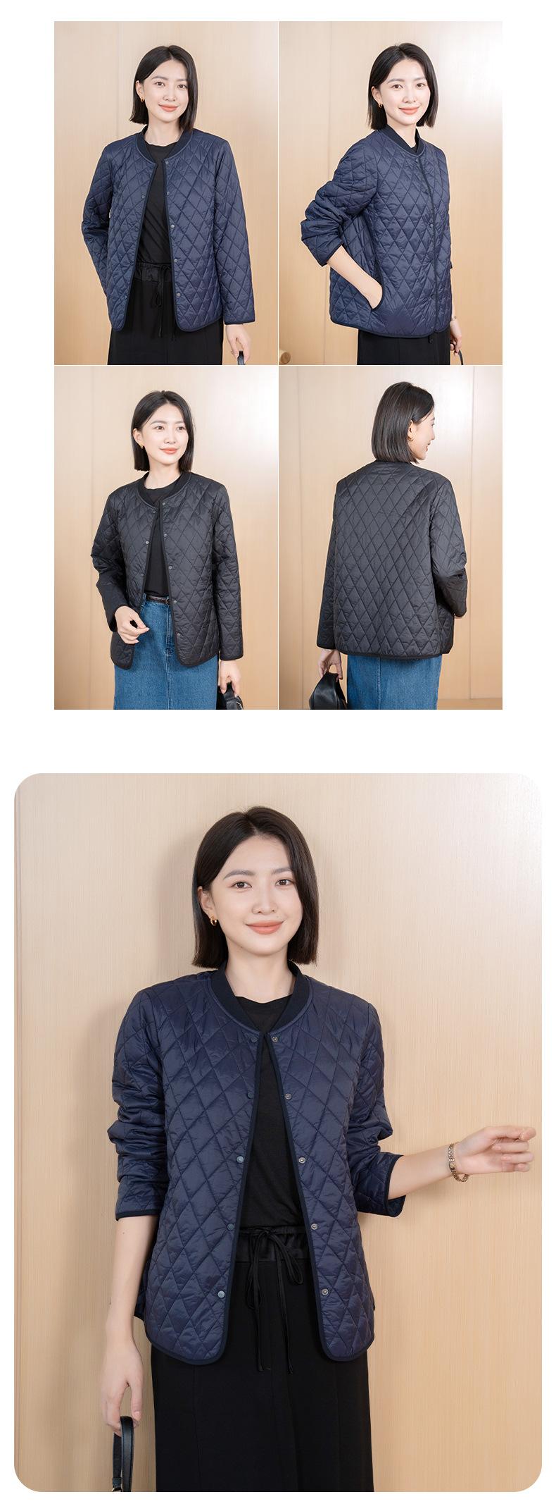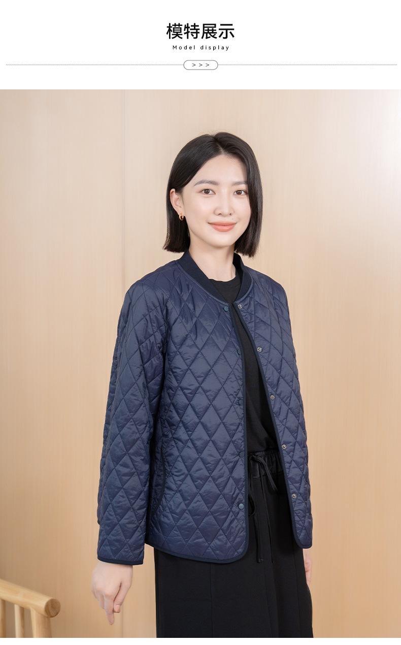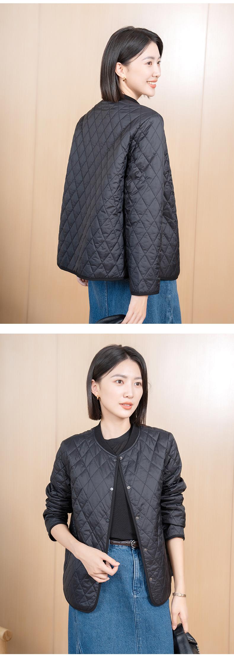 YUN Yun Abrigo Acolchado de Algodón de Cuello Redondo de Primavera y Otoño para Mujer, Ligero y Holgado, con Diseño Romboidal, sin Cuello, de Alta Gama, Holgado para Ir al Trabajo, Acolchado de Algodón
