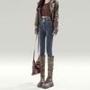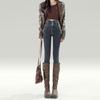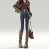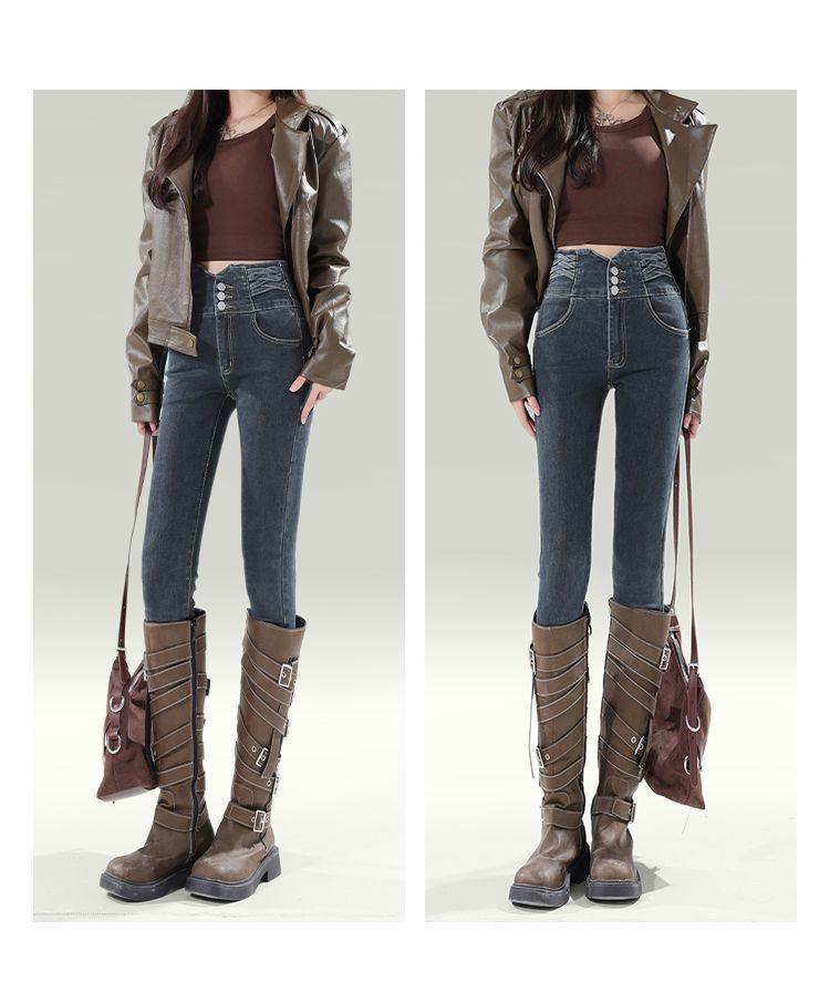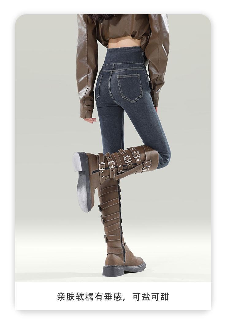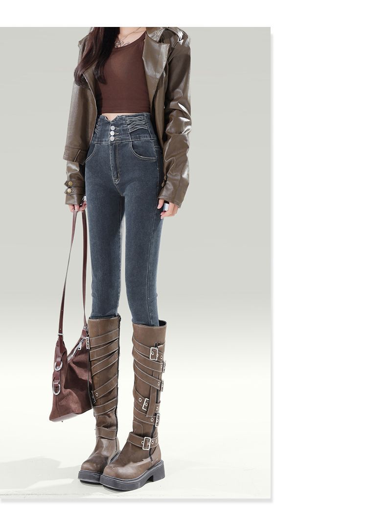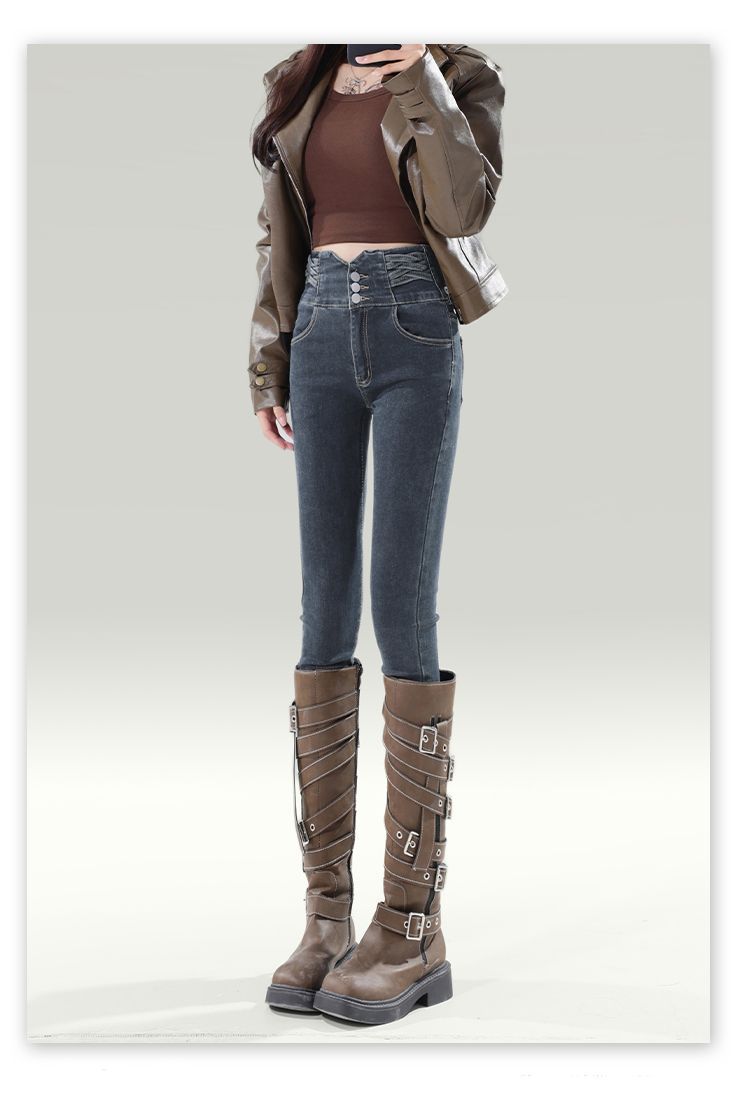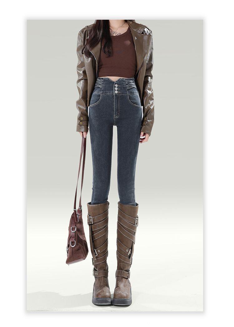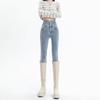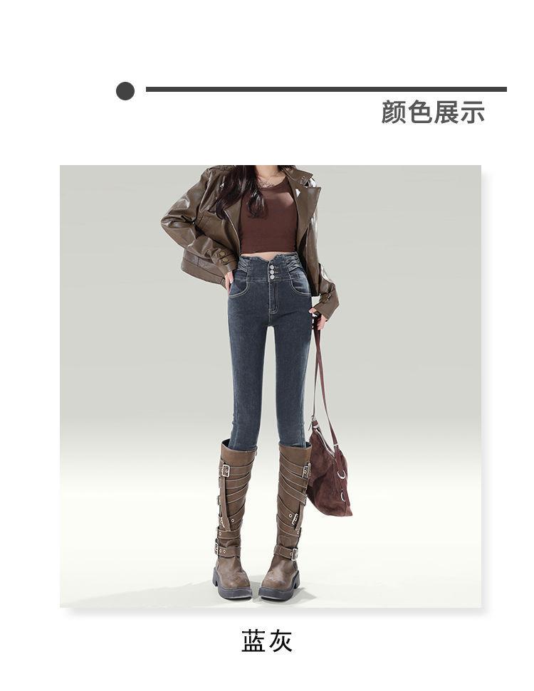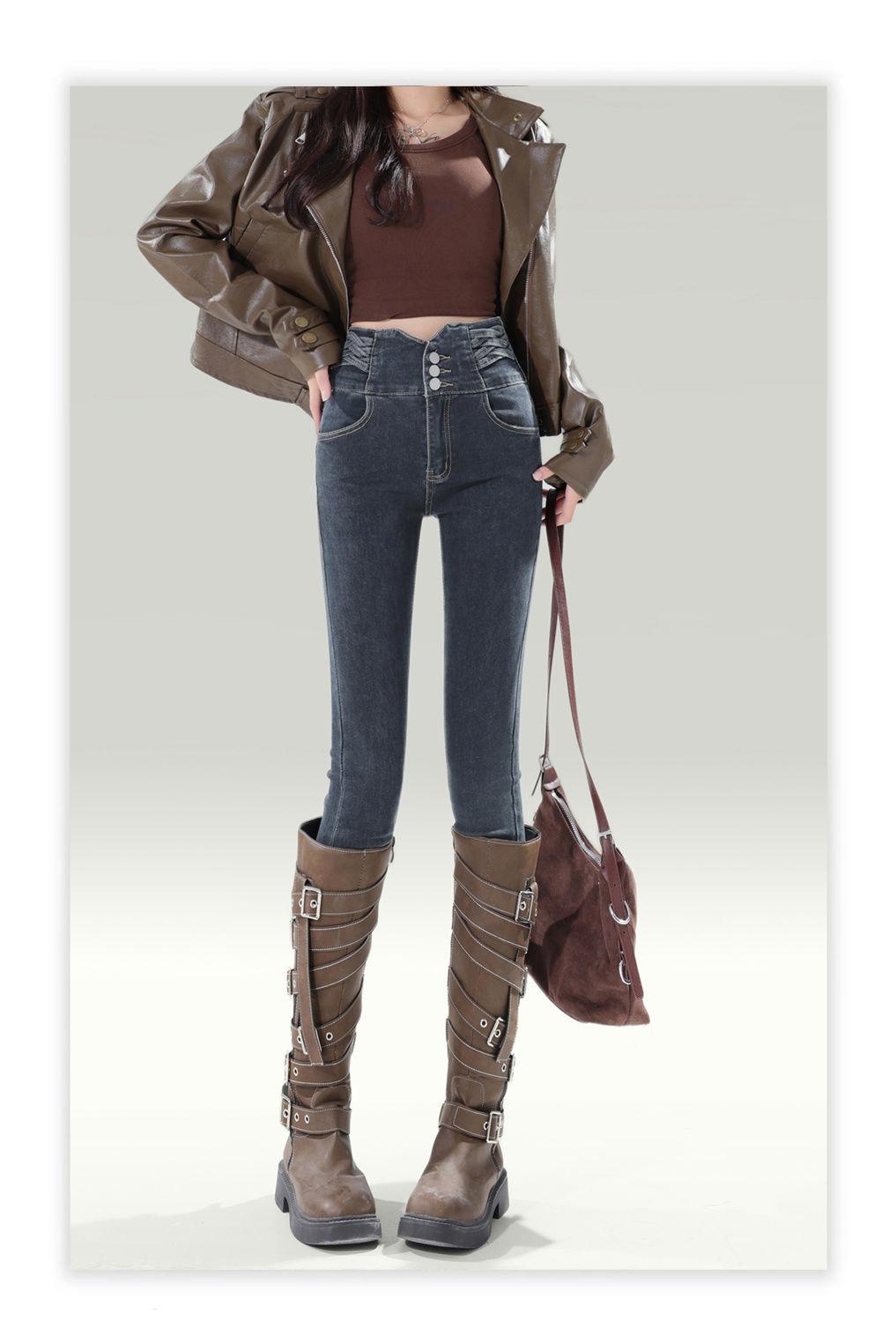 2024 otoño e invierno nuevos jeans ajustados azul gris para mujer pequeños delgados cintura alta elásticos ajustados leggings lápiz