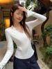 Compra Chicas Calientes Cuello en V Clavícula Lijado Cálido Manga Larga Otoño e Invierno Diseño Manga Acampanada Sensación Slim Top de Cachemira al por mayor en Joom.pro
