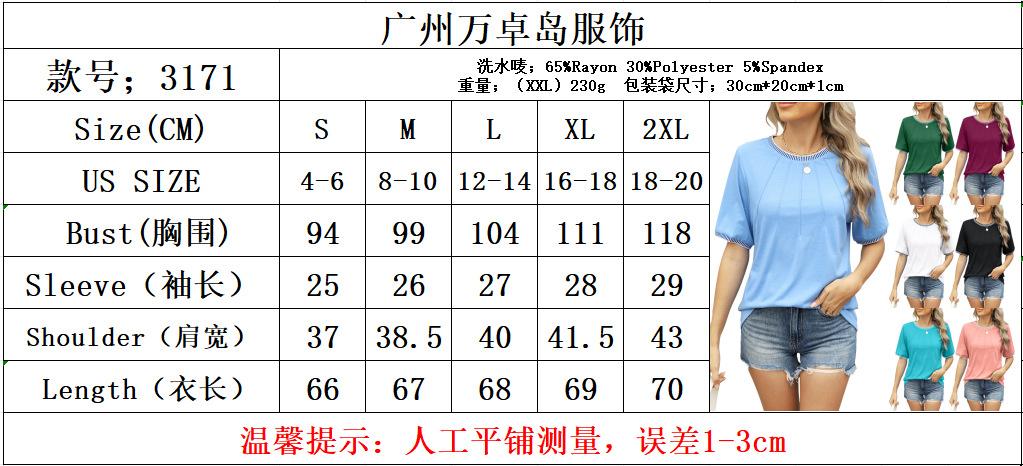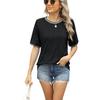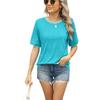 Ropa de mujer de comercio exterior transfronterizo entre Europa y Estados Unidos 2025 Amazon primavera y verano nueva camiseta de manga corta con cuello redondo y costuras de hilo suelto para mujer