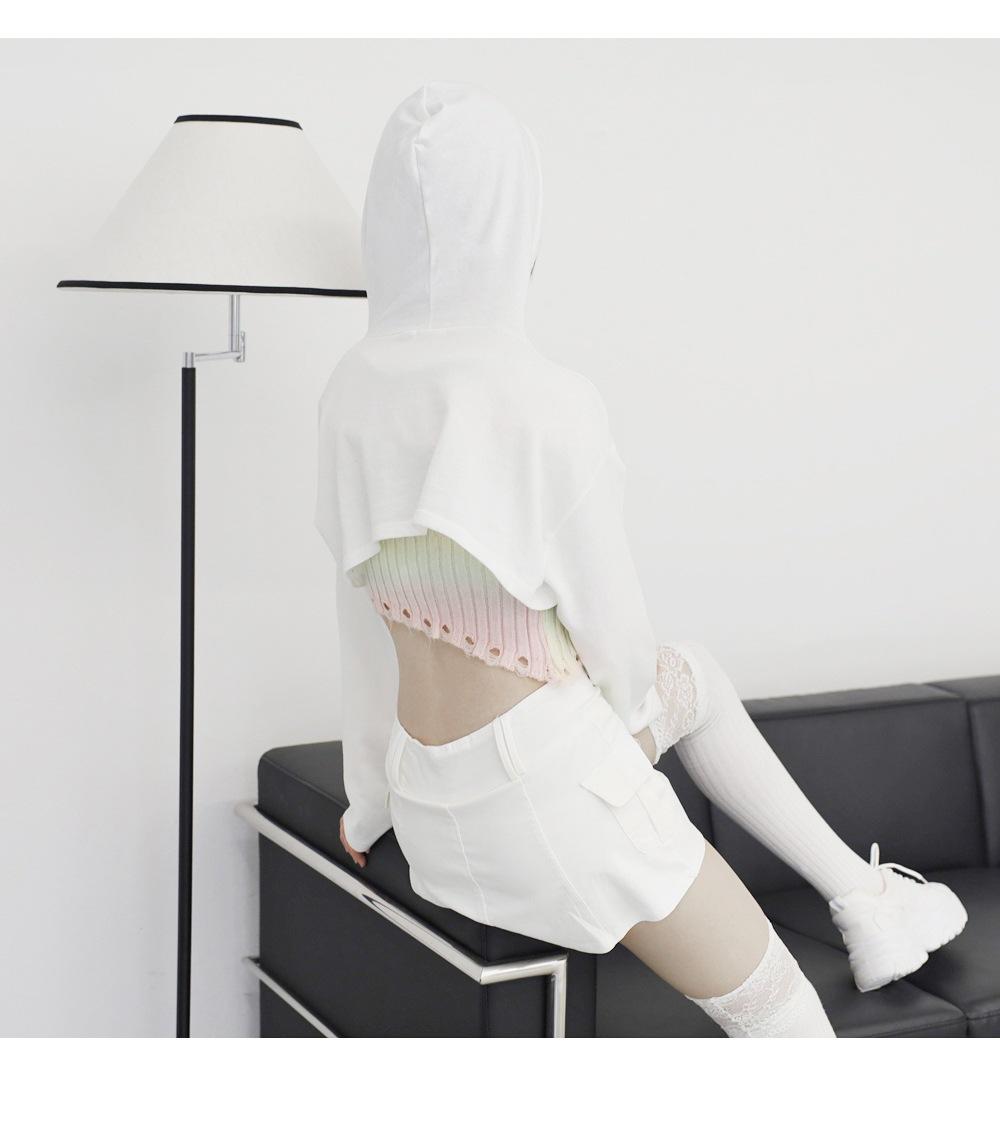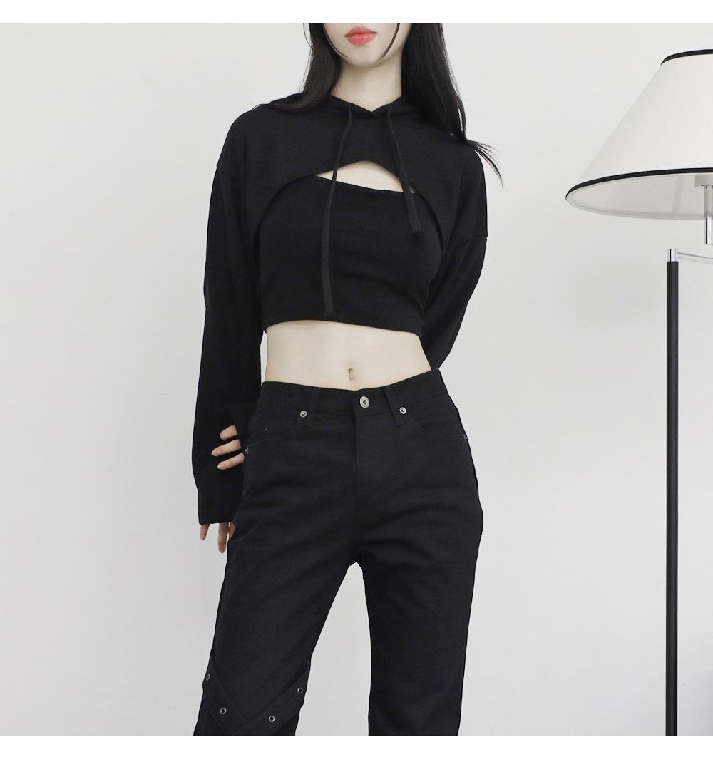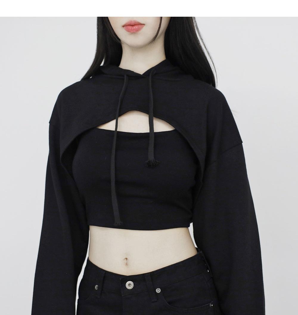 2025 Primavera y Otoño Nuevo Top Corto de Diseño Nicho con Ombligo Descubierto para Chica Caliente, Sudadera con Capucha de Color Sólido Popular Estilo High Street para Mujer
