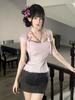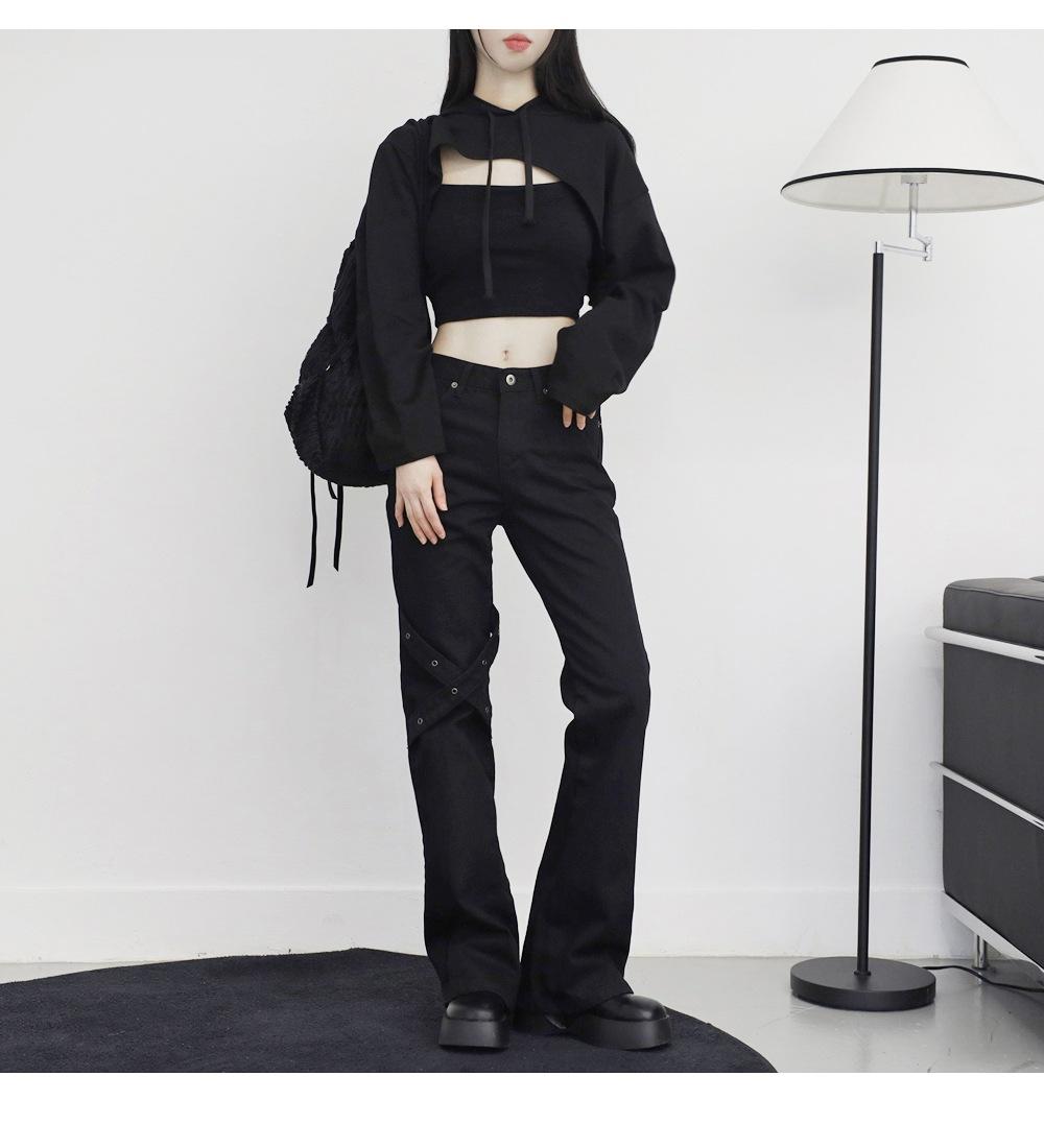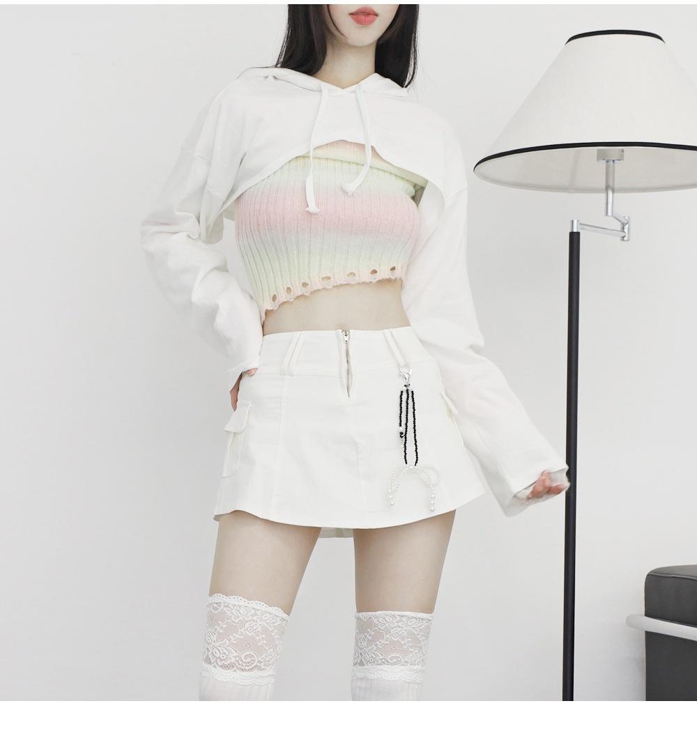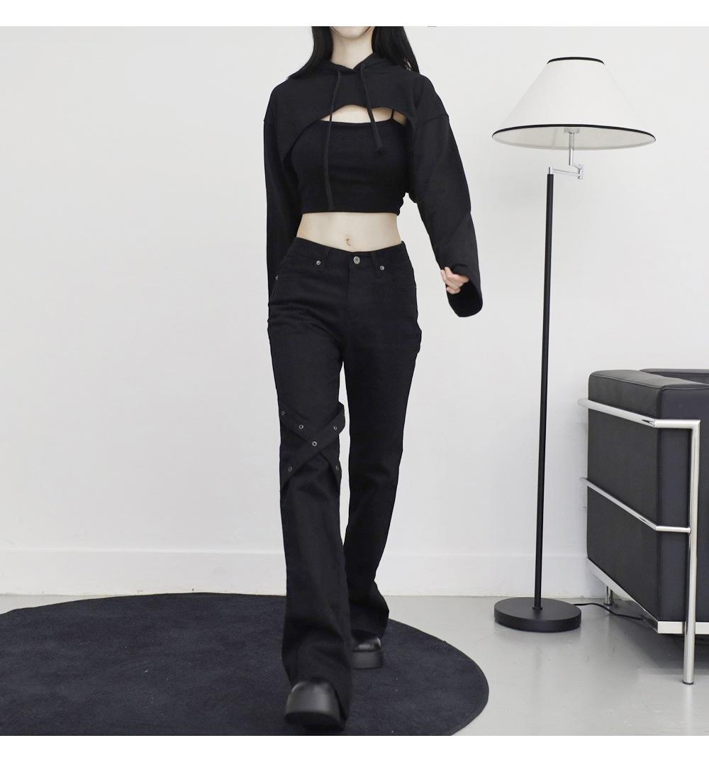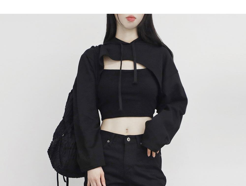 2025 Primavera y Otoño Nuevo Top Corto de Diseño Nicho con Ombligo Descubierto para Chica Caliente, Sudadera con Capucha de Color Sólido Popular Estilo High Street para Mujer