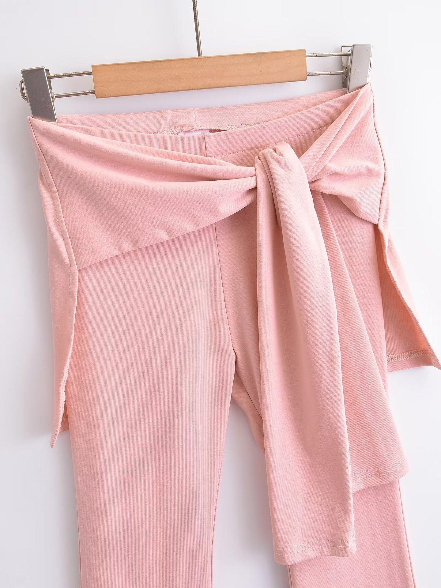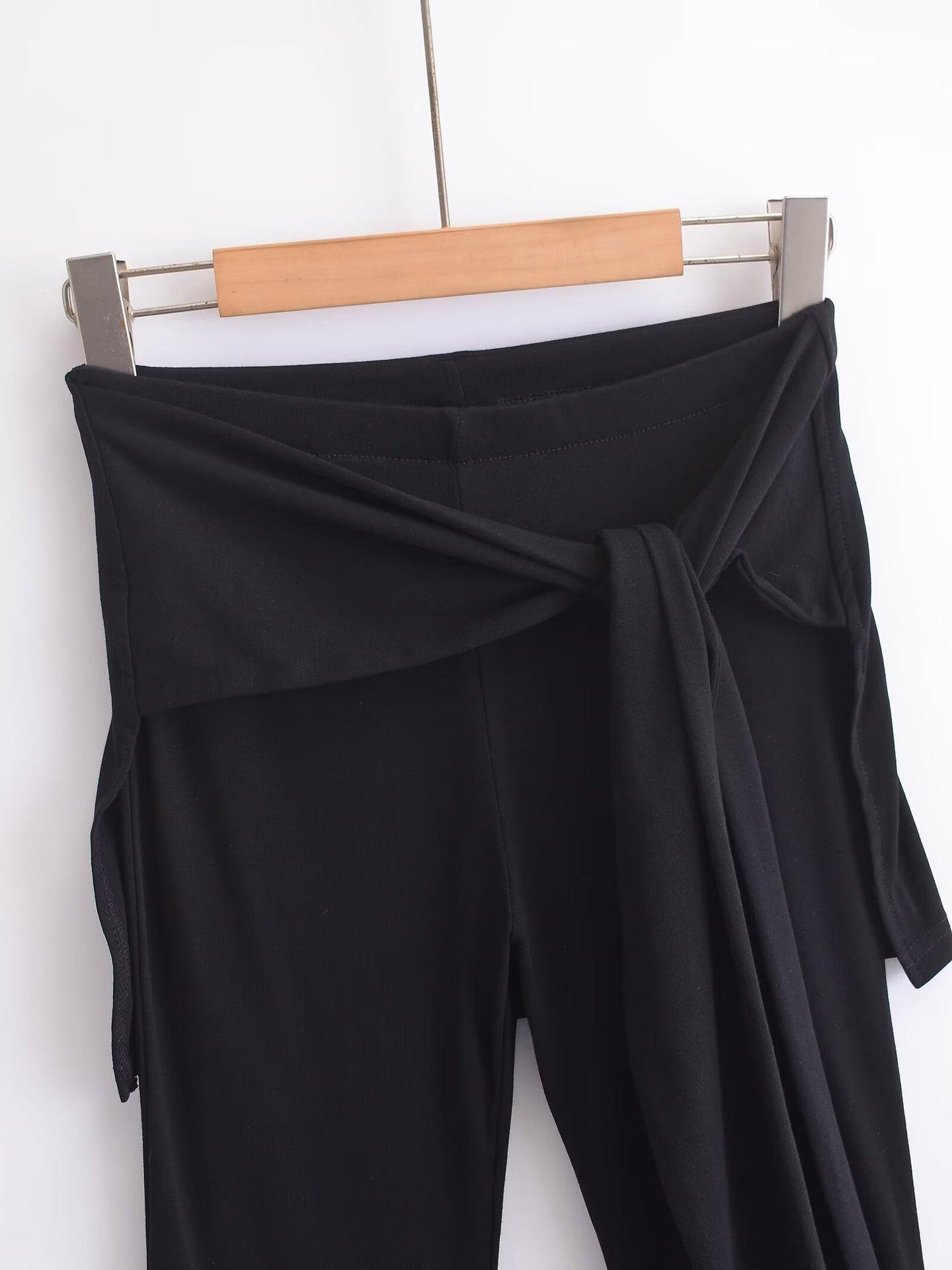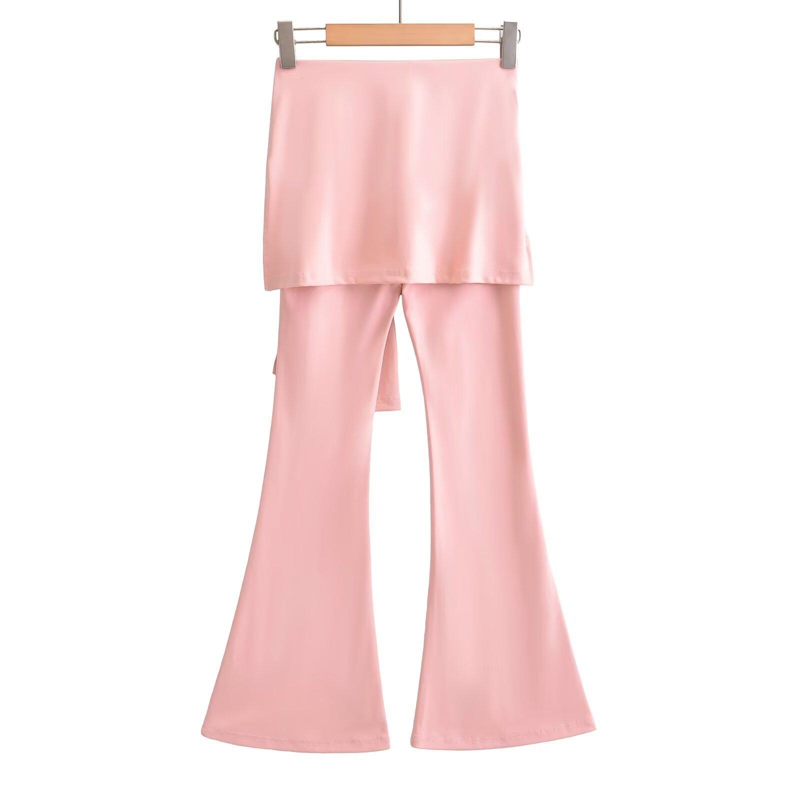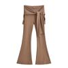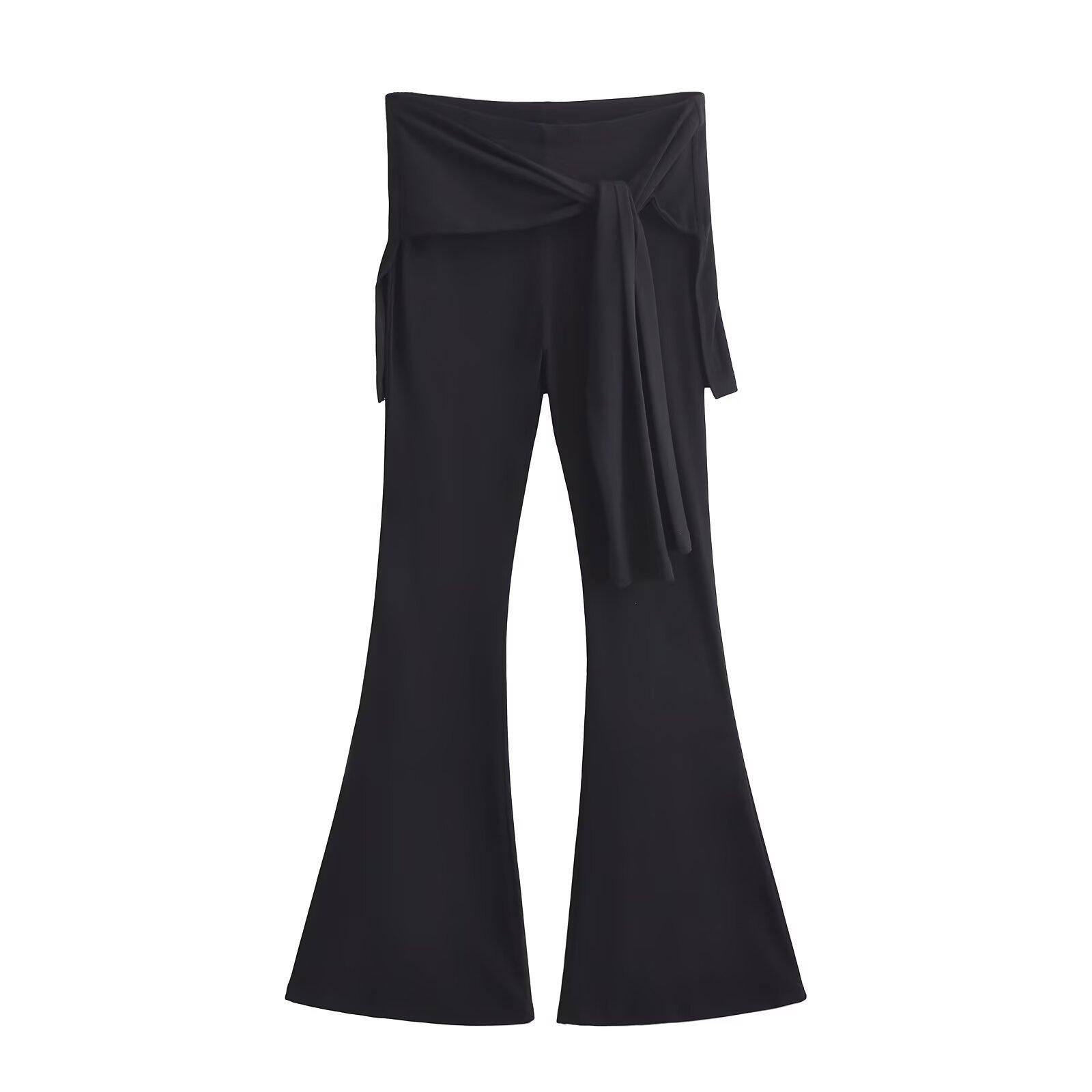 Venta al por mayor de comercio exterior transfronterizo para mujer, micro-pantalones de encaje con cordones de dos piezas falsas, diseño ajustado de cintura alta, pantalones acampanados con lazo
