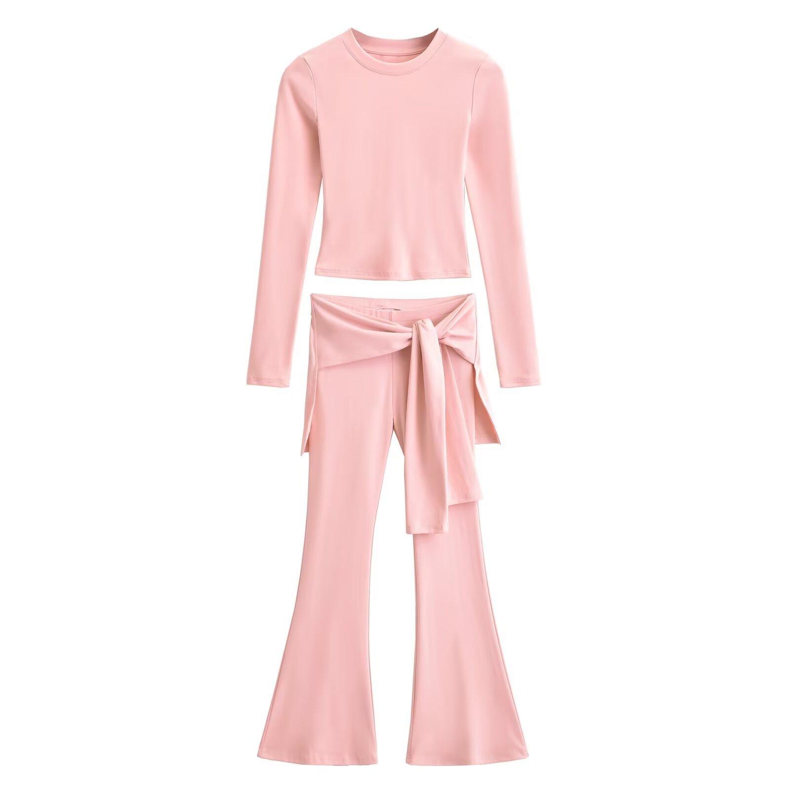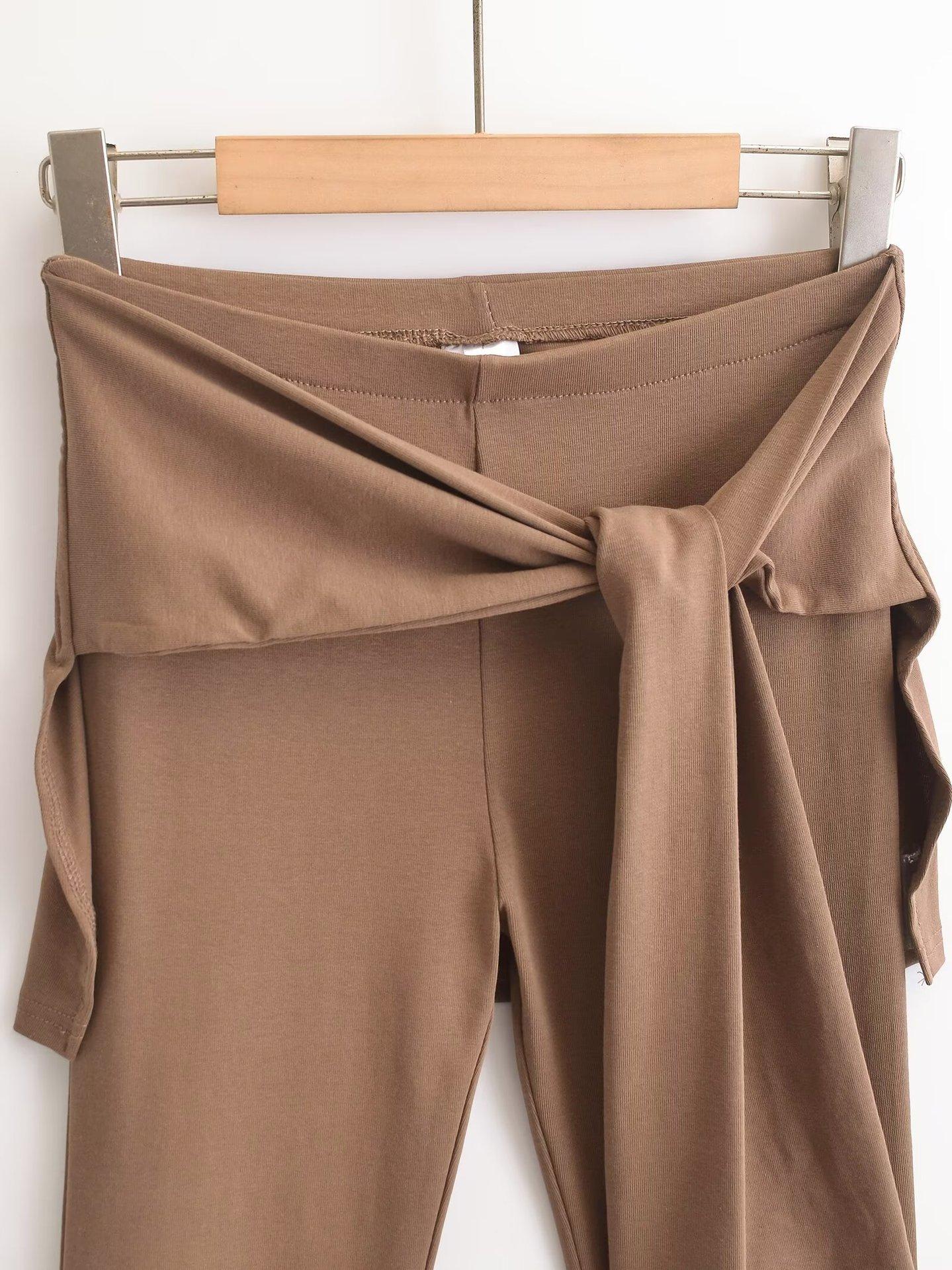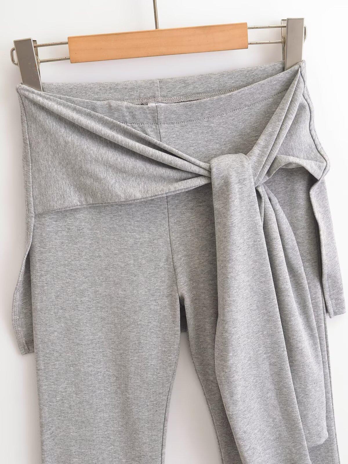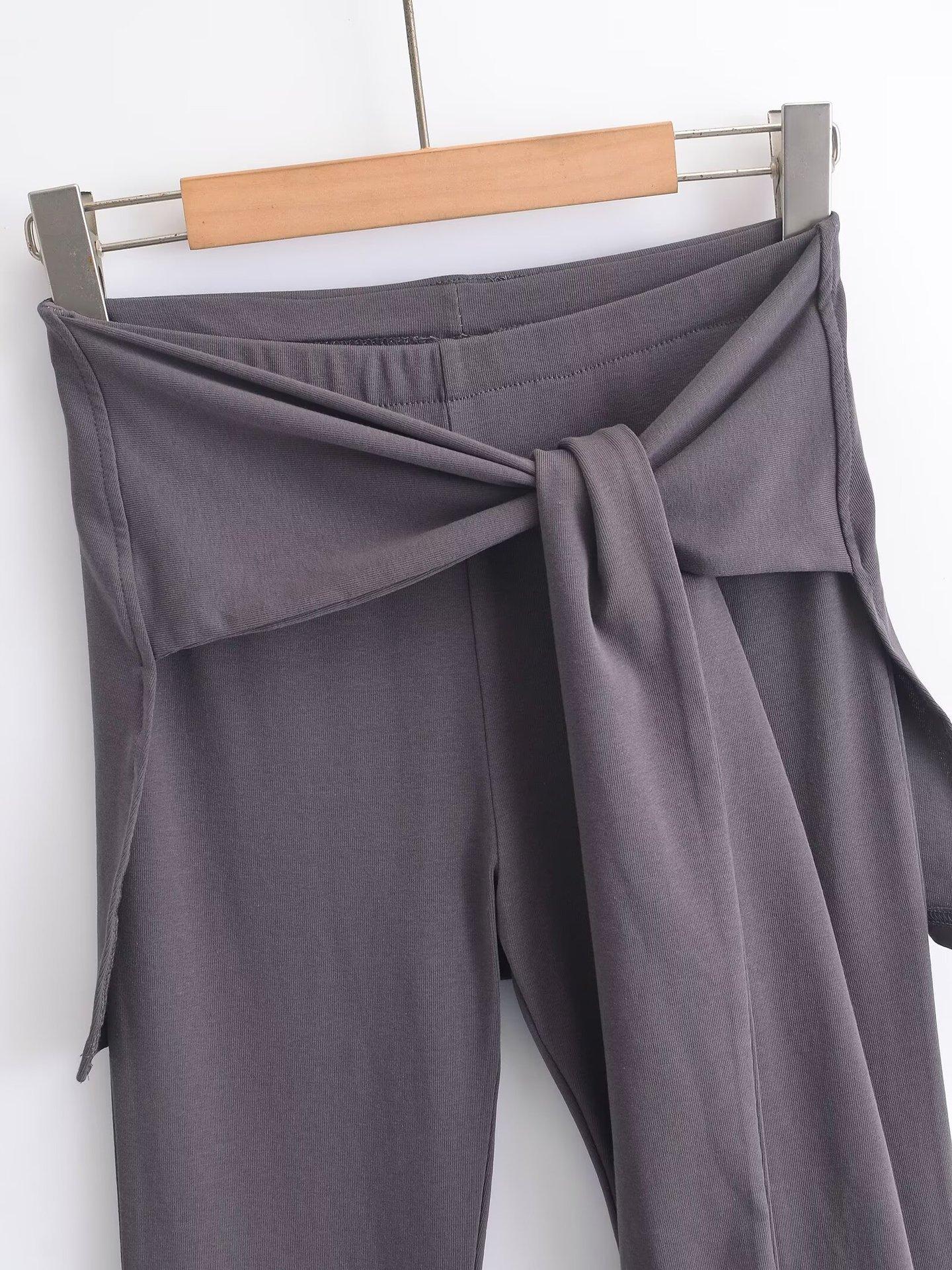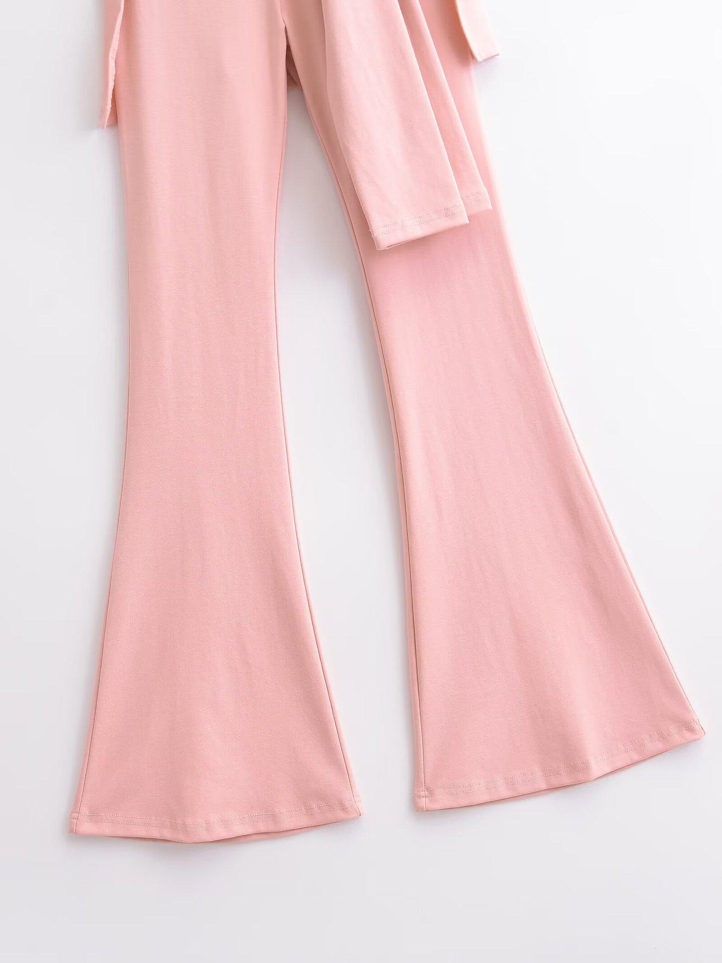 Venta al por mayor de comercio exterior transfronterizo para mujer, micro-pantalones de encaje con cordones de dos piezas falsas, diseño ajustado de cintura alta, pantalones acampanados con lazo