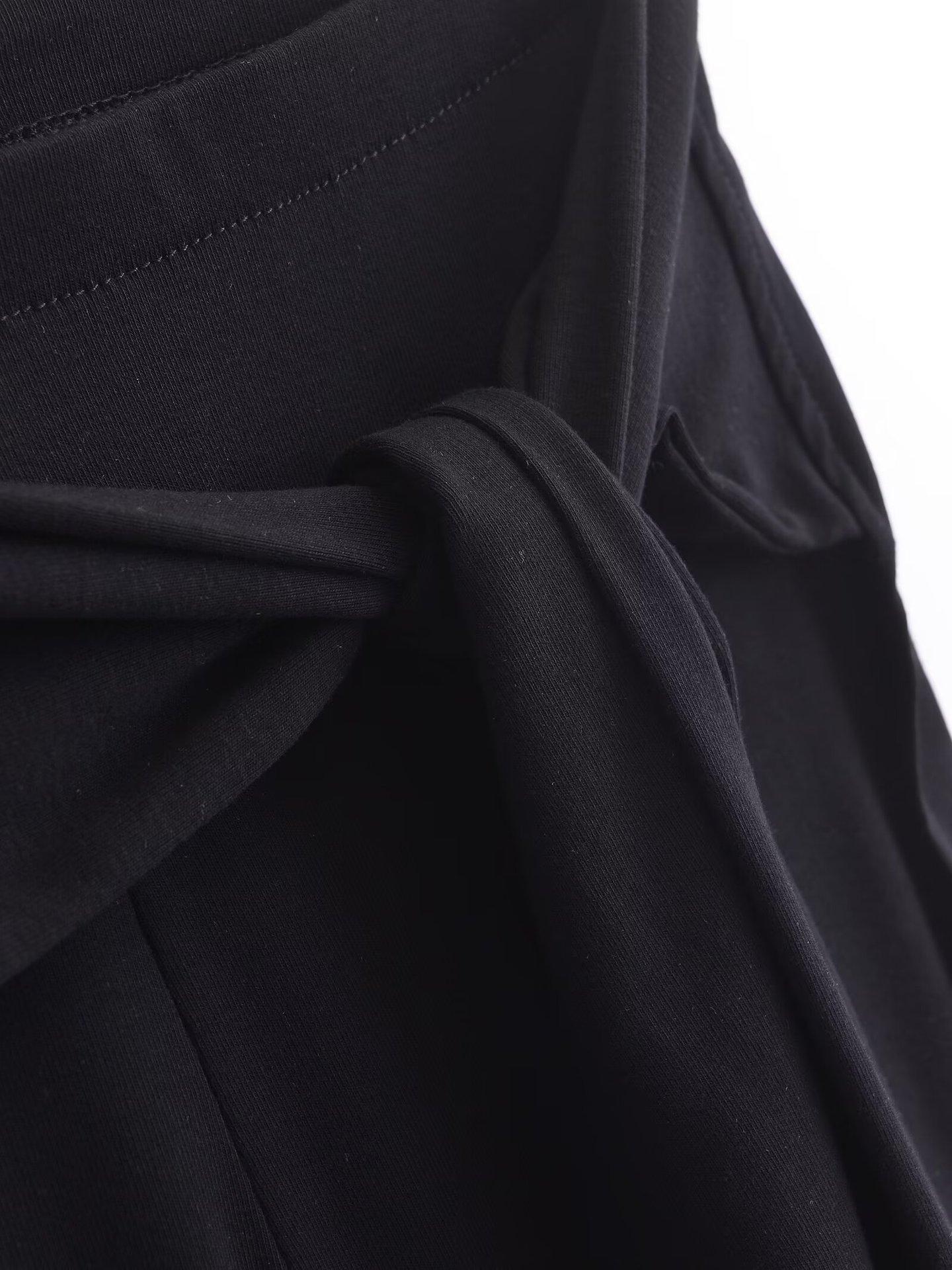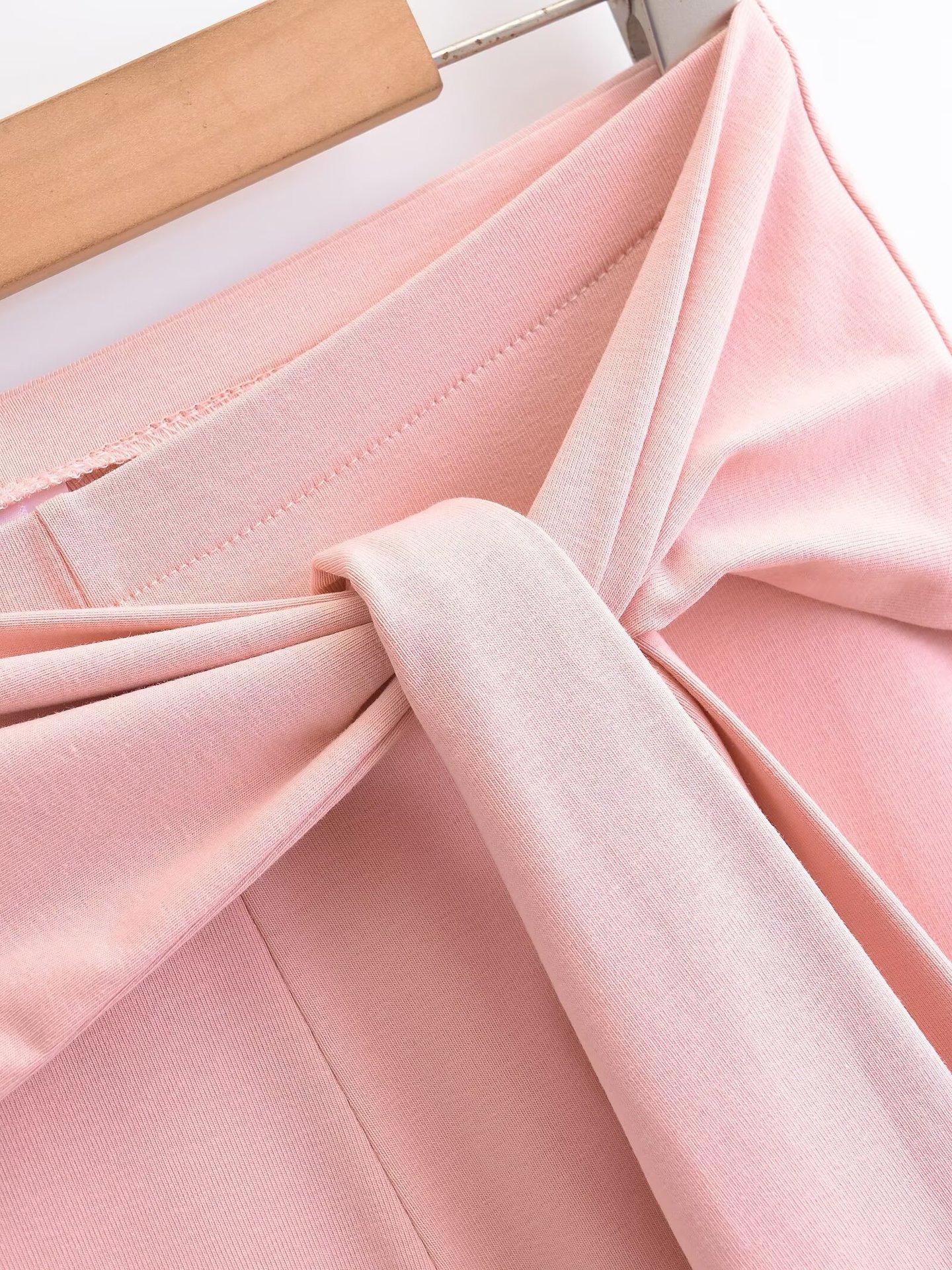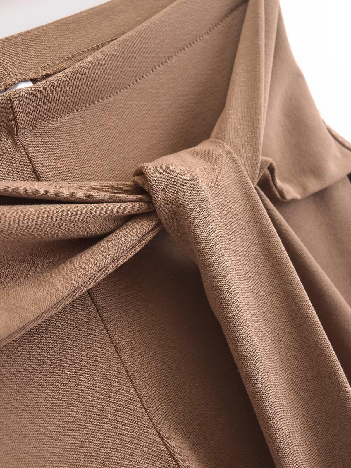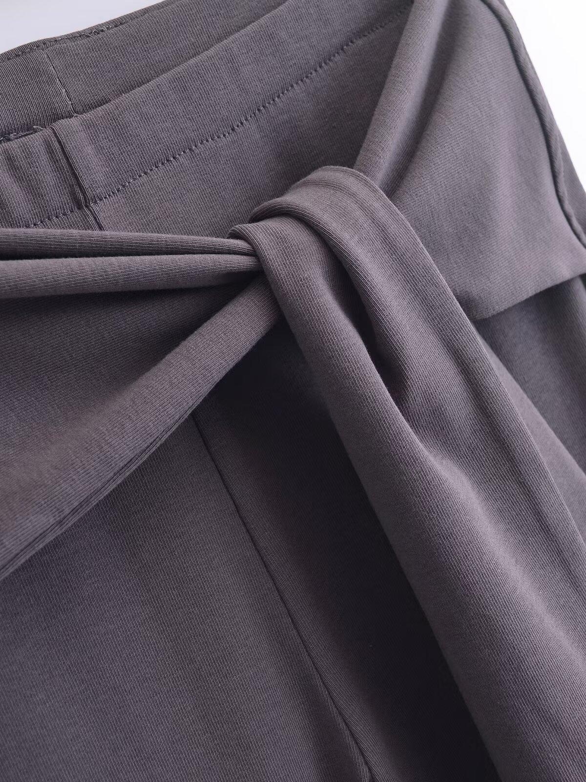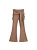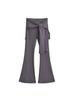Venta al por mayor de comercio exterior transfronterizo para mujer, micro-pantalones de encaje con cordones de dos piezas falsas, diseño ajustado de cintura alta, pantalones acampanados con lazo
