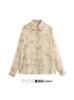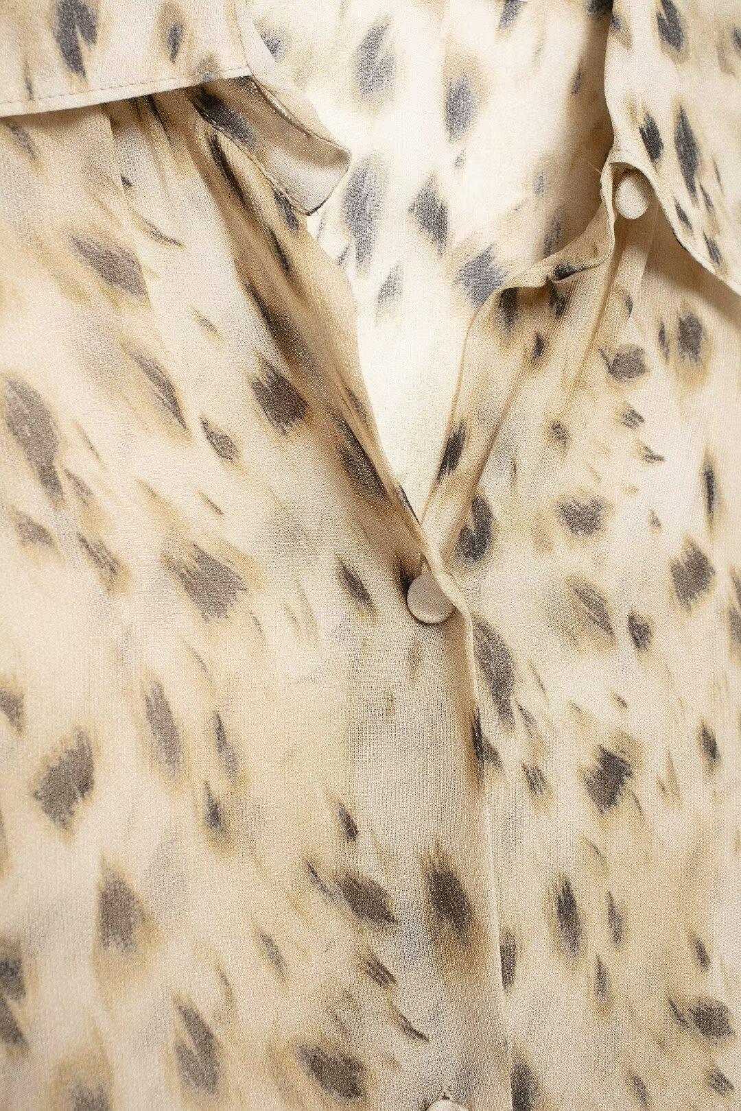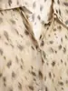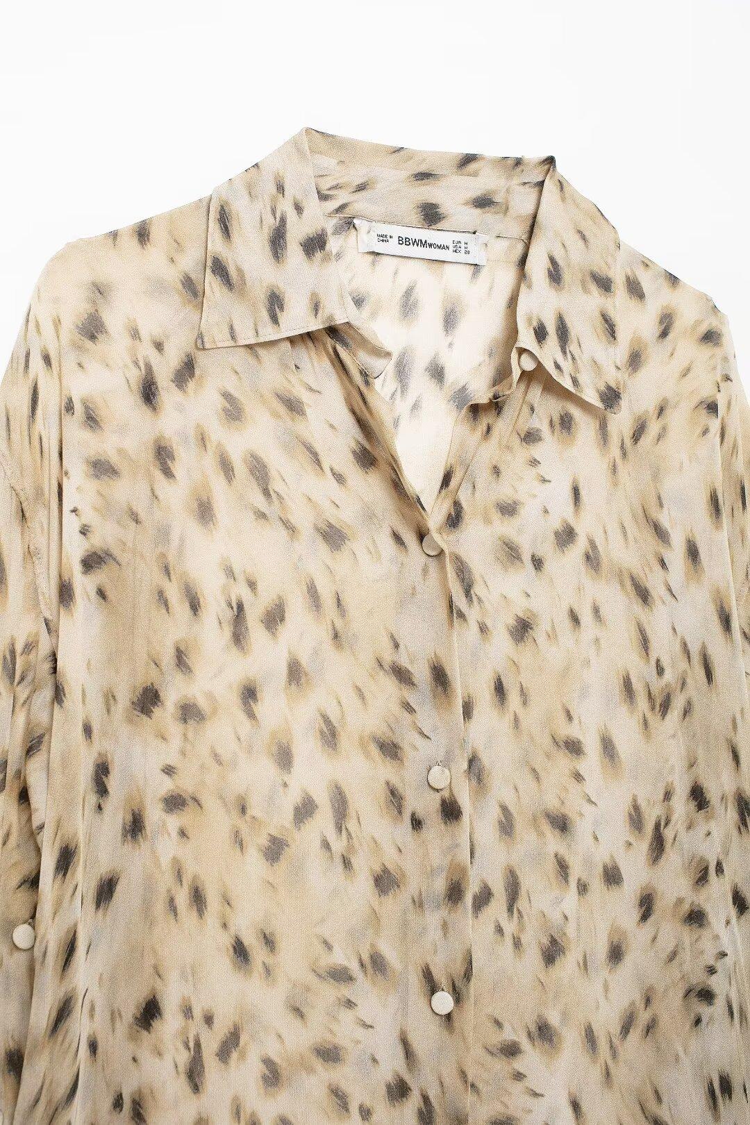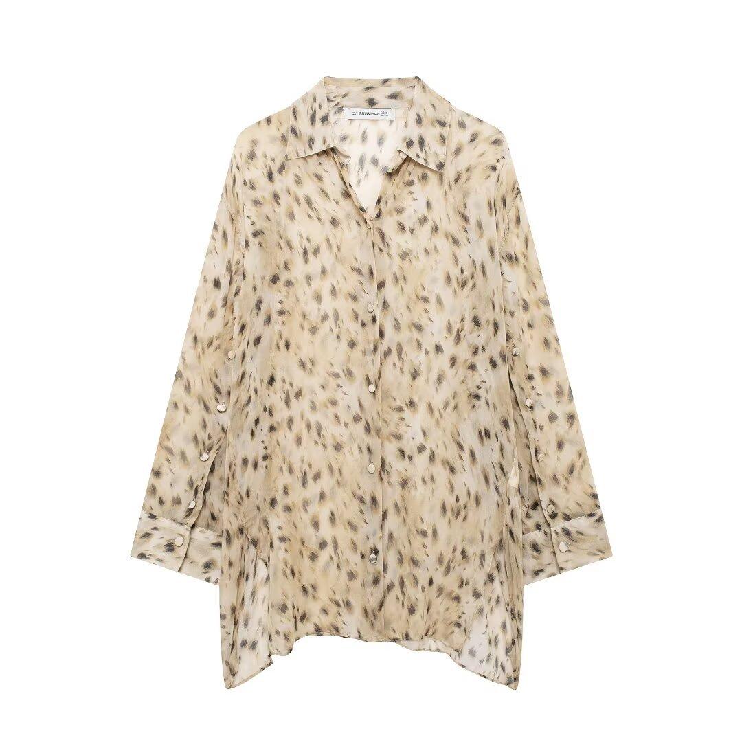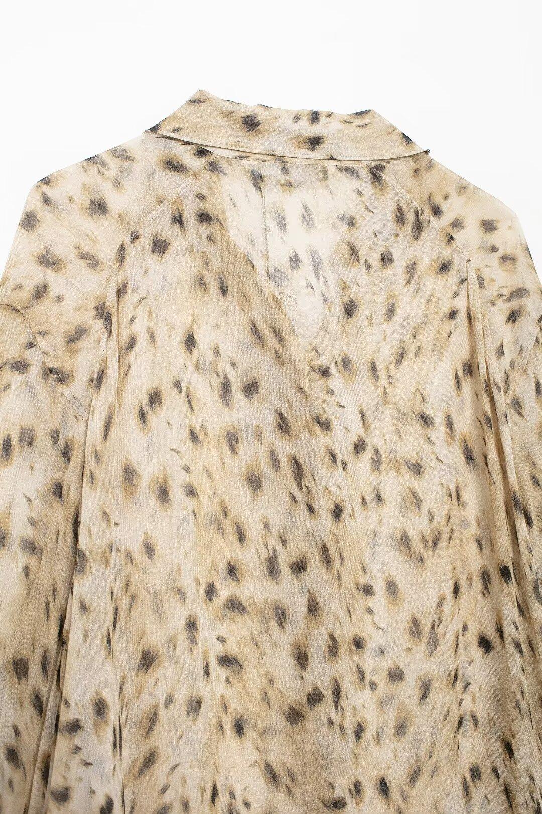 Camisa de manga larga con solapa y estampado animal translúcido para mujer, estilo europeo y americano transfronterizo 2024