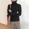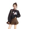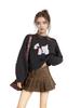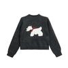 Suéter corto de cuello redondo con diseño de cachorro negro para mujer, prenda exterior gruesa de otoño e invierno, suéter de punto de lana suelto con sentido del diseño