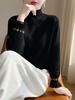 Otoño e Invierno Nuevo Estilo Estilo Chanel Estilo Occidental Camisa Base Tejida Oreja de Madera para Mujer Cuello Medio Alto Suéter Combinable Súper Suave Interior