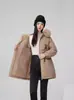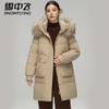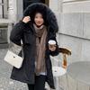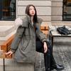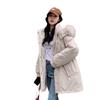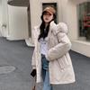 Parka de plumón de longitud media con capucha y cordón ajustable con cuello de piel grande para mujer, chaqueta de algodón estilo coreano de invierno