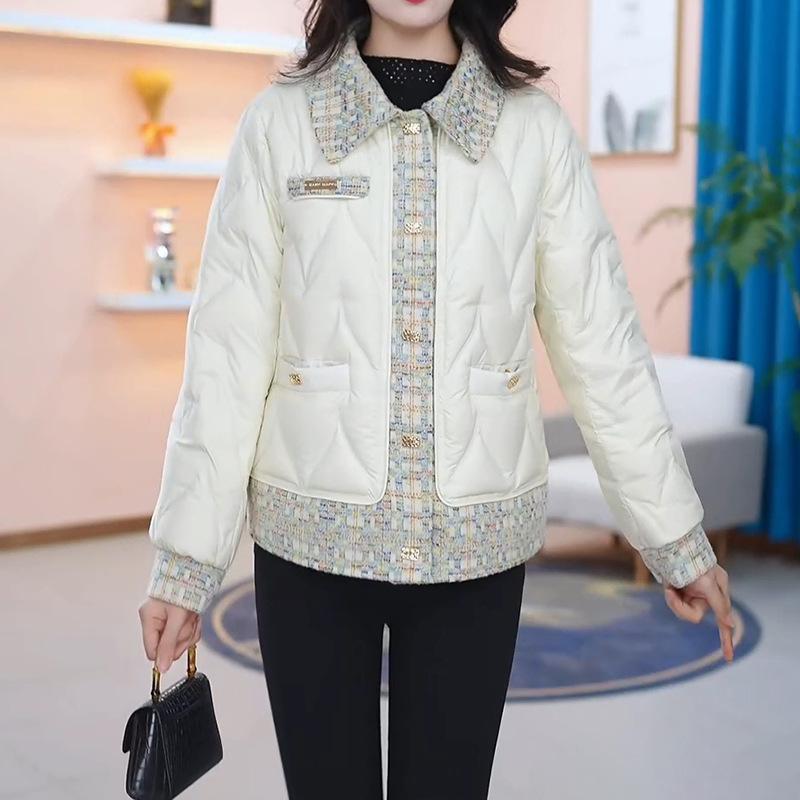 Elegante Ropa Exterior de Algodón Europeo para Mujer 2024 Invierno Nuevo Diseño Costuras Engrosado Cálido Versátil Chaqueta de Manga Larga a la Moda