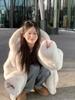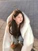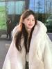 Chaqueta con capucha de lana de cordero y piel de conejo Rex para mujer, longitud media, otoño e invierno 2023, nueva, suelta y gruesa.