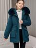 Chaqueta acolchada de algodón de plumón para mujer, de longitud media, nueva moda de invierno 2024, ajustada, adelgazante, gruesa, de forro polar blanco con capucha.