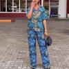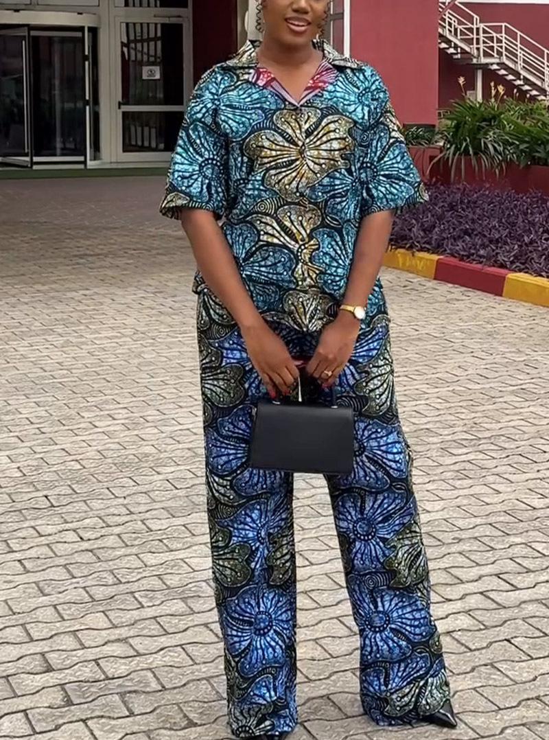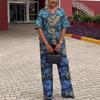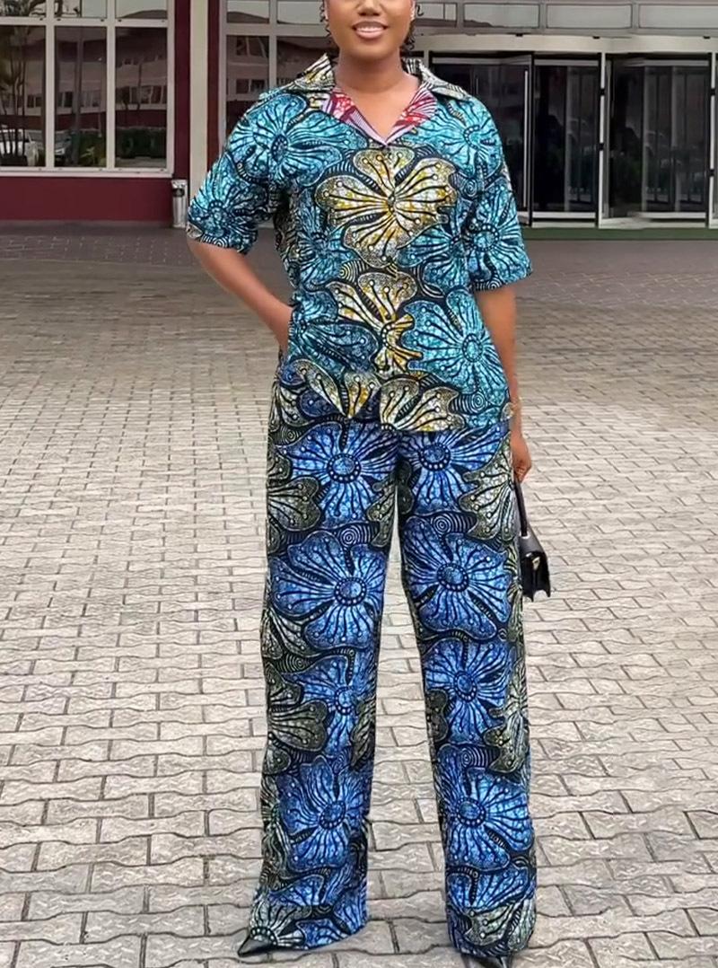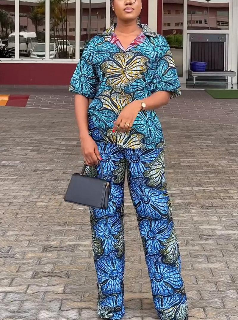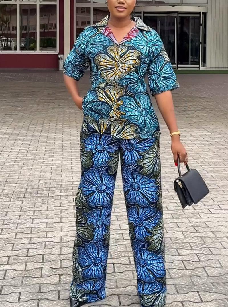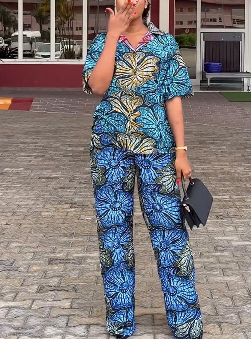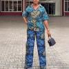 Otoño 2024 comercio exterior nuevo europeo y americano Amazon temperamento elegante estampado manga corta chaqueta pantalón talla grande conjunto de dos piezas